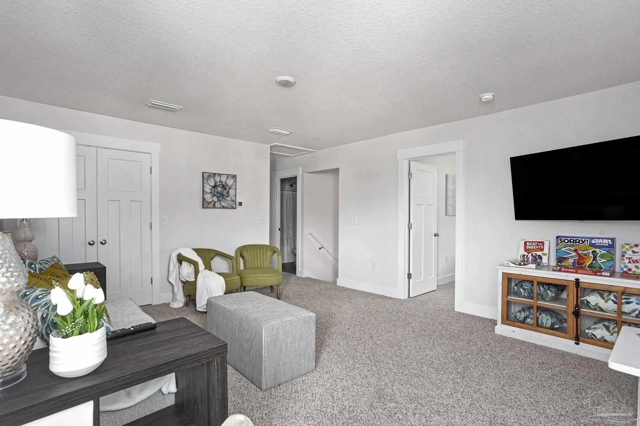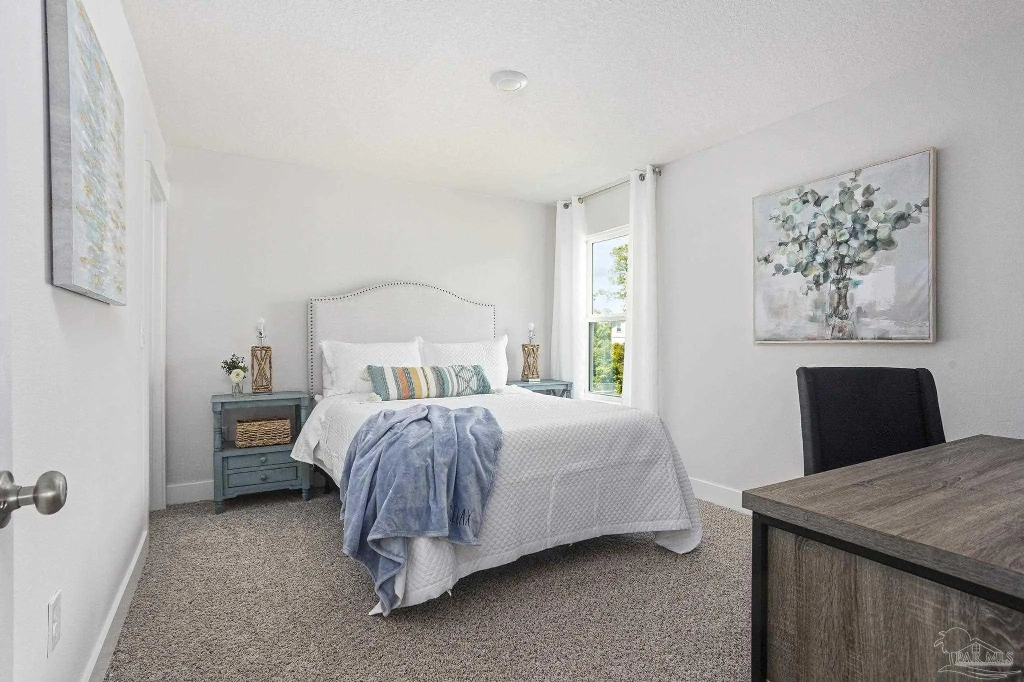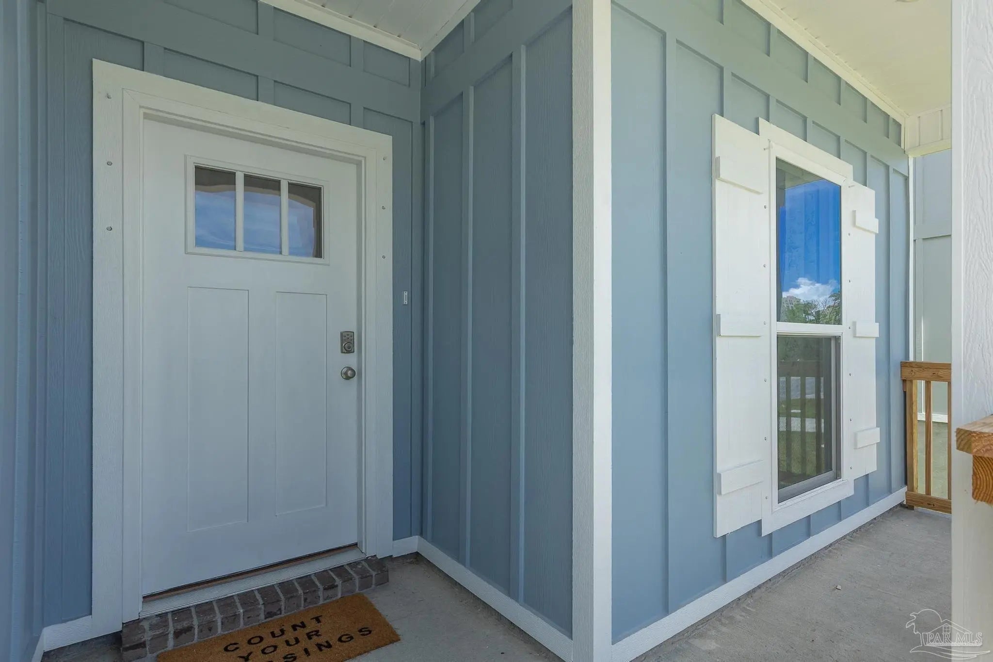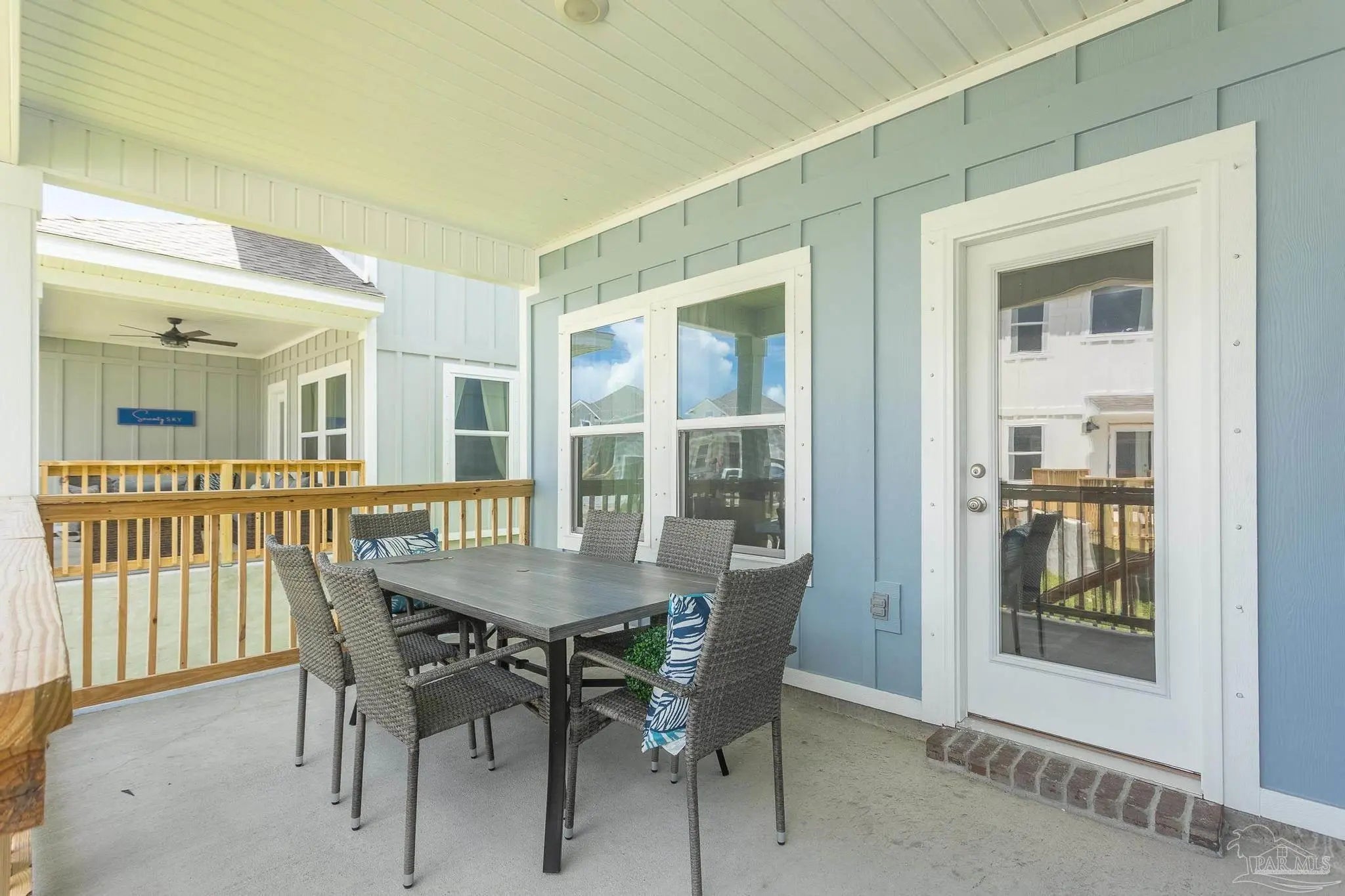 Built in 2022, this beautifully maintained 4-bedroom, 3.5-bath home offers a fantastic blend of modern design and coastal charm. With two spacious living areas, there's room for everyone to spread out and relax. You'll love the light wood-look LVP flooring throughout the main spaces, complemented by cozy carpeting in the bedrooms and second living area. The kitchen is a dream — featuring stainless steel appliances, sleek granite countertops, stylish white cabinetry, and a large island with breakfast bar seating. A formal dining room flows directly into the kitchen, making it ideal for entertaining. The spacious master suite is filled with natural light and boasts a luxurious ensuite bathroom with double granite vanities and a glass-enclosed standing shower. Enjoy year-round outdoor living on the covered back patio, offering plenty of room for an al fresco dining area. Built for peace of mind, this home includes hurricane protection features like double-pane windows, insulated ceilings, durable Hardiplank siding, and fabric shutters ready for quick installation. Plus, with newer major components like the roof, HVAC, and hot water heater, you can move in with confidence.