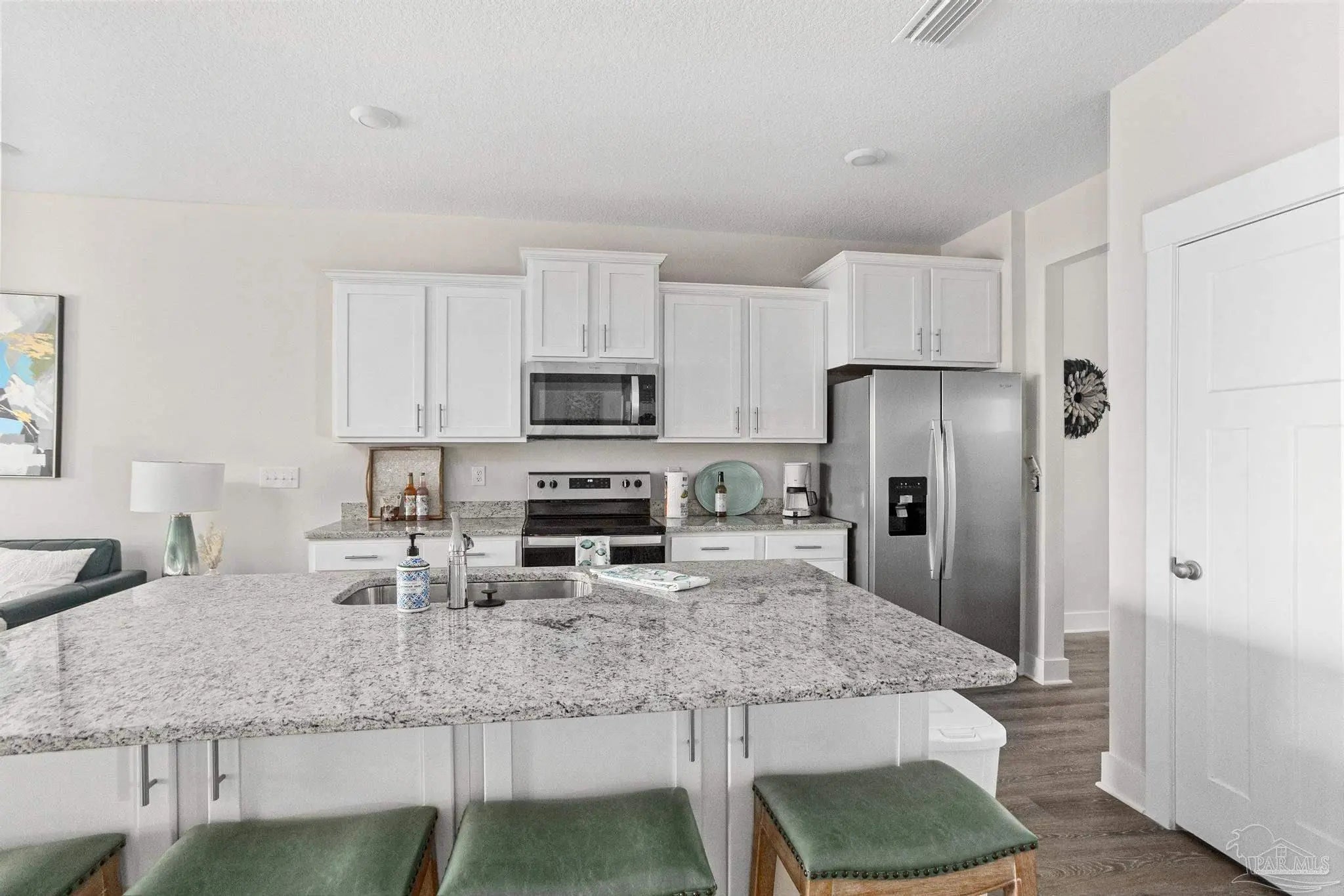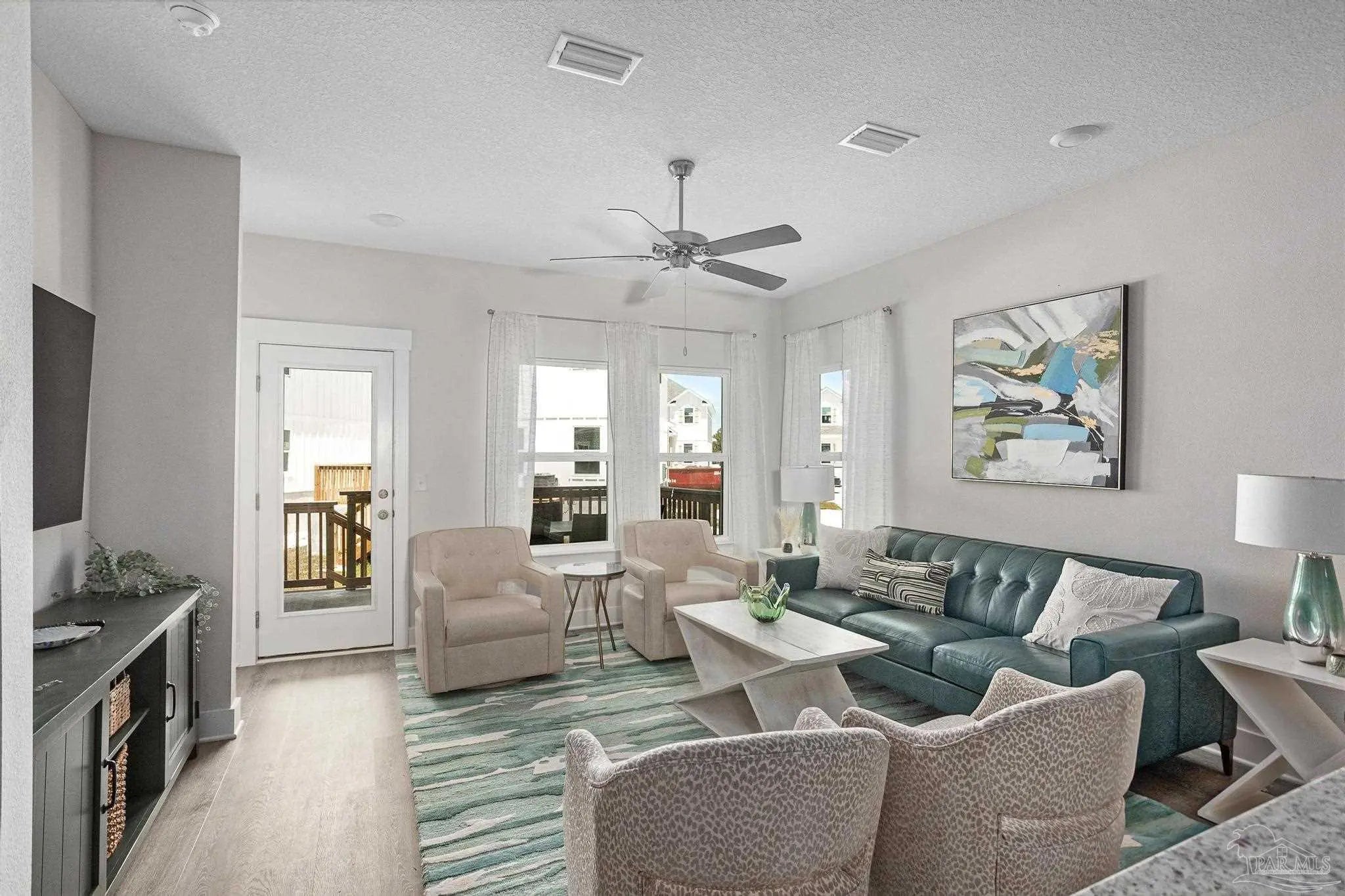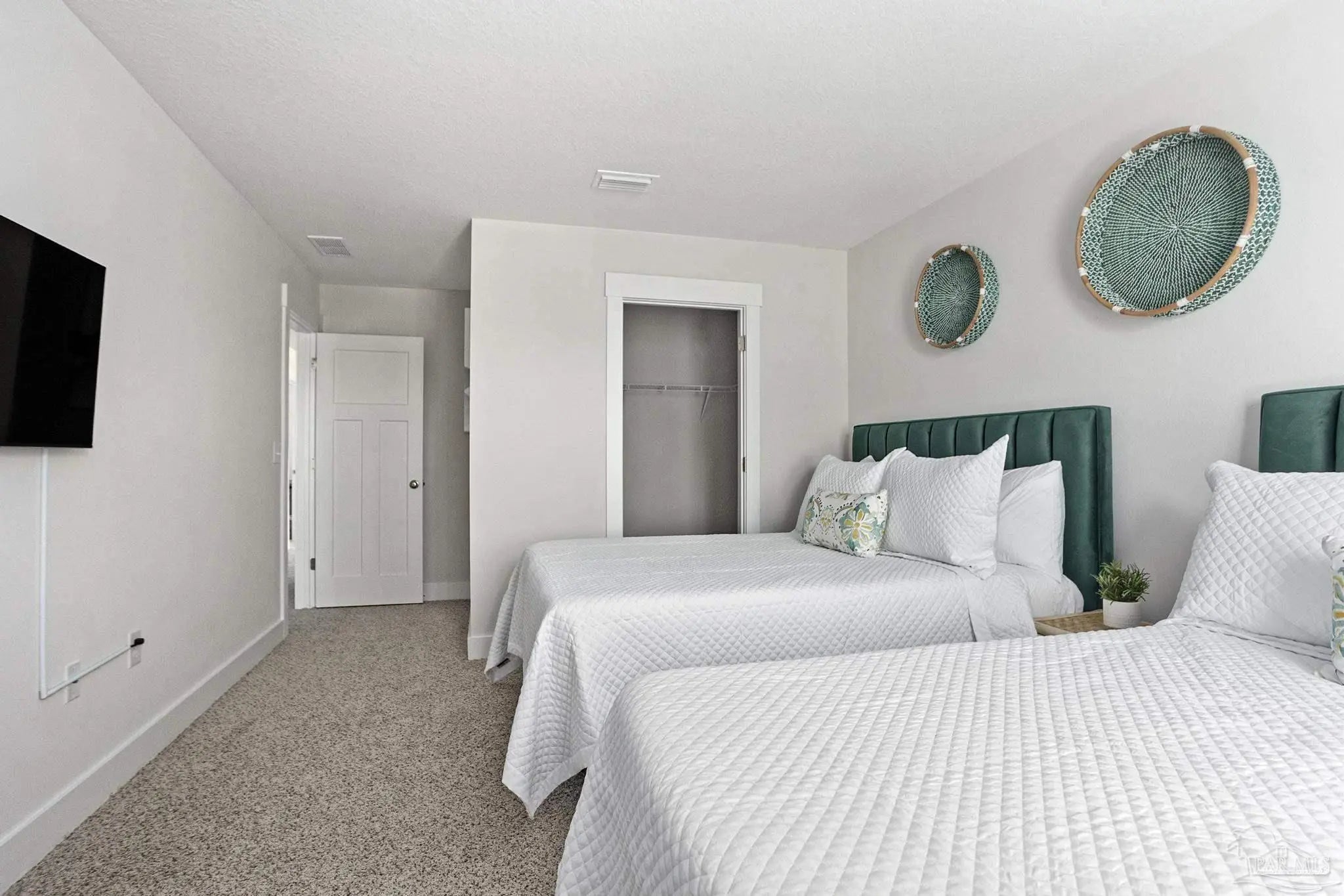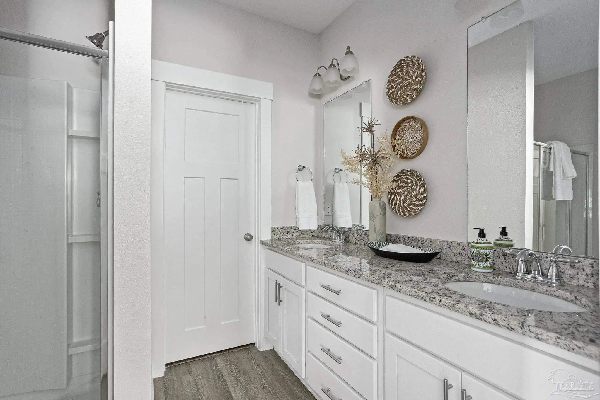 Built in 2022, this beautifully maintained 4-bedroom, 3.5-bath home offers a fantastic blend of modern design and coastal charm. With two spacious living areas, there's room for everyone to spread out and relax. You'll love the light wood-look LVP flooring throughout the main spaces, complemented by cozy carpeting in the bedrooms and second living area. The kitchen is a dream — featuring stainless steel appliances, sleek granite countertops, stylish white cabinetry, and a large island with breakfast bar seating. A formal dining room flows directly into the kitchen, making it ideal for entertaining. The spacious master suite is filled with natural light and boasts a luxurious ensuite bathroom with double granite vanities and a glass-enclosed standing shower. Enjoy year-round outdoor living on the covered back patio, offering plenty of room for an al fresco dining area. Built for peace of mind, this home includes hurricane protection features like double-pane windows, insulated ceilings, durable Hardiplank siding, and fabric shutters ready for quick installation. Plus, with newer major components like the roof, HVAC, and hot water heater, you can move in with confidence.