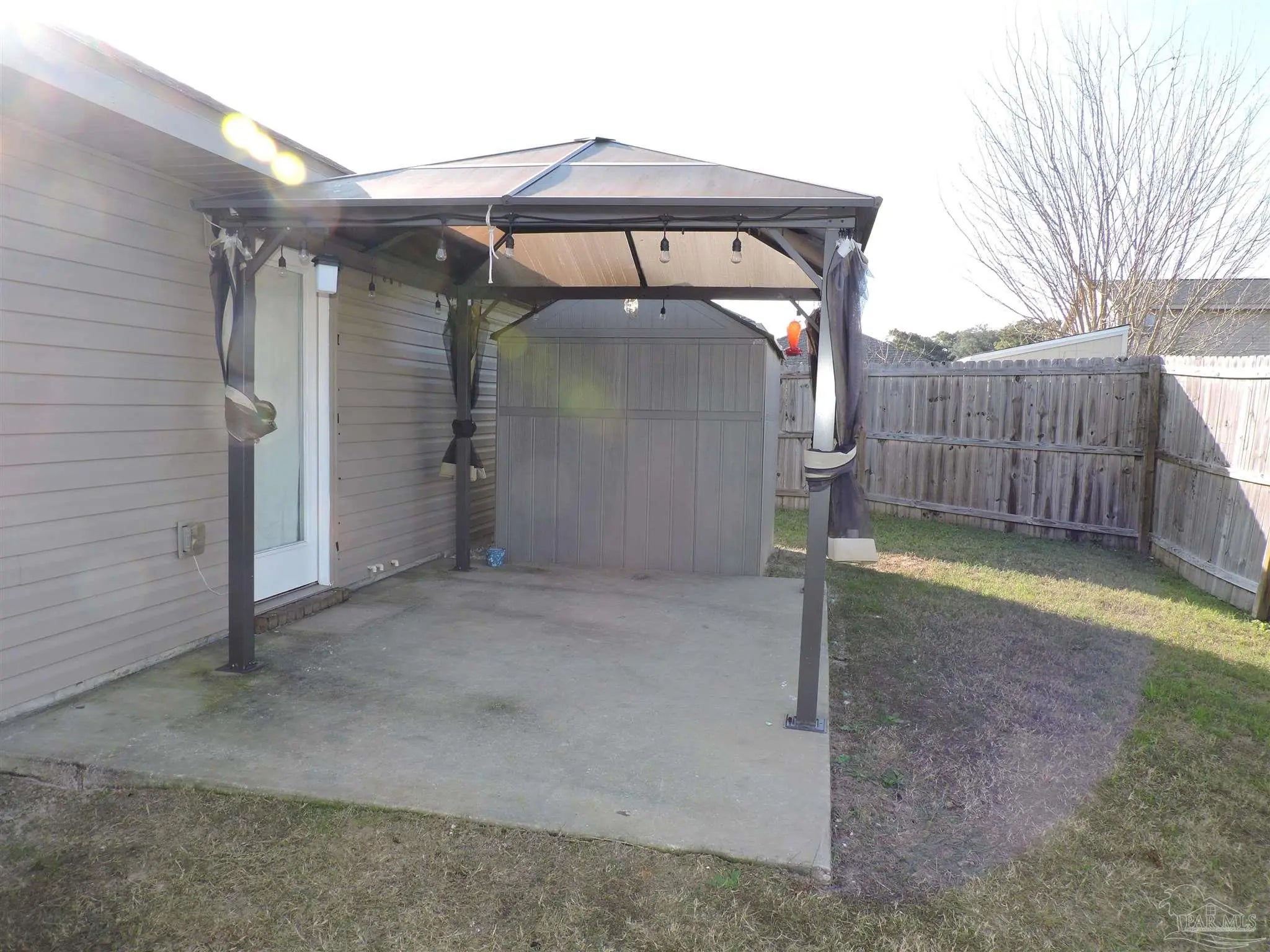 Easy access to Whiting Field & shopping! Nice home in convenient location. Living room with vaulted ceiling & ceiling fan. Kitchen/dining combination. Fully equipped kitchen plus breakfast bar. Main bedroom suite features boxed ceiling, ceiling fan & garden tub. Inside laundry located off kitchen. Privacy fenced backyard with open patio & storage shed. Small pets considered with owner approval.