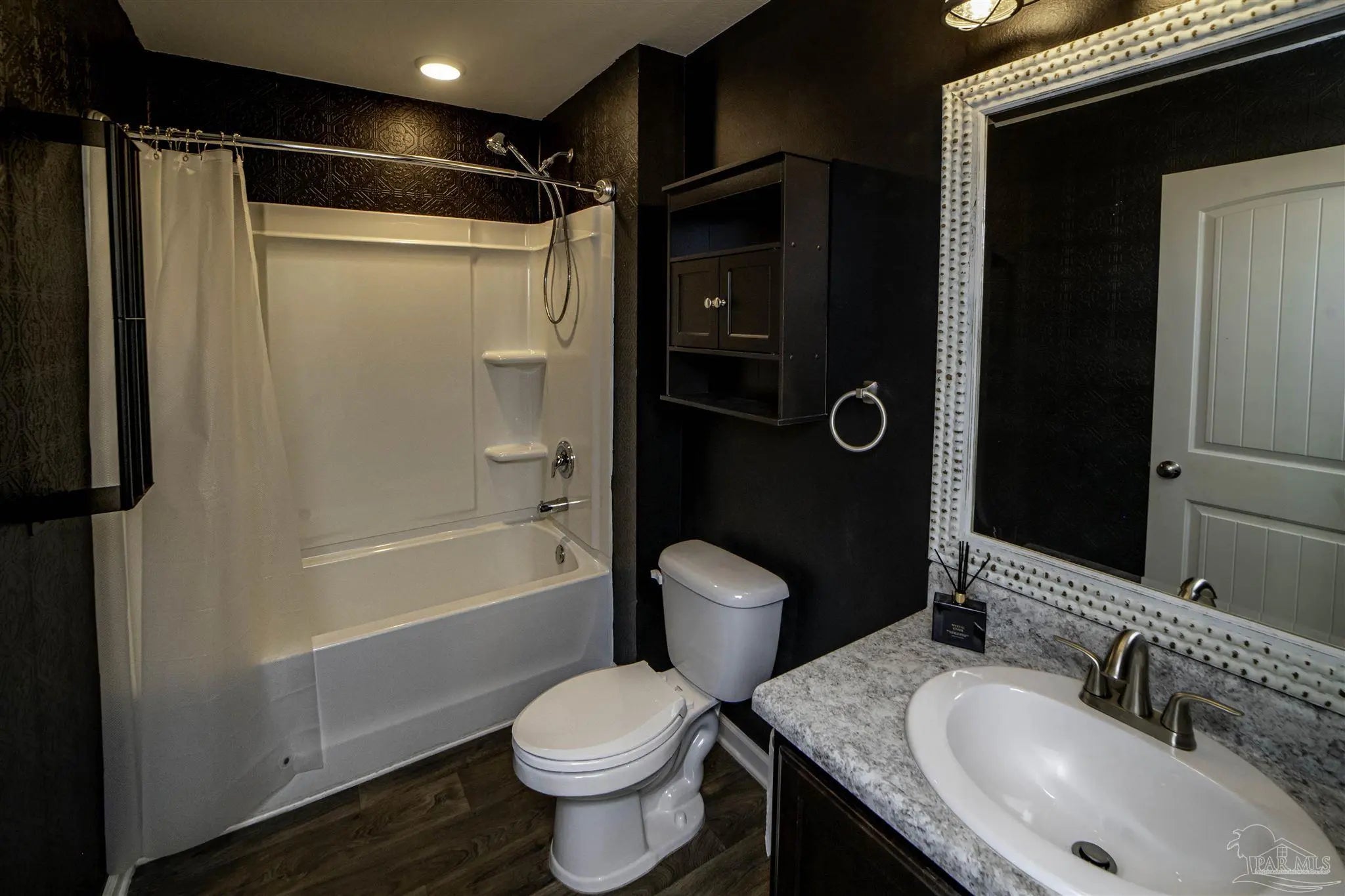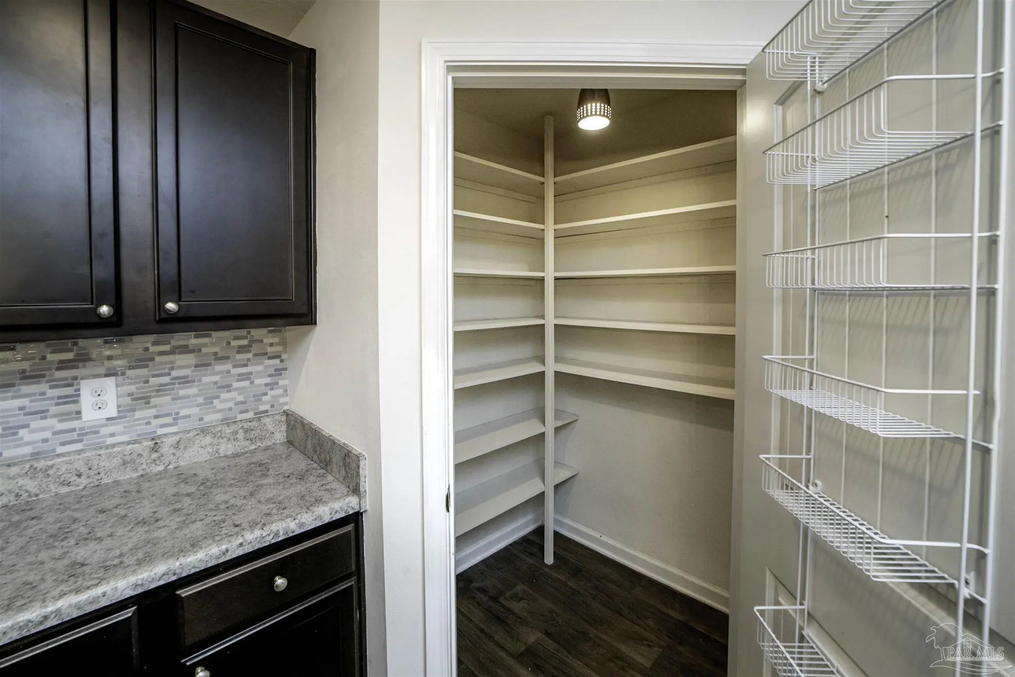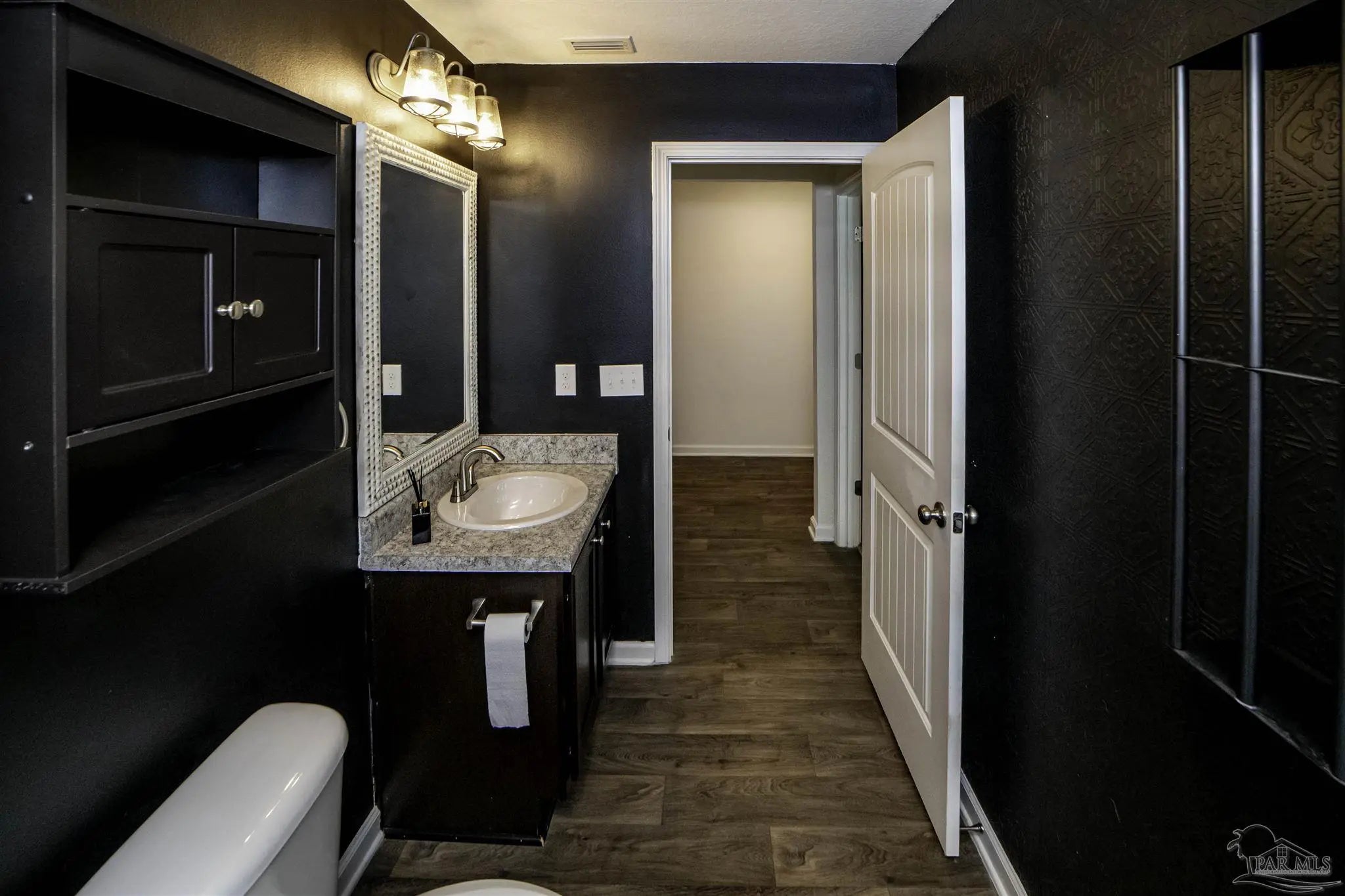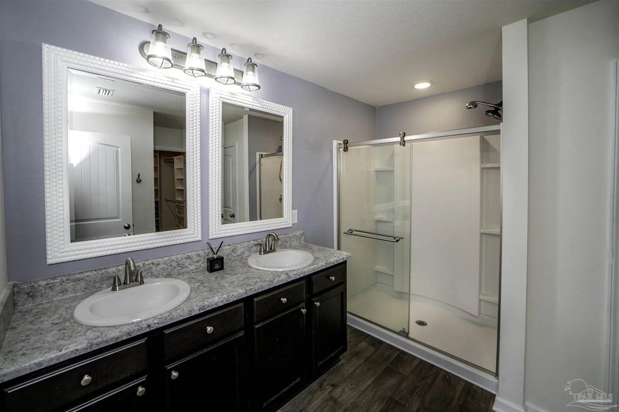 Welcome to this spacious 4 bedroom, 2 bathroom home located in Bridlewood in the Beulah area. A welcoming covered front porch leads into the carefully maintained home and into the split bedroom plan. Stepping down the hall, the kitchen features a kitchen island, stainless steel appliances, and plenty of cabinet storage, flowing seamlessly into the dining and living areas. The private primary suite includes a walk-in closet and a double vanity bath, while three additional bedrooms provide flexibility for guests, family, or a home office. Step into the back yard and enjoy a covered porch and extended patio with lots of space for outdoor seating. Enjoy low energy bills thanks to the solar panel system. Additional highlights include a two-car garage, Tesla charger in garage, smart home features, and a low annual HOA. Conveniently located near Beulah schools, Navy Federal, shopping and I-10, this home combines modern comfort with a convenient location.