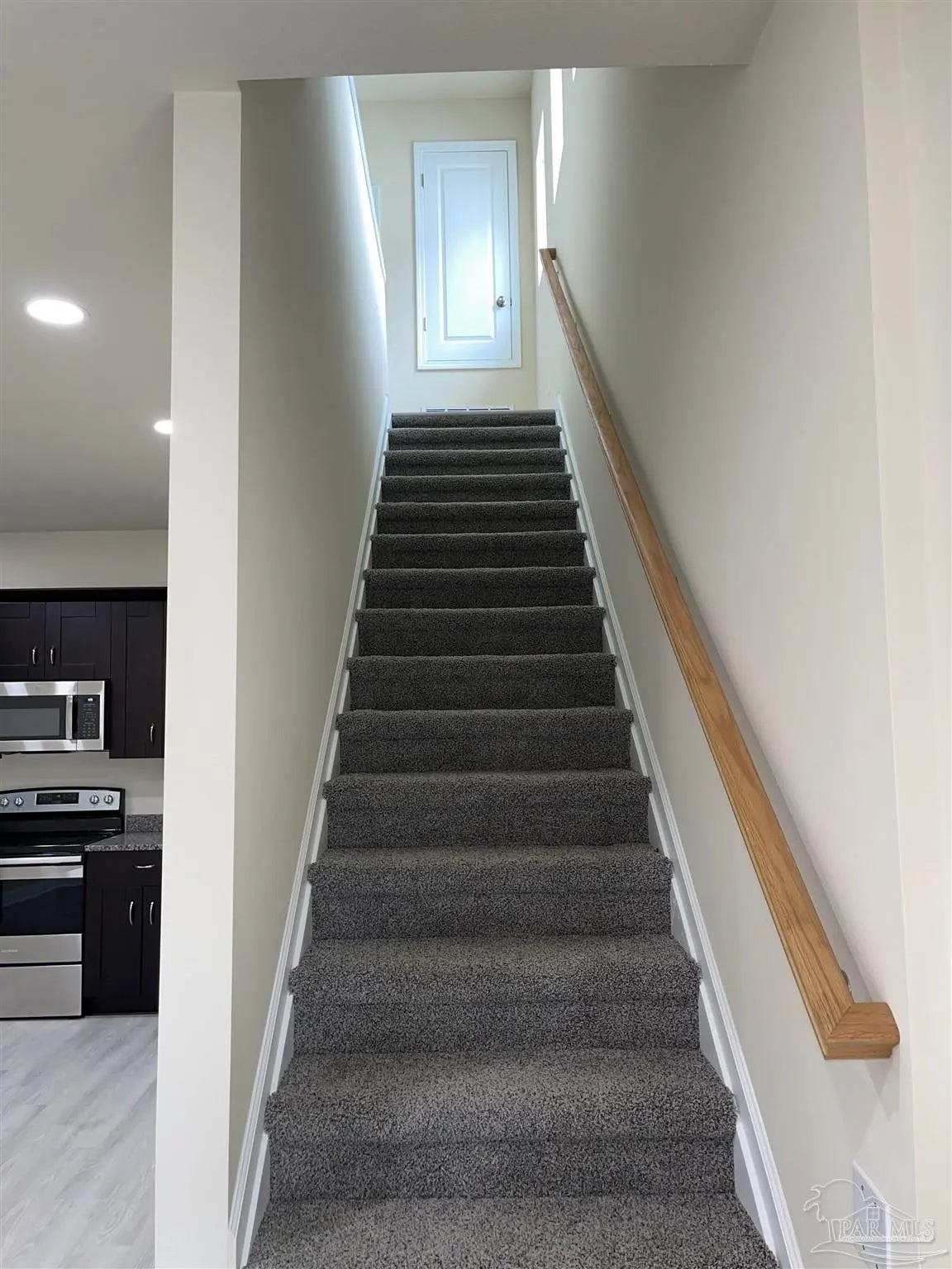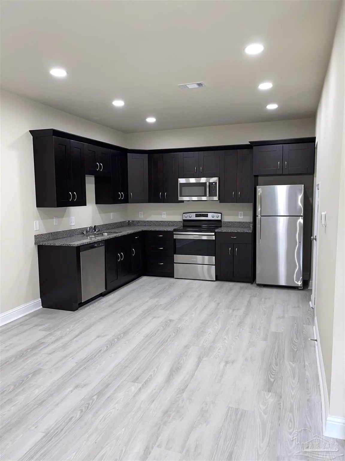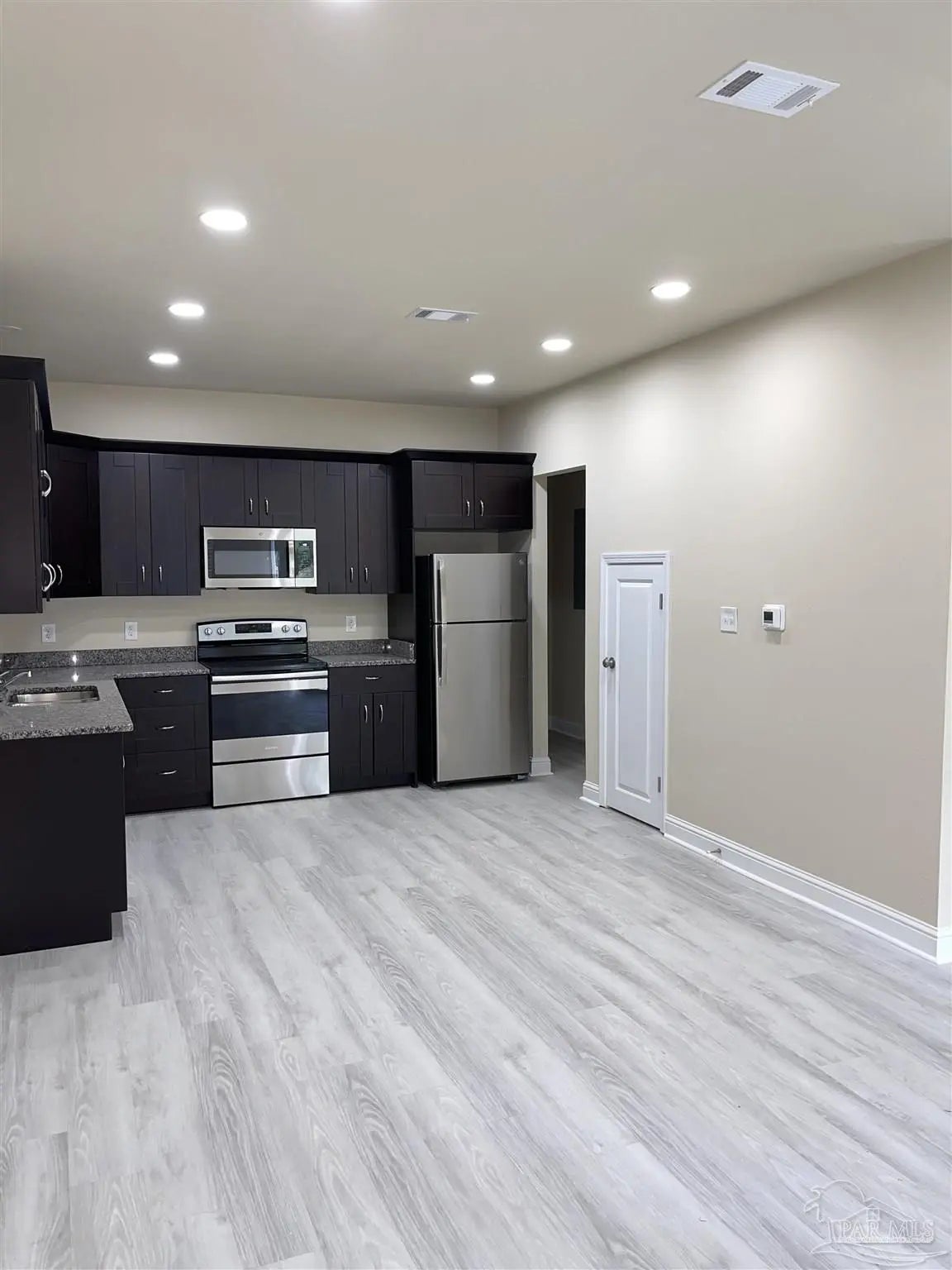 This contemporary home offers modern finishes and a functional layout in a prime downtown location. The kitchen features stainless steel appliances, recessed lighting, a built-in microwave, and luxury vinyl plank flooring that extends throughout the entire home. The split-bedroom design provides excellent privacy, with the primary suite located on the main floor and two spacious guest bedrooms upstairs. Each bedroom offers generous space and comfort. Exterior features include a charming front porch, an upstairs balcony, and a private driveway accommodating two vehicles. Lawn service is included in the rent for added convenience. Ready to make this your new home? Call 850-208-3917 to schedule your personal showing today, and visit TSBRentals.com to complete your application online. There is a $250 Move-In Fee Per Household and a $50 Lease Fee Per Tenant. Pets allowed with Owner Approval. Pet Fee and Monthly Pet Rent apply.