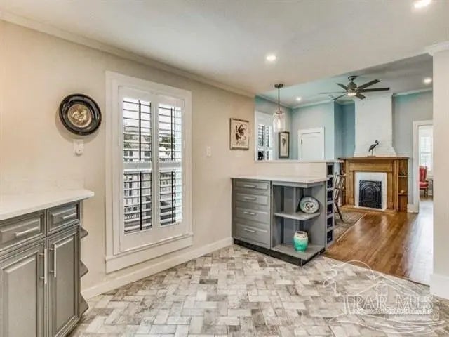 - Baseboards, Ceiling Fan(s), Crown Molding, Recessed Lighting