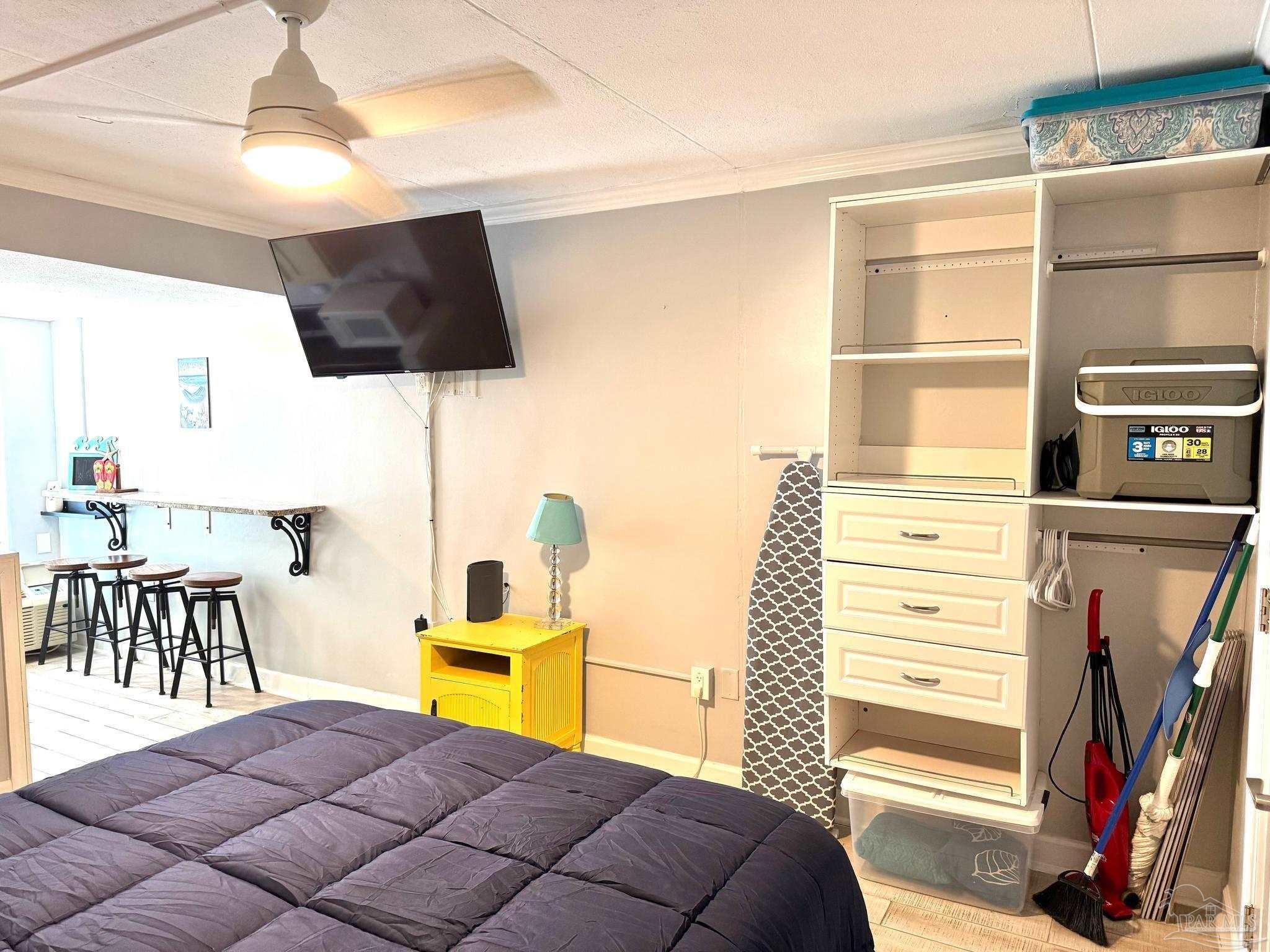 Convenient location directly across the street from the Hangout and Pink Pony Pub. The Beach is located behind the Hangout, a short 3 minute walk. The unit comes with a parking space as well, so your guests will have a place to park during the many festivals put on at the Hangout. Walking distance to many restaurants, shopping, and much more. The unit is a studio/one room unit with a queen bed, private updated bathroom, and a kitchenette with a small refrigerator, an induction hot plate, and eat at granite bar.