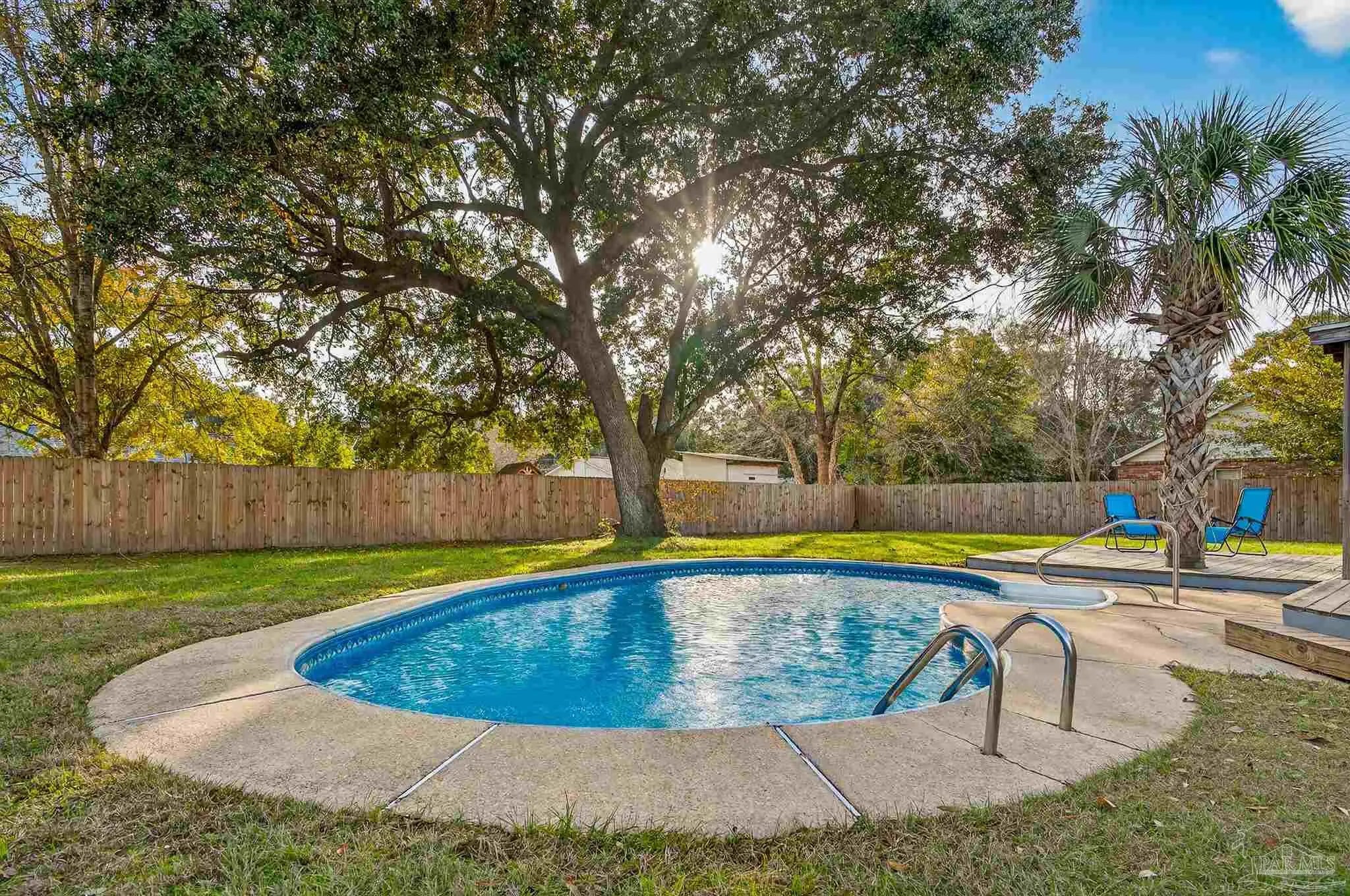 Welcome home ~ to this charming 3-bedroom 2-bath single-family retreat that perfectly blends country living with everyday convenience. Nestled on a spacious lot, this home offers peace, privacy, and room to breathe ~ while keeping you close to shopping, dining, and major amenities. Inside ~ you’ll find a warm and inviting living space ~ highlighted by a beautiful wood burning stone fireplace, a vaulted ceiling complemented by a lovely lighted ceiling fan, and expansive windows that create a sun-filled living room perfect for relaxing or entertaining. Spanish lace textured ceilings and walls, 6-panel doors, chair railing with molding in the dining room, and crown molding and baseboards throughout, add a refined touch. The kitchen is filled with solid wood cupboards, and the breakfast nook offers lovely views of the in-ground pool, making mornings a true delight. The 14’5 x 12’5 primary suite features a double vanity, a private tile clad bath/shower combo, and a large walk-in closet providing ample storage. Every room is thoughtfully designed for comfort and functionality, offering defined spaces for dining, relaxing, and everyday living. Step outside to your own private oasis. Enjoy sunny afternoons in the in-ground pool, host friends on the spacious deck, or simply unwind and take in the peaceful scenery of the expansive back yard. Combining charm, character, and the ideal location, this home offers the best of both worlds ~ and is ready to welcome you ~ home! Updates: New 6 ft wooden privacy fence and gates 2023; Exterior paint 2022; New pool pump and sand filter 2021; New pool liner 2021; Water Heater 2021; New Windows and front door 2018; LV Floor Lumber Liquidators 2018; HVAC 2014; To make your move even easier, the sellers are offering up to $15,000 in Seller Concessions and providing a home warranty for added peace of mind.