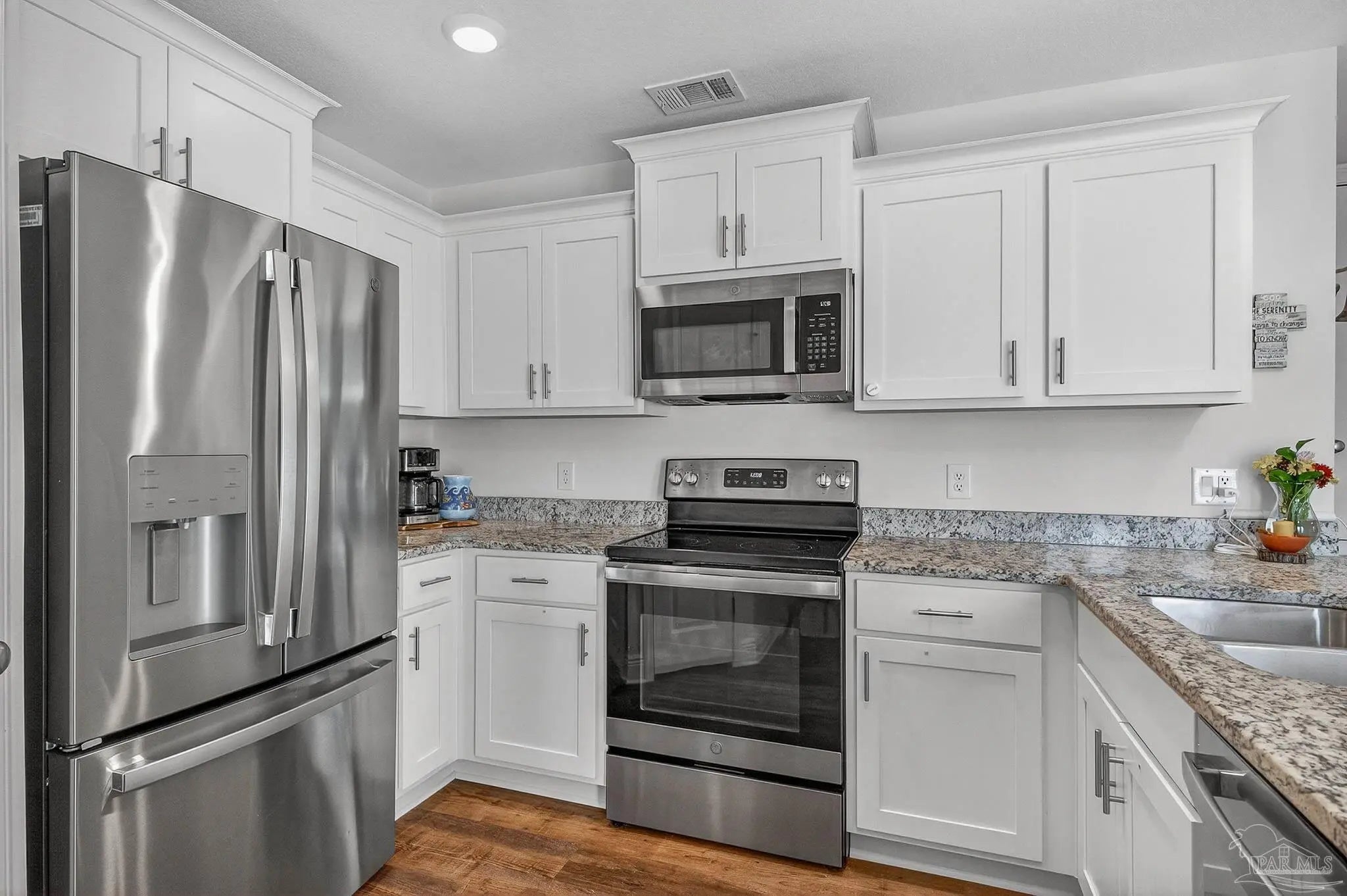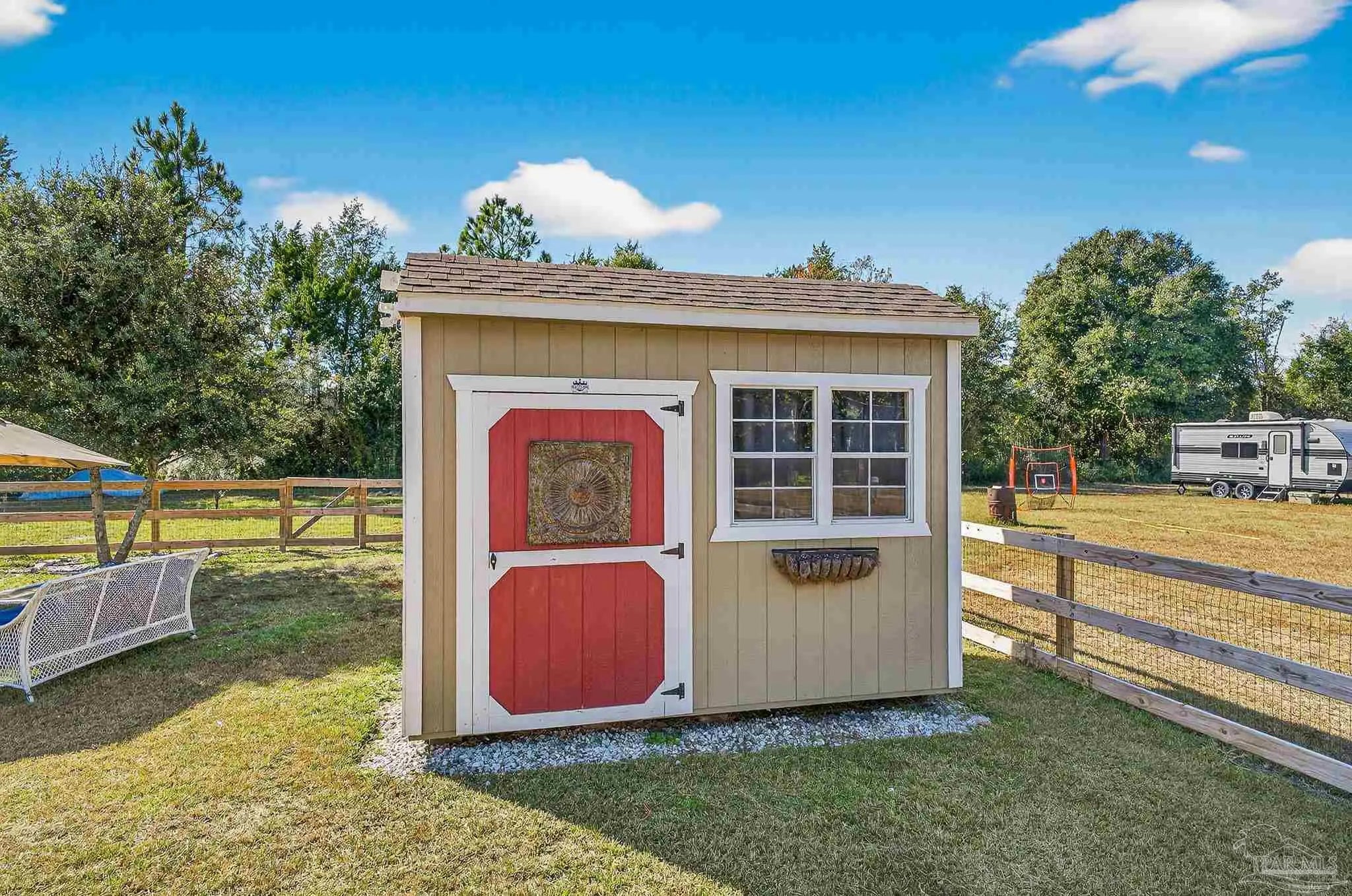Welcome to this like-new home—just two years old (built 2023) on nearly a half-acre lot in a quiet subdivision. With 3 bedrooms and 2 bathrooms across 1,165 sq. ft. of finished living space, the floor plan is thoughtfully laid out for both comfort and ease. Step inside to an open living room/kitchen/dining area where modern finishes abound: granite countertops, shaker-style cabinets, a walk-in pantry, stainless-steel kitchen appliances, and a convenient breakfast bar. Luxury vinyl plank flooring spans all of the common areas while the bedrooms offer plush carpet for comfort. The master suite enjoys a large walk-in closet and a private bath with granite vanity. Outside, the home sits on a nicely sized 0.46-acre parcel giving you both space and privacy. A recently installed fence encloses a generous portion of the yard — ideal for children, pets, or outdoor entertaining — while beyond the fenced area the lot continues, opening up exciting possibilities: a large garden, play area, or even potential for a pool and outdoor living. This property combines the ease of move-in with the benefits of extra outdoor space seldom found in newer homes. Don’t miss this opportunity for a virtually brand-new home with extra land and flexibility in one of Santa Rosa County’s suburbs.