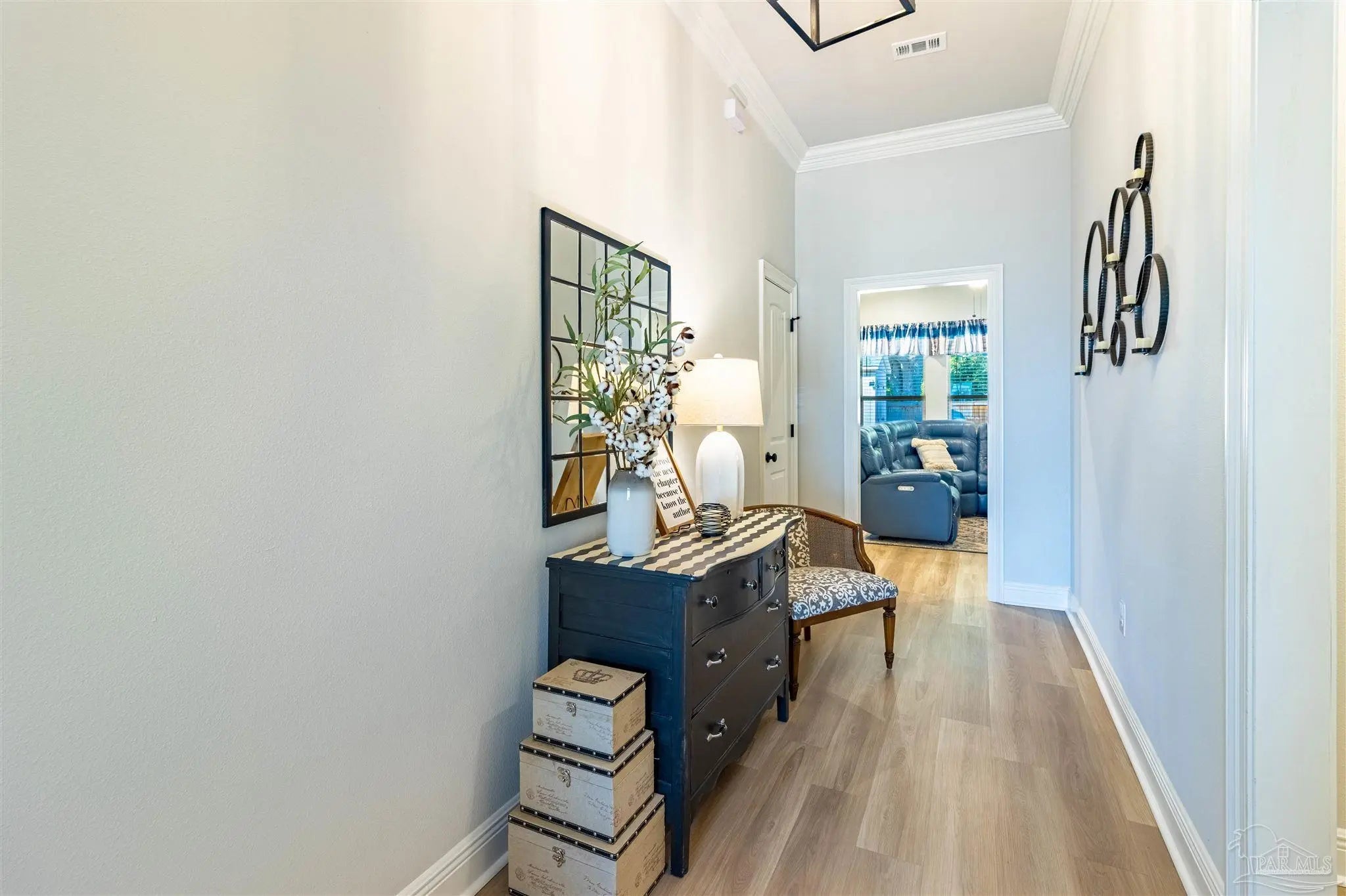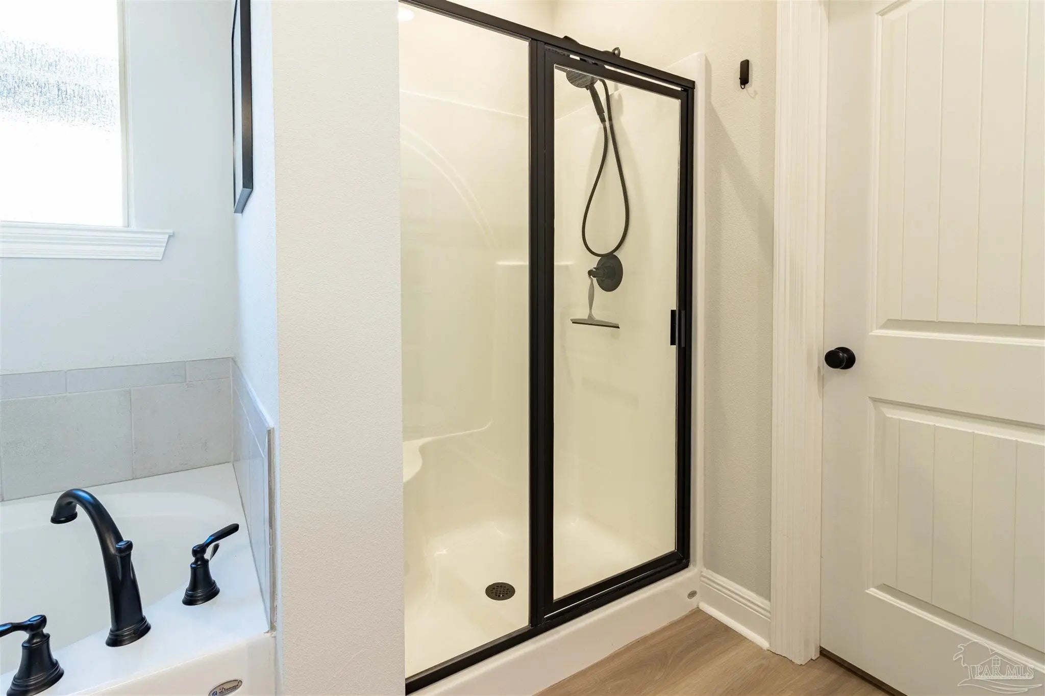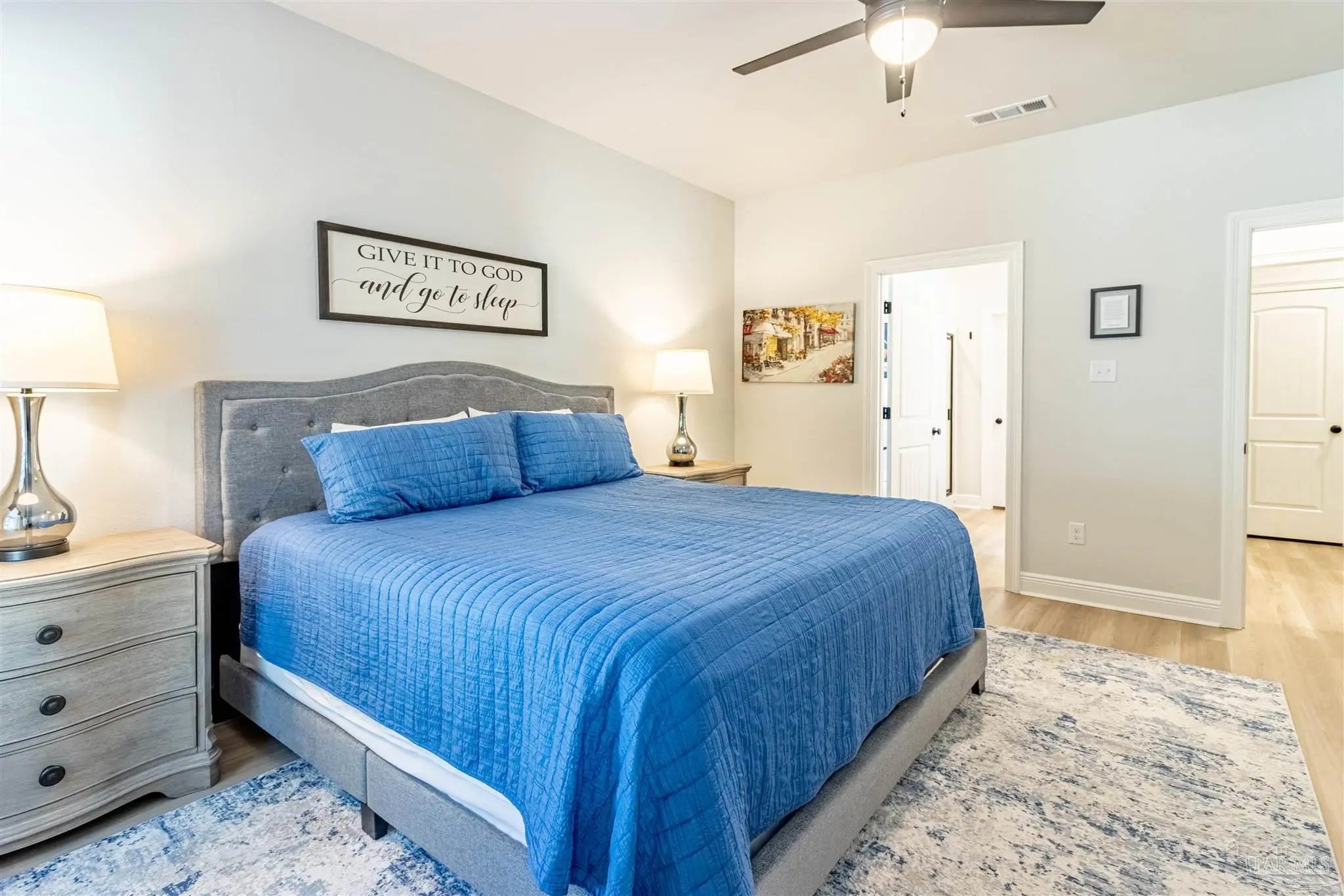 Welcome to this beautifully designed 3 bedroom, 2 bathroom home featuring an open layout with a desirable split floor plan. Luxury vinyl plank flooring extends throughout the entire home for a clean and cohesive look. The kitchen includes quartz countertops, a large island, subway tile backsplash, walk in pantry, stainless appliances, undermount sink, cabinet hardware, and recessed lighting. The spacious primary suite offers a double vanity, garden tub, separate shower, and a generous walk-in closet. Both bathrooms include framed mirrors, and the home features upgraded lighting throughout including pendant lighting and canned lighting. A mud room with its own walk-in closet adds valuable storage space. Outdoor features include a covered rear patio, LED coach lights on each side of the garage. Additional highlights include vinyl low E MI windows, smoke and carbon monoxide detectors, architectural 30 year shingles, and established landscaping with lawn shed. Energy conscious features such as the water heater and efficient windows add everyday comfort. This home offers a modern design and thoughtful finishes throughout.