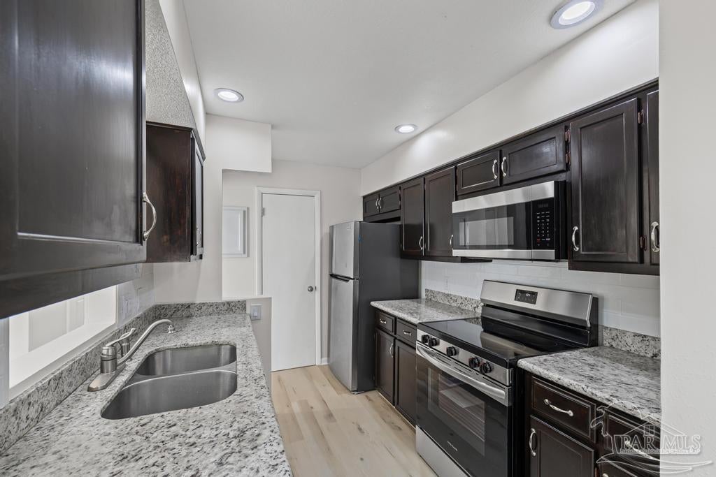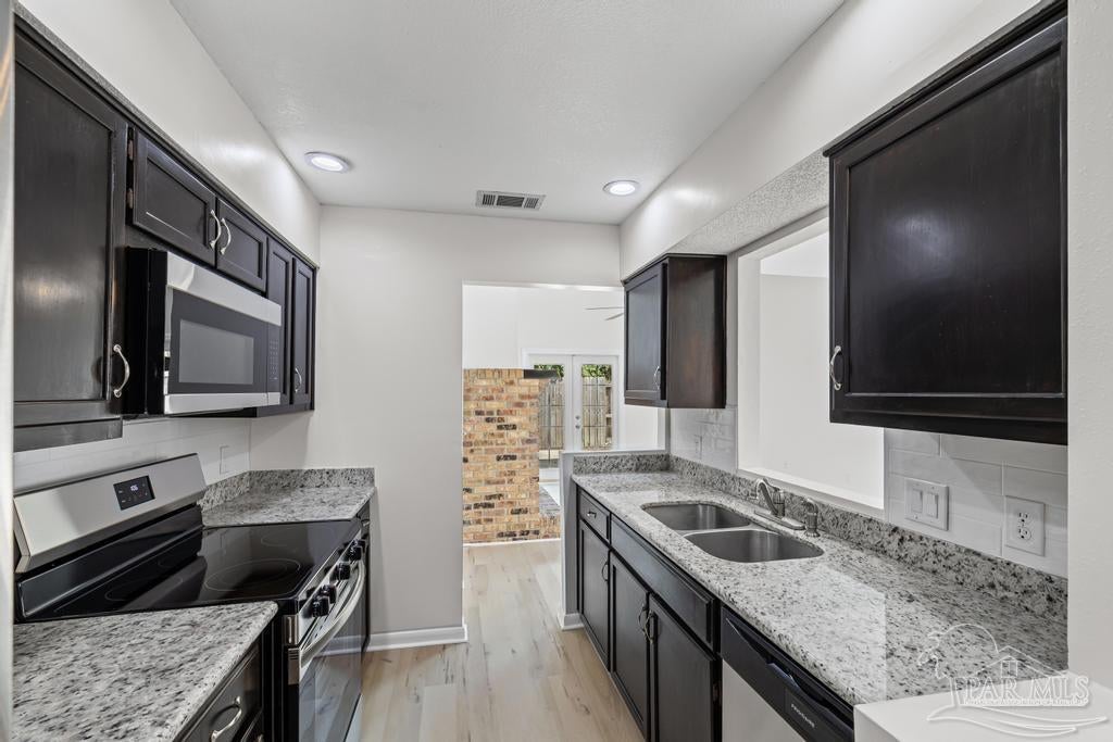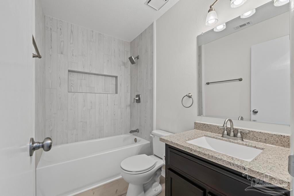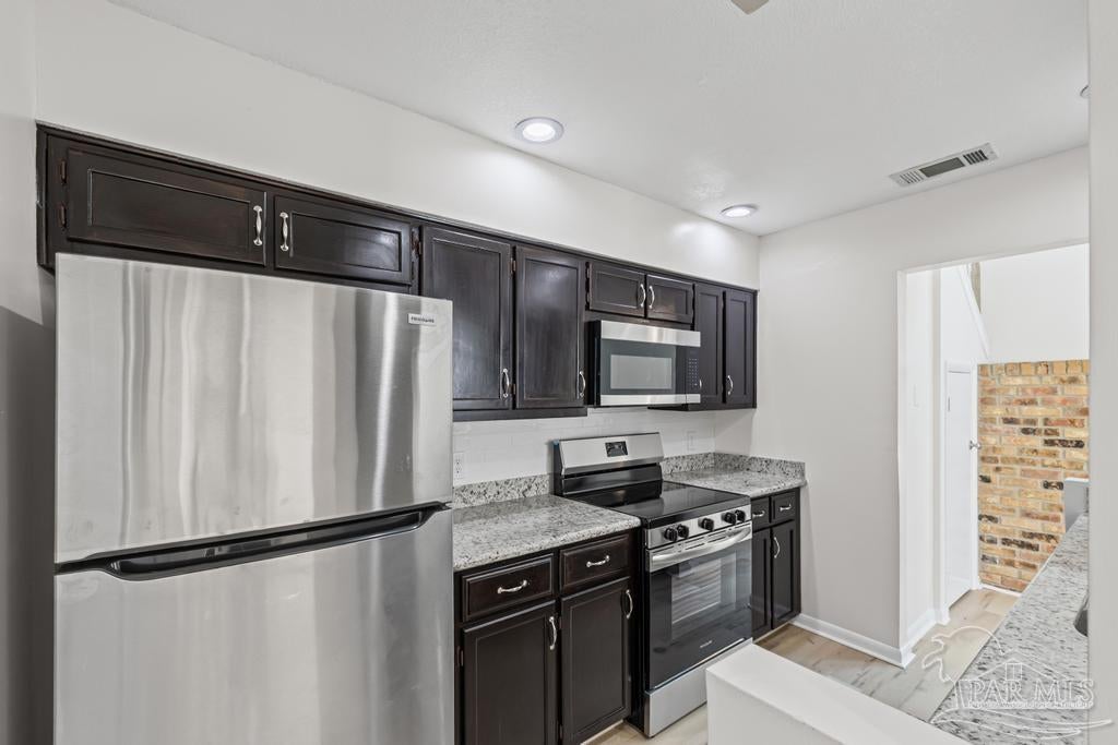 Newly updated Northeast Pensacola townhome with 2 bedrooms and a bonus room now available! Thoughtfully updated with new floors, new paint, tile showers, new appliances and more! Welcome to a bright and airy space on your main floor where the living space is well appointed with a living/dining combo complete with a fireplace and direct access through the french doors to the back patio. Dark cabinets next to the granite countertops are a true beauty in the kitchen that features subway tile and plenty of prep and storage space. The secondary bedroom and one full bathroom are located on the main floor. Just up the stairs is the main bedroom complete with a full ensuite, large walk-in closet and a bonus room perfect for hobbies, reading space, at home office or whatever needs you or your family have! This is a beautiful home and is a low monthly cost HOA- call today