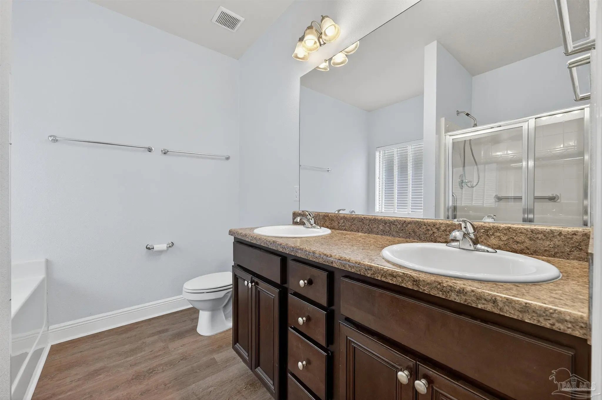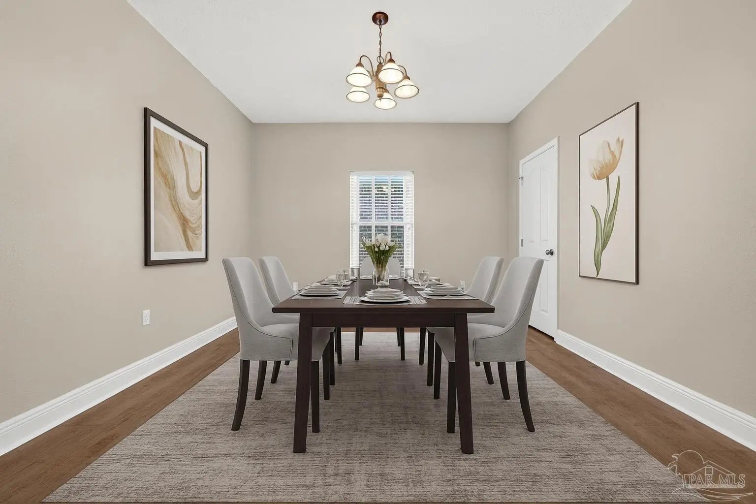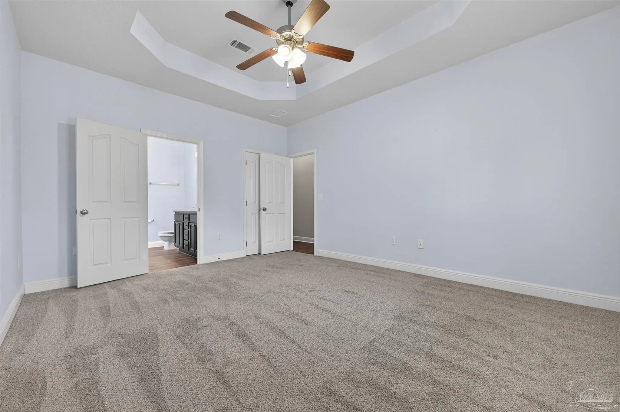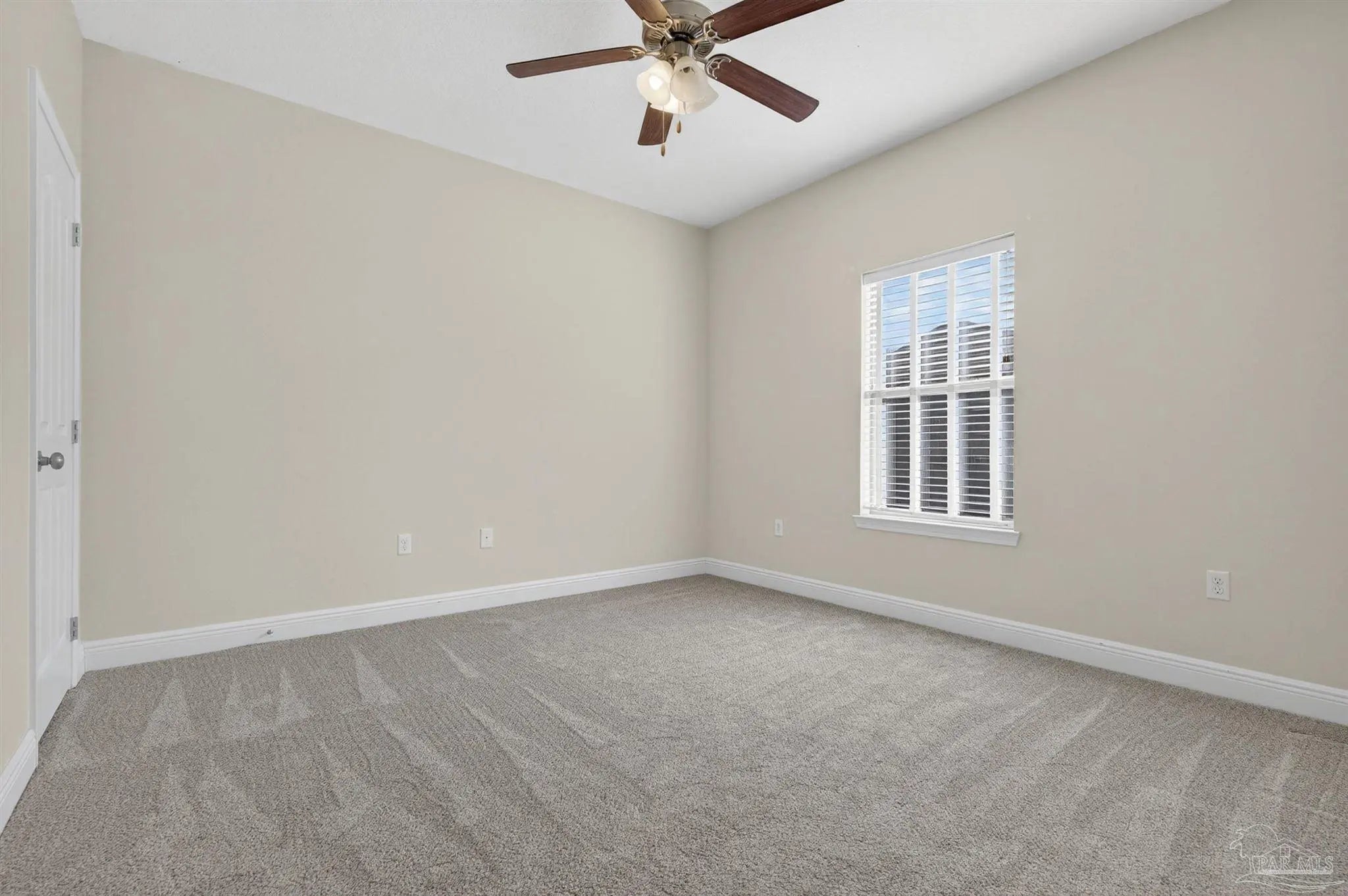 Welcome to this clean, beautifully maintained 2011-built home in Pensacola, near Nine Mile & I-10! Nestled in a tidy, well cared for neighborhood with no HOA, this home gives you added flexibility. The home features a 2021 roof, a two-car garage, and a fully fenced backyard. Inside, the open floor plan creates an inviting flow; the bright and airy living room boasts a tray ceiling and opens seamlessly to the kitchen. There you’ll find a breakfast bar, ample cabinetry, a pantry, and a built-in microwave. A formal dining room with dimmable lighting and an extra storage closet, just off the kitchen, offers even more flexibility for hosting. The spacious primary suite includes a tray ceiling, a large walk-in closet, and the bathroom features a double vanity, relaxing garden tub beneath a bright frosted window, and a separate standing shower. Two additional bedrooms are situated side-by-side with a full bathroom between them, featuring a tub/shower combo. Step outside to a backyard designed for enjoyment, offering a privacy fence, covered patio, and a storage shed (7'10" x 9'10"). Additional features include easy-to-clean pivot windows and hurricane shutters for peace of mind. From entertaining guests to spending quality time at home, this property offers comfort for any family!