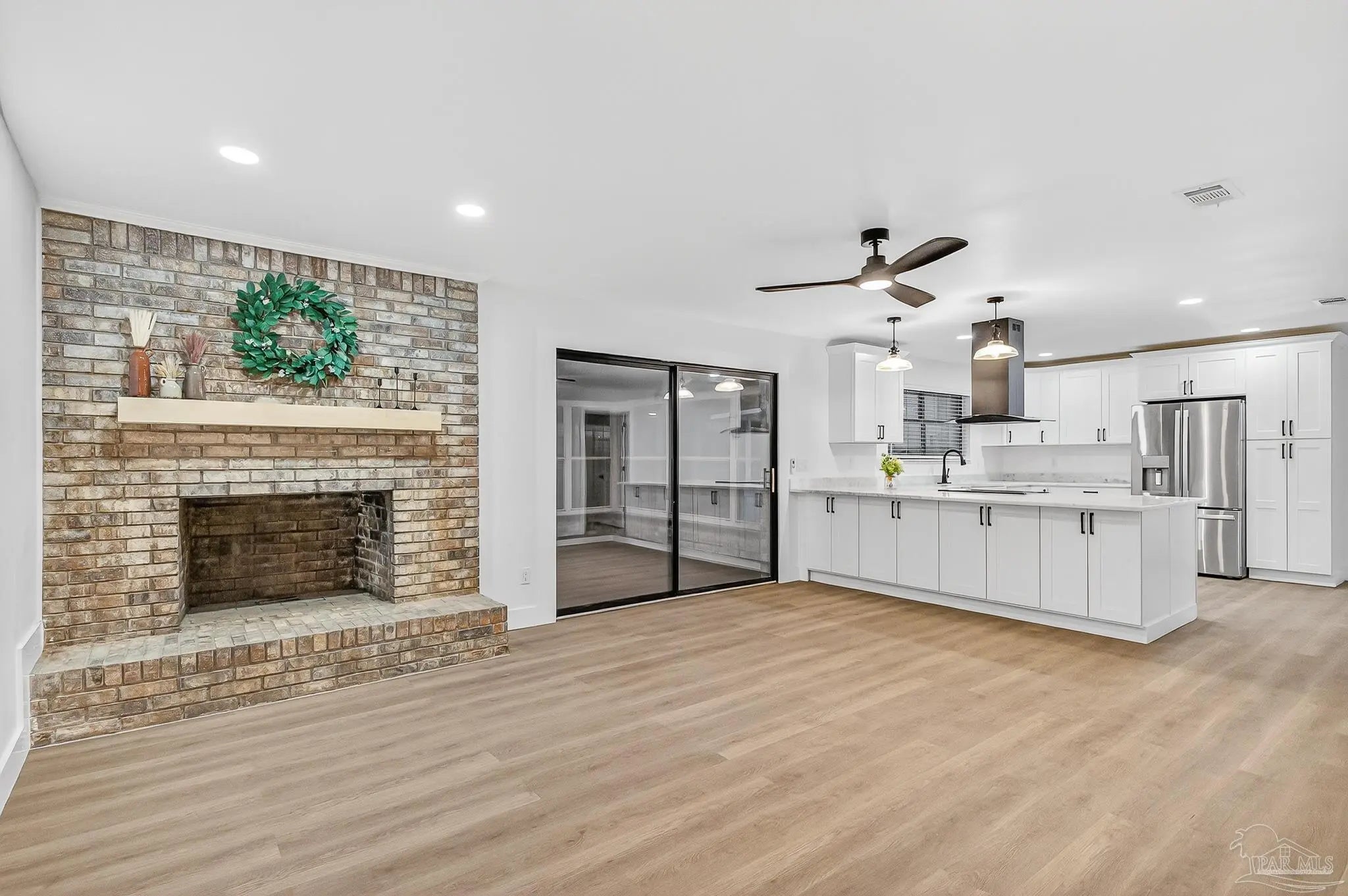 *PRICE DROP* • NEW E-RATED WINDOWS ON ORDER! This beautifully remodeled 4 bedroom, 2 bathroom brick home sits on over 4 acres with an impressive 660 ft of frontage on Hwy 97 and offers true country living with multiple functional outbuildings and extensive upgrades throughout. Inside, you're welcomed by a formal dining room off the foyer, a spacious living room with a wood-burning fireplace, and a chef’s kitchen featuring all-new wood soft-close cabinets, granite countertops, stainless steel appliances, a farmhouse sink, lazy Susans, and a built-in spice rack. Two guest bedrooms share a full bath with a double vanity, while the oversized laundry room includes a sink, storage, and access to a covered deck. The master suite features a double-vanity bathroom, tile shower, walk-in closet, and its own private deck perfect for morning coffee, plus a sunroom with a mini-split provides excellent space for a family room, office, or hobby room. Outside, the property boasts a massive two-story metal workshop with two rolling doors (large enough for a semi-truck) with new motors and wheels, loft storage with retractable stairs, water and power, an additional shed with a private well supplementing public water, covered tractor parking with lumber and log storage, and beautiful cleared spaces offering endless possibilities. 25' Roof, 25' Mini Split 25' HVAC, and 25' Water Heater. Seller is a Florida licensed Realtor—don’t miss this incredible opportunity and schedule your private tour today!