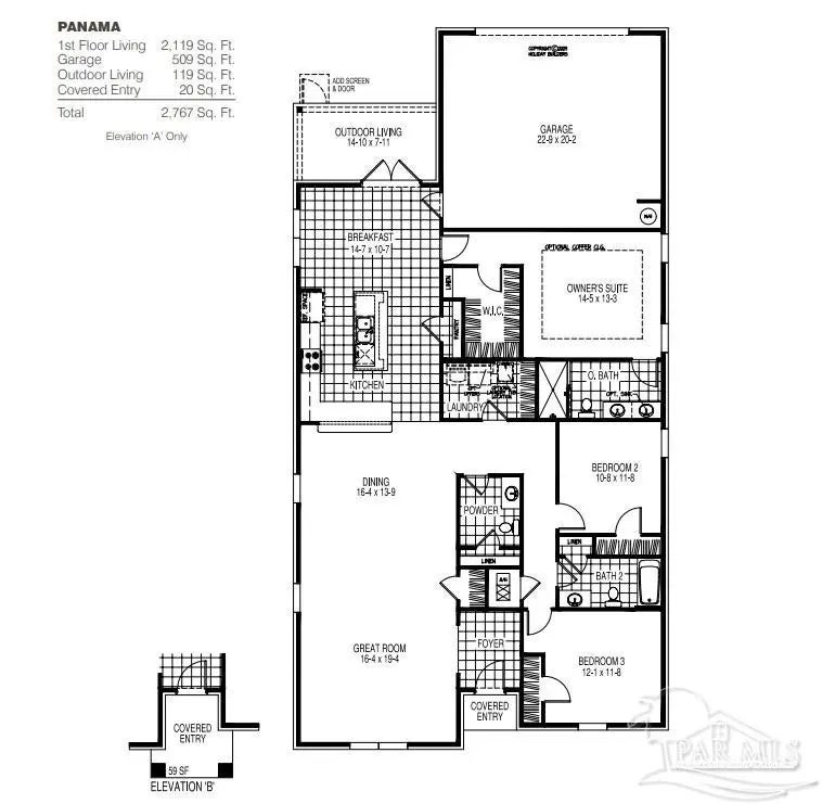 PANAMA model! Your new Panama floorplan is the perfect size for a starter or downsizing home. It’s a lovely three-bedroom two-and-a-half-bathroom home. As you walk in, you will enter into a small foyer which opens up to a spacious large Great Room. As you continue, you will be greeted by your formal Dining Room that opens into a great kitchen. Your Kitchen has plenty of counter space and a lovely island facing out to the living area to keep the chef of your family involved in conversations. The owner’s suite is off the back of the home for privacy and has a nice sized walk-in closet in addition to the ensuite owner’s bath. Your second retreat is off the dining area and features a guest half bath plus your two spare bedrooms with a full bath. Your new home has abundant space in the laundry room which is in the center of the home.