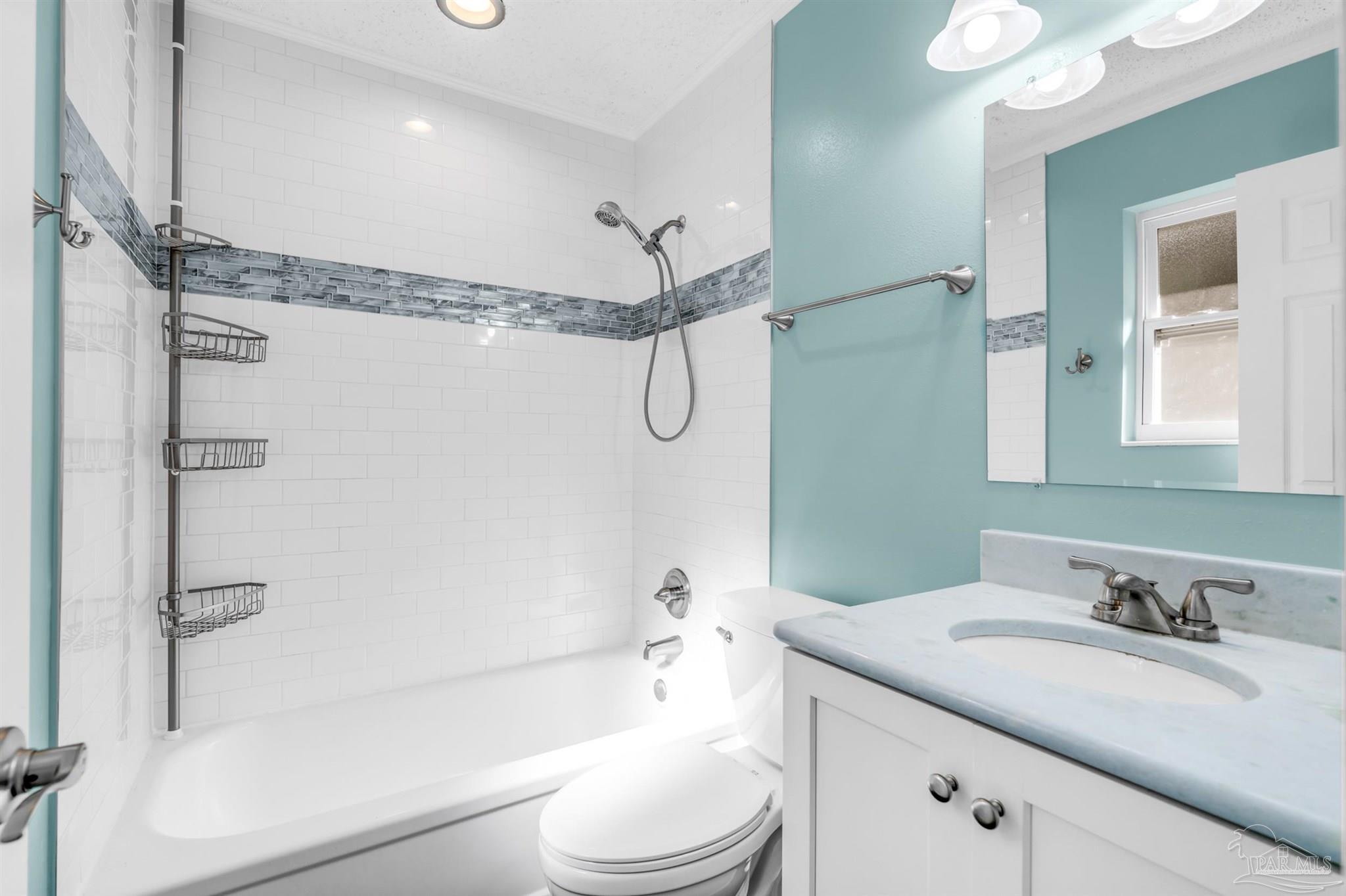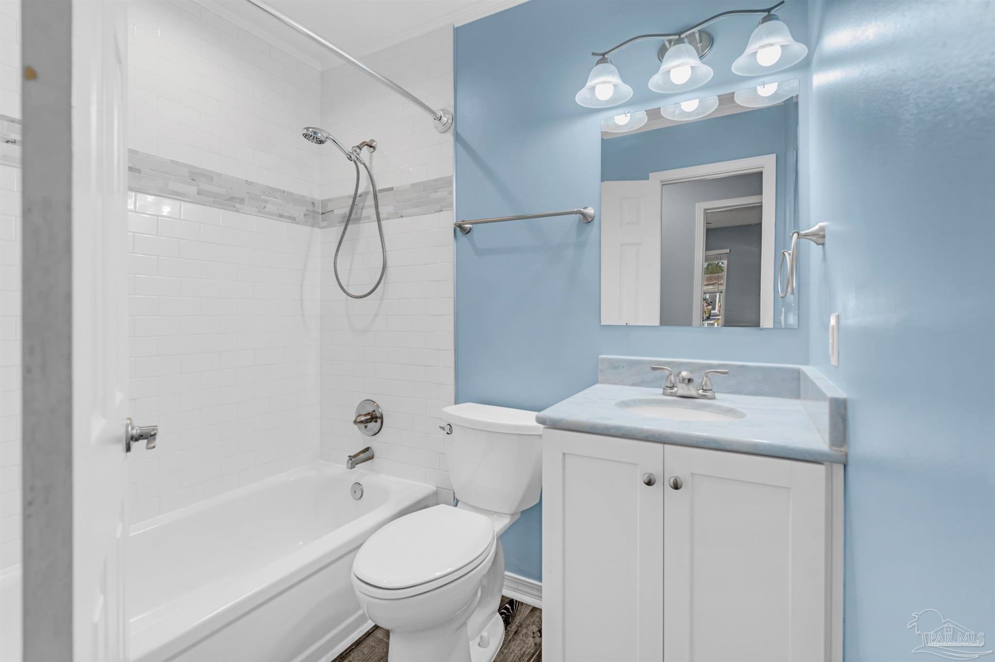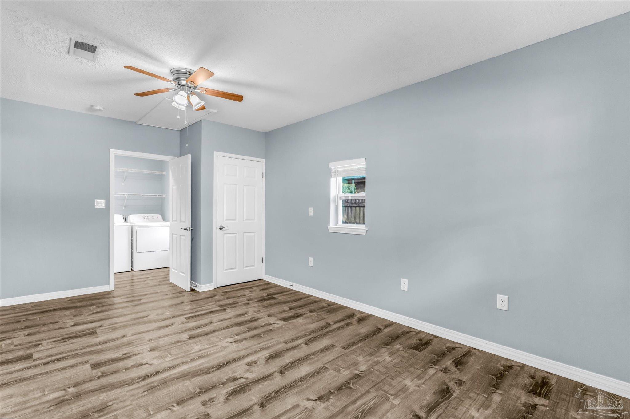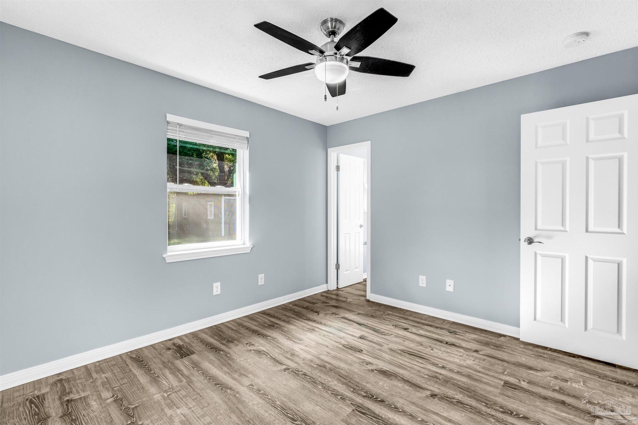 All-brick home on a generous lot in an exceptionally convenient location. This property has been completely remodeled offering almost the fresh feel of a new build while retaining the quality and craftsmanship of an older, better-built home. The Impact Windows installed during the remodel will save you a lot of money on your home owners insurance. The spacious 4th bedroom is oversized and can easily serve as a second living area, media room, or flex space to fit your needs. Out back, you’ll find a large 498 sq. ft. powered workshop perfect for hobbies, storage, or projects along with an additional barn for even more storage options. The updated landscaping, hardboard siding accents, and mature trees create a peaceful, inviting setting. A large front carport provides covered parking and easy access. Major updates include all-copper wiring completed in 2018, along with new outlets, switches, and electrical boxes for added peace of mind. This property is ideally located near I-10 and the rapidly growing 9 Mile corridor, offering quick access to new restaurants, shops, boutiques, medical offices, salons, and the expanding Navy Federal Credit Union campus. Barn Sold AS-IS
