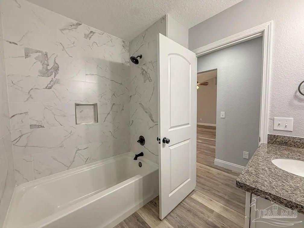 Beautiful 3 bedroom 2 bath 1325sqft split floor plan home located off of Davis Highway behind Academy and BJ's. Very large back porch… Folks, you usually do not see a large back porch on a smaller home… NO Builder grade stuff here…. It has a full 20X20 garage. All baseboards are 1x6. Master bath includes 2 person walk in shower, tile from the floor to the ceiling with double vanity. Hop up ceiling in master bedroom and vaulted ceiling in large common area. Guest bath has tile surround up to the ceiling. Beautiful kitchen cabinet layout that will be accessorized with oil rubbed bronze cabinet pulls, stainless steel appliances, pulled together with granite countertops throughout. Home equipped with a larger back porch accessible from dining room and master bedroom. 2 car garage with large attic space access. Recessed lighting, Architectural shingles and a Covered Porch, & Split Floor Plan - Walk in Closet - Low-e vinyl windows. No Carpet. Room sizes may vary per plan.