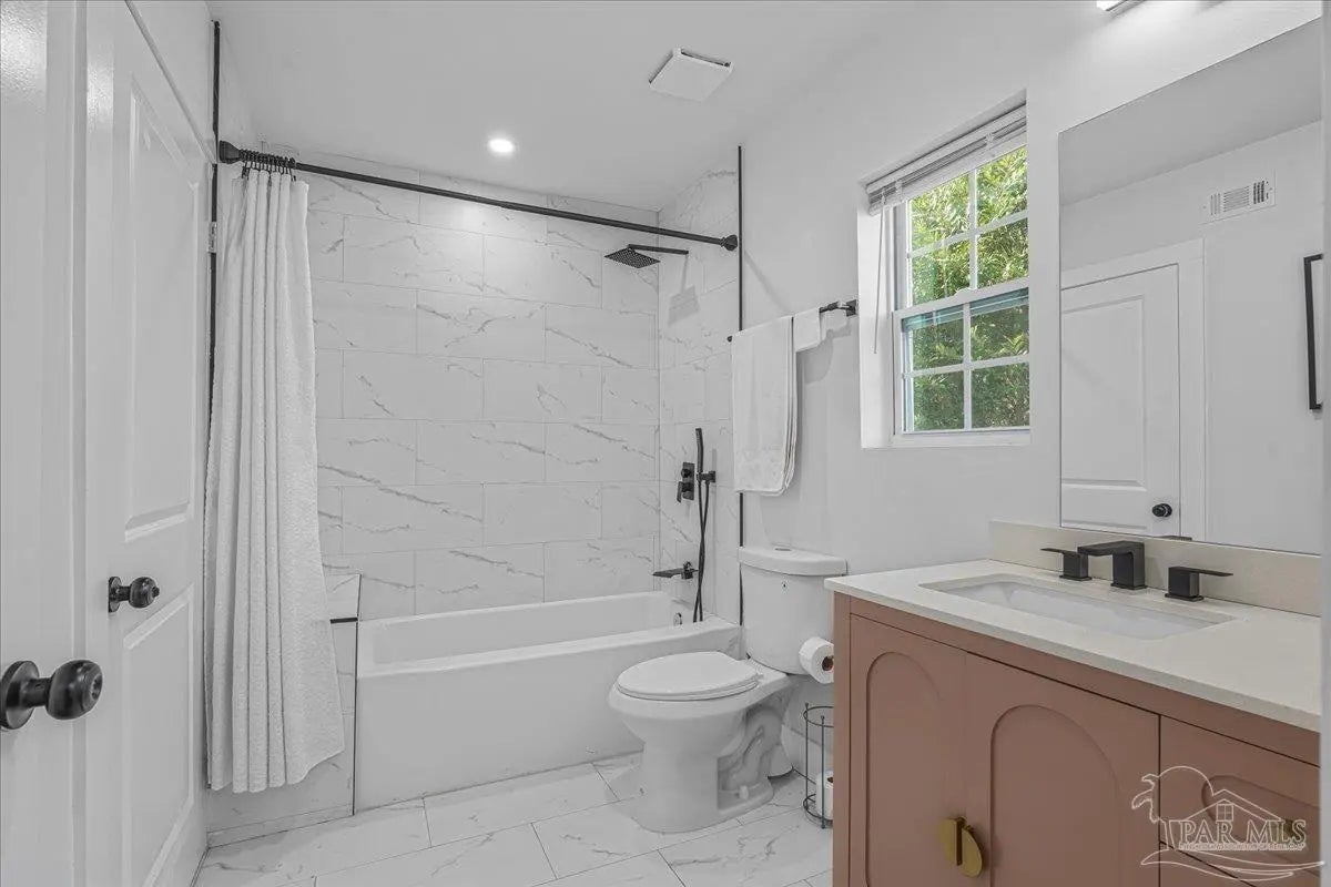 Welcome to this fully renovated 4-bedroom, 3-bath home—redesigned top to bottom for modern living. Every major component has been updated: NEW ROOF, new HVAC, brand-new electrical, plumbing, trim, doors, and high-end finishes throughout. The next owner won’t have to lift a finger for years. Whether you’re looking for your dream home or a strong Airbnb investment, this one stands out. The location is hard to beat—perfectly tucked between Cordova Park and Downtown Pensacola, with dining, shopping, hospitals, Pensacola Airport, and Pensacola Beach all within easy reach. Inside, the split floor plan offers an open, comfortable flow with designer colors, recessed lighting, and brand-new LVP flooring throughout. The home simply feels good the moment you walk in. The chef’s kitchen has been completely updated with GRANITE countertops, Stainless Steel Appliances, beautiful new cabinetry, an island, and an open connection to the dining area—ideal for daily living or hosting. All bedrooms have been upgraded with stylish, lighted ceiling fans and new hardware, while all three full baths have been fully remodeled with tile showers, tile backsplash, quartz vanities, new fixtures, new mirrors, and chic lighting that elevates the entire space. The exterior has been refreshed with modern paint colors and double-pane windows that help with energy efficiency. A circular driveway plus a long carport provide generous parking for family or guests. Out back, you’ll find a nice-sized yard that’s fully privacy fenced, making it perfect for kids, pets, and outdoor fun. The back deck offers a great spot for grilling or relaxing in your own private space. Homes with this level of renovation and instant equity rarely hit the market. Schedule your private showing today and experience the difference.