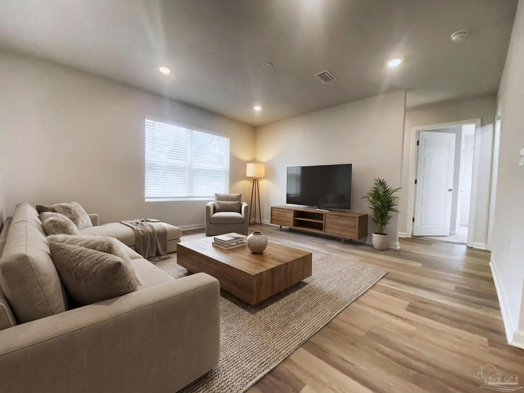 This well-kept 3 bedroom, 2 bath home in Glenhollow offers 1,270 sq ft of practical, modern living. The kitchen and living area share a cozy open layout, complete with stainless steel appliances and durable LVP flooring in the main spaces. Bedrooms feature soft carpet and plenty of natural light. The primary suite includes a walk-in closet and double-sink vanity. A 2-car garage, washer & dryer, window blinds, and a spacious (unfenced) backyard add to the convenience. Located just off Nine Mile Rd for quick access to Navy Federal, shopping, restaurants, and I-10. Pets allowed upon owner approval. Some photos may be virtually staged. Apply online; $75 App fee per adult; half off for active-duty military. Subject to credit check, background check, employment verification, and rental verification. CERTIFIED Funds required for move in!