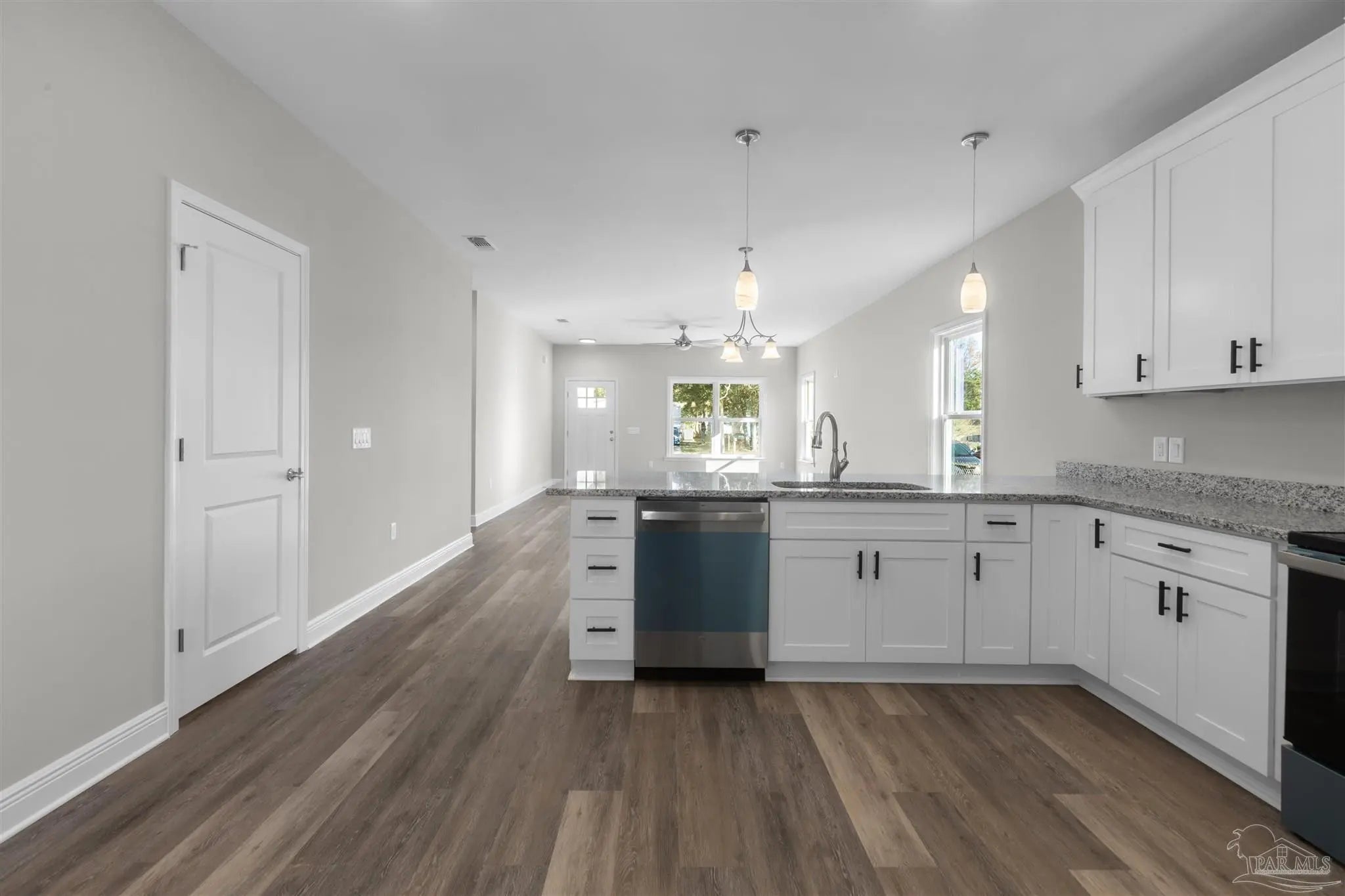 New build and complete! BUILDER OFFERING BUYER CLOSING COSTS WITH ACCEPTED OFFER. NO HOA. Located in the desirable area of East Navarre. This area has ''A'' rated schools. This home has an interior gray color scheme. LVP flooring throughout the home (no carpet) and is natural wood color and a tiled master shower! Large bedrooms and great for a family or roommates. The perfect size kitchen with granite countertops and large pantry. Lawn pump and sprinkler system included. Builder/Owner is a Florida Licensed real estate agent.