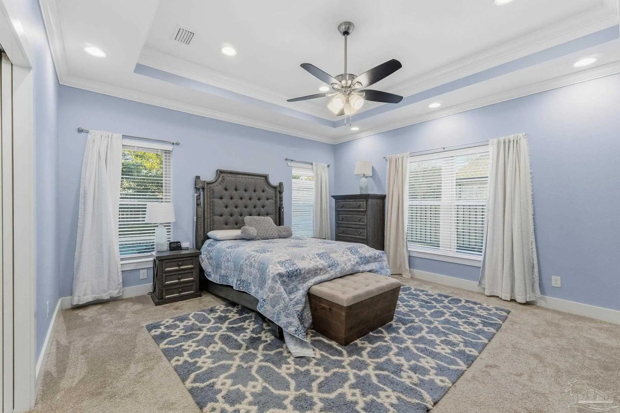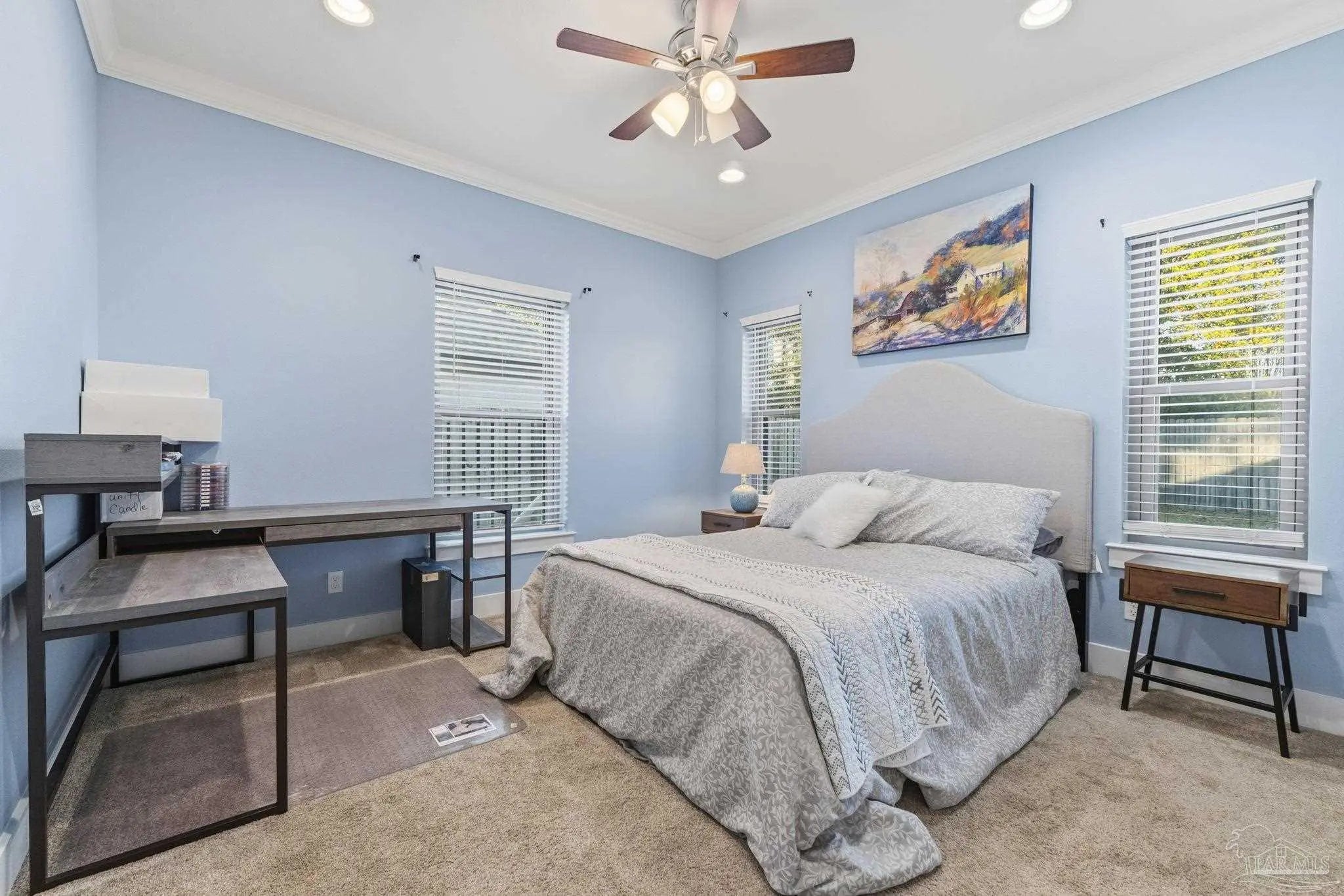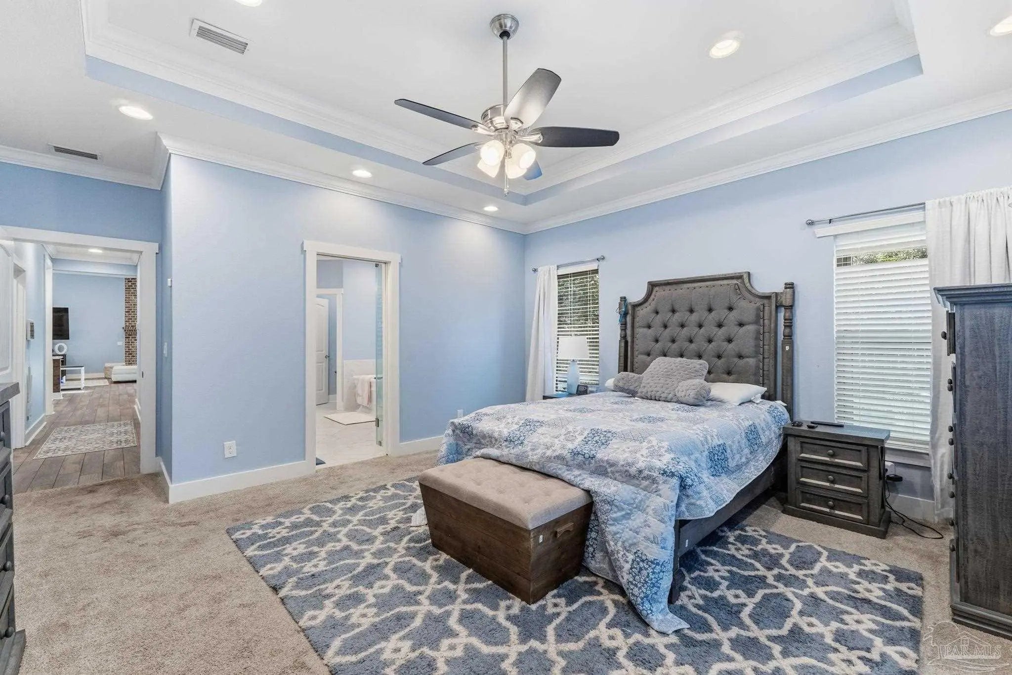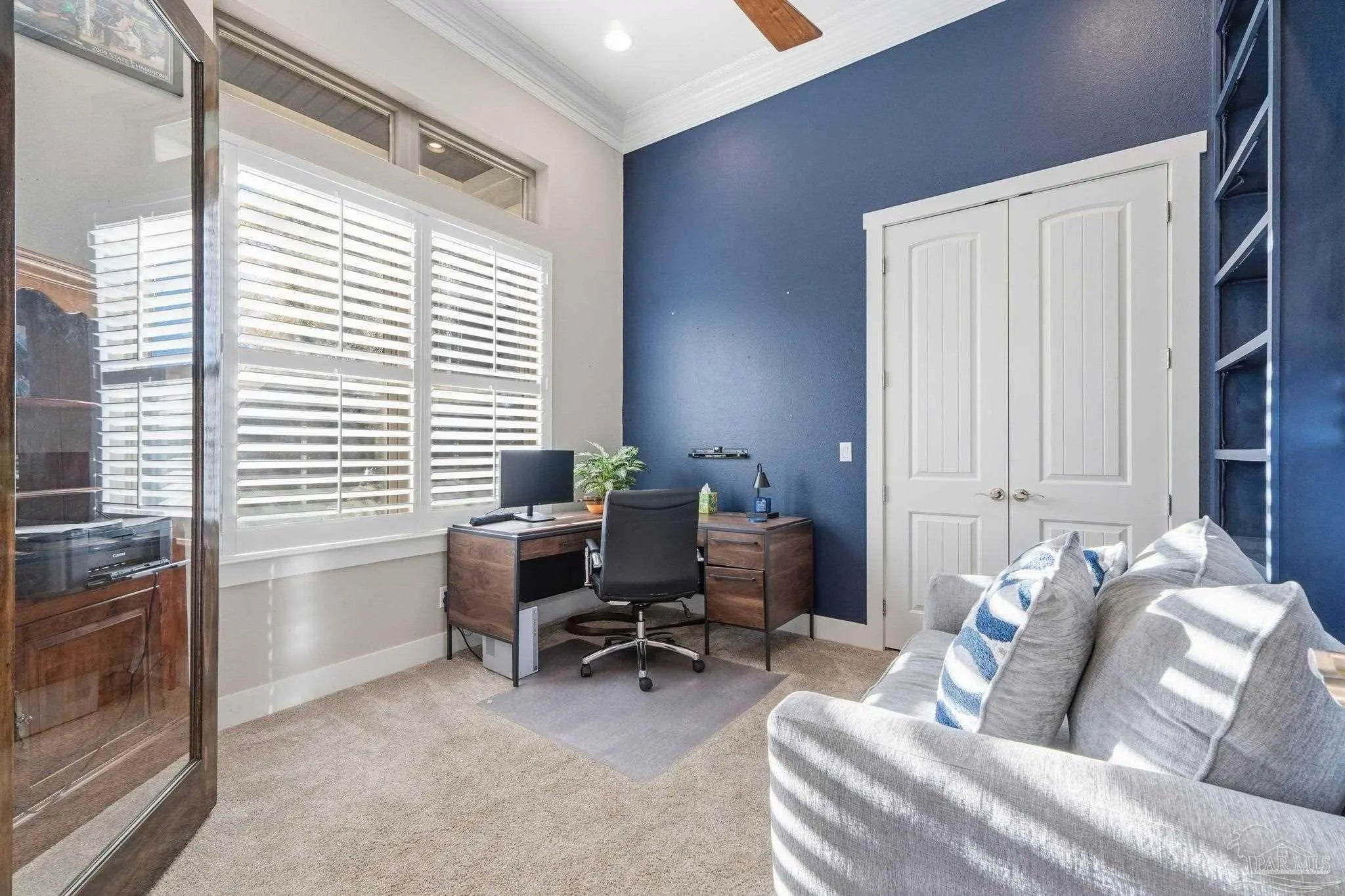 Welcome to this stunning 2019 executive home located in the desirable Grand Oaks Farms neighborhood in Cantonment. This beautifully designed property features 3 bedrooms, 2.5 bathrooms, a dedicated office/study, and a versatile bonus room—perfect for a playroom, media room, or additional workspace. Built with quality and efficiency in mind, the home includes spray foam insulation for exceptional energy savings and comfort. The open-concept layout offers high-end finishes, generous natural light, and seamless flow throughout. Step outside to your private backyard oasis boasting an inground sparkling swimming pool, ideal for relaxing or entertaining year-round. This home is also equipped with a state-of-the-art security system and an integrated surround sound system, providing luxury, convenience, and peace of mind. With its elegant design, premium features, and prime Cantonment location, this home is truly move-in ready and built to impress.