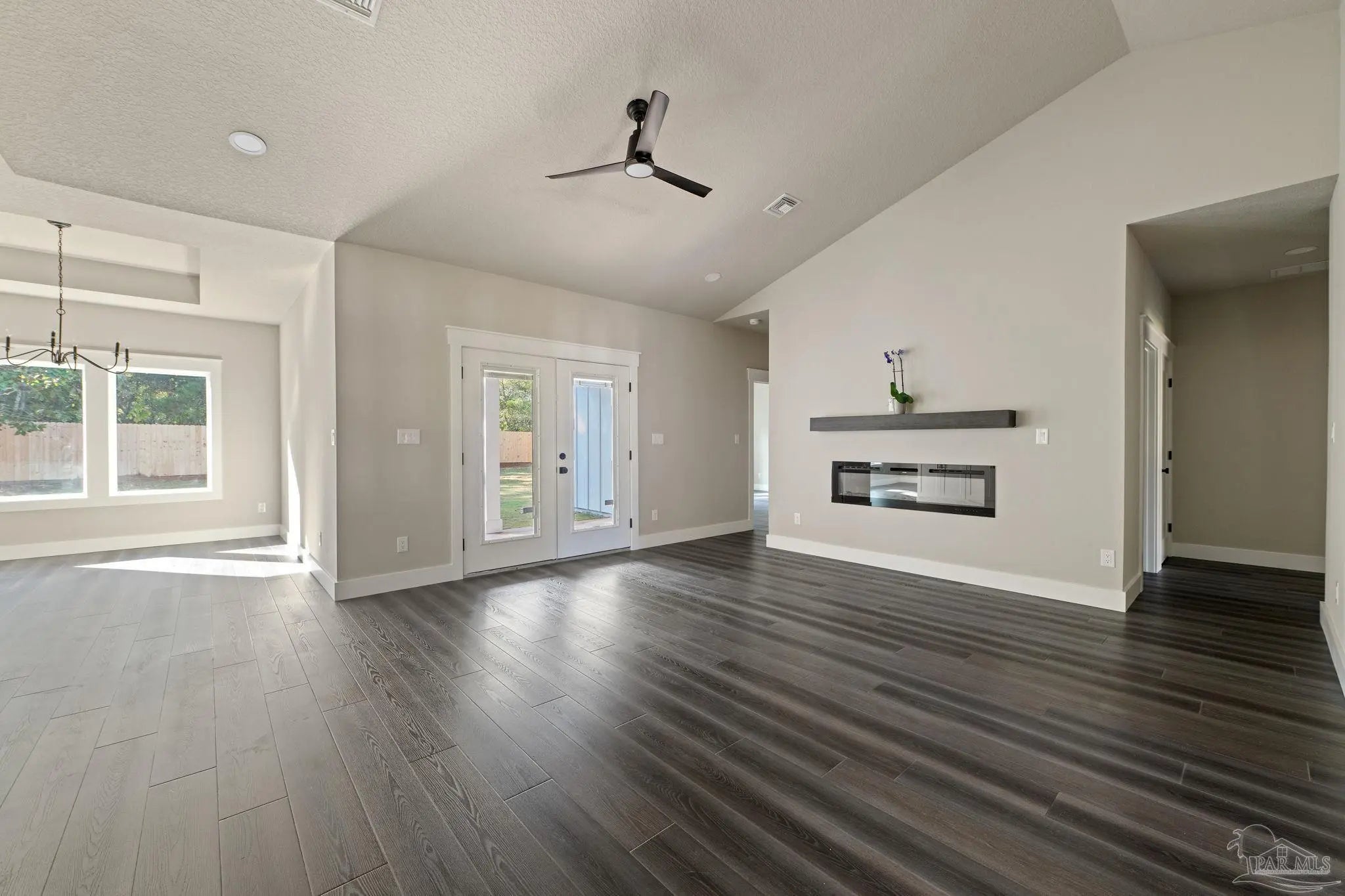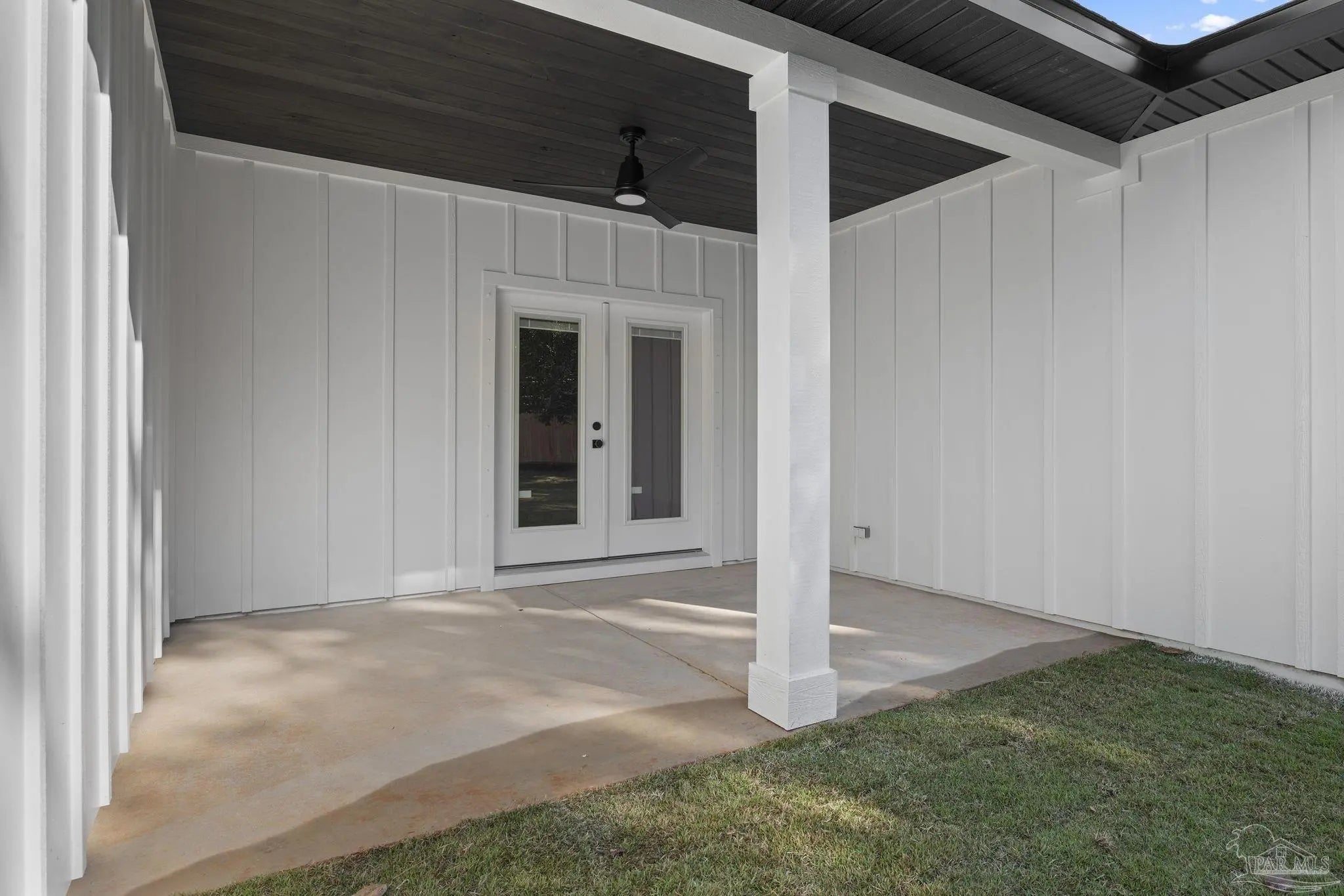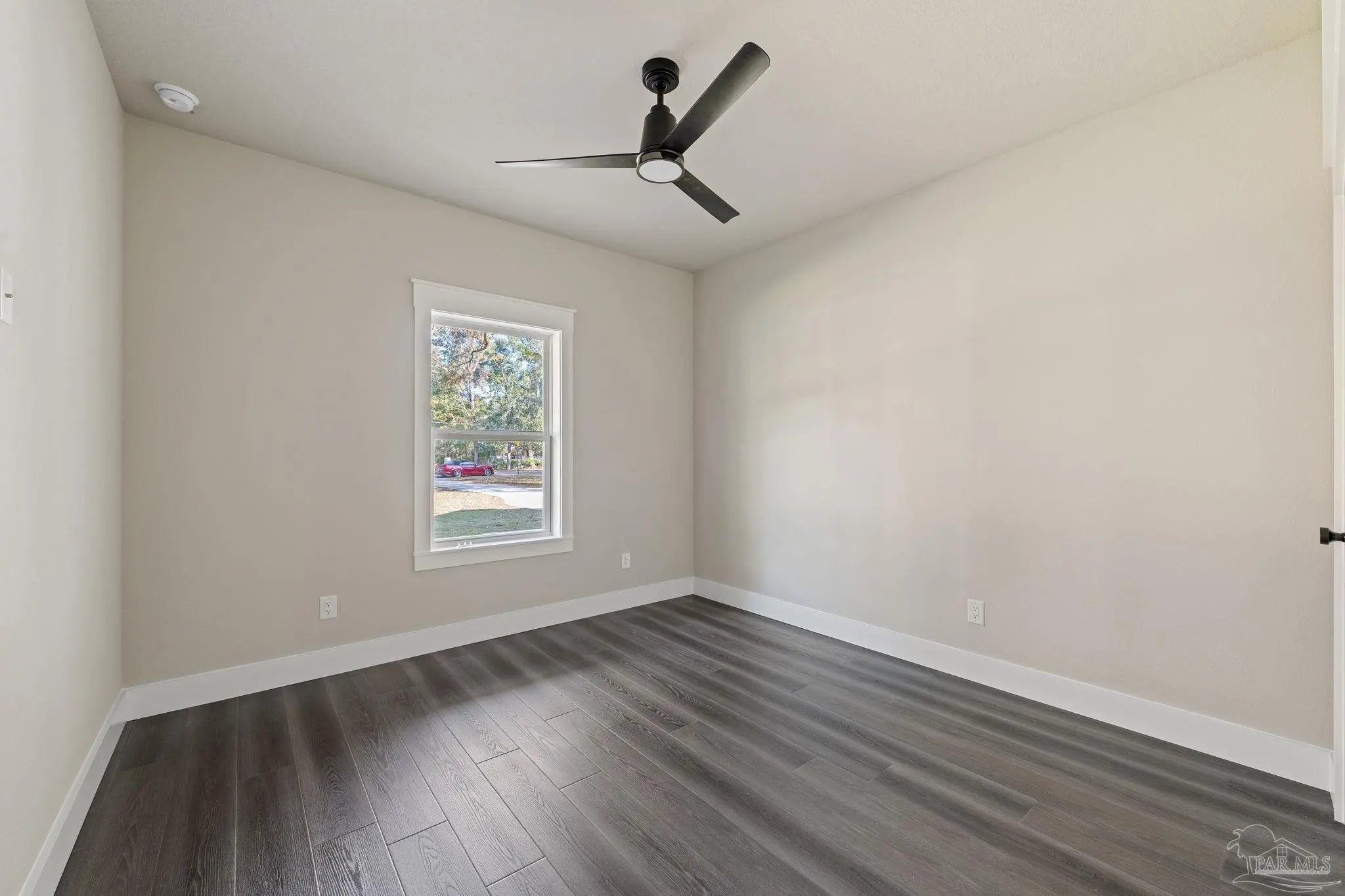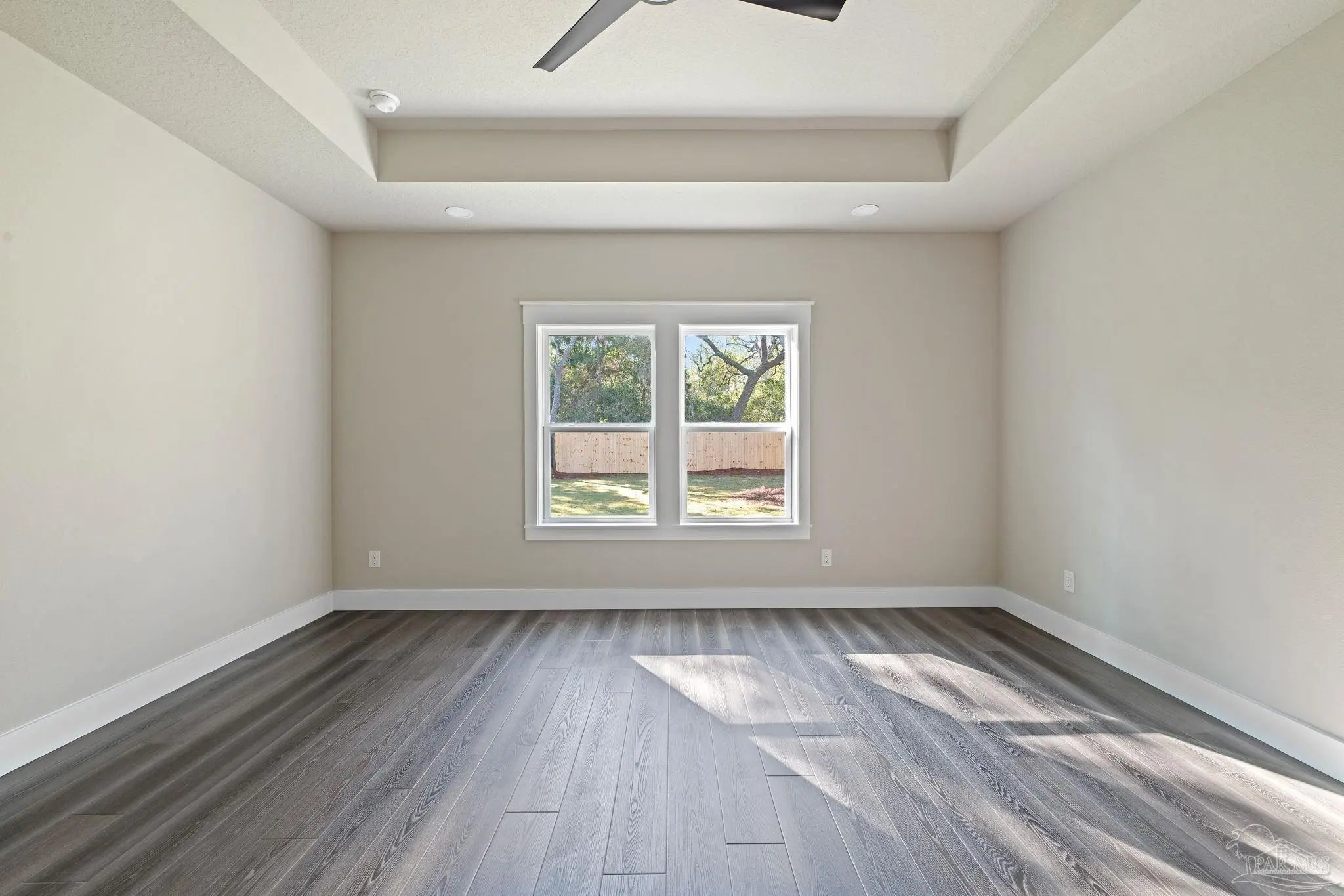 Set on a shaded street across from the bay, this custom-built 3-bedroom, 2-bath home offers an ideal mix of comfort and coastal charm. The open floor plan features a spacious living area centered around an electric fireplace, filled with natural light and complemented by upgraded luxury vinyl plank flooring and custom lighting throughout. The kitchen includes quartz countertops, custom cabinetry, stainless steel appliances, and a gas range. The primary suite provides a relaxing retreat with dual walk-in closets, a soaking tub, separate tiled shower, and double vanities. Two additional bedrooms and a full guest bath offer plenty of room for family or visitors. A large laundry room with built-in cabinetry and desk space adds functionality, while the oversized two-car garage provides ample storage. Outside, the home features a covered front porch and a covered back patio overlooking a fenced backyard with upgraded Zoysia grass and plenty of space to add a pool. Ideally located near shopping, dining, and the area’s sugar-white beaches, this home combines thoughtful design with the best of Gulf Breeze living.