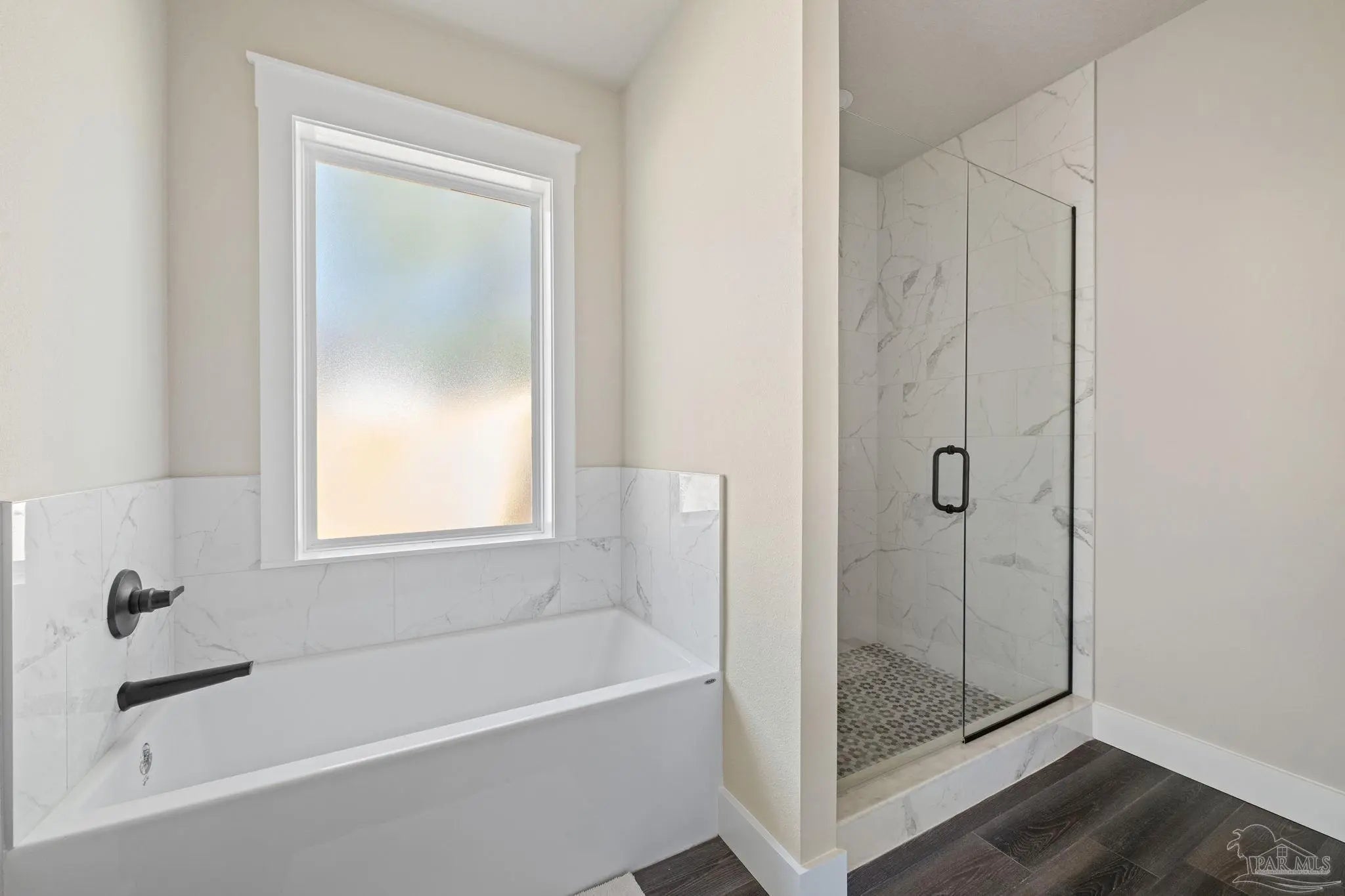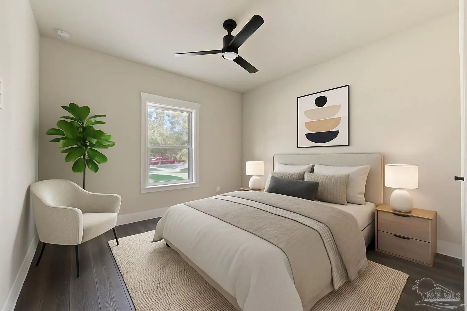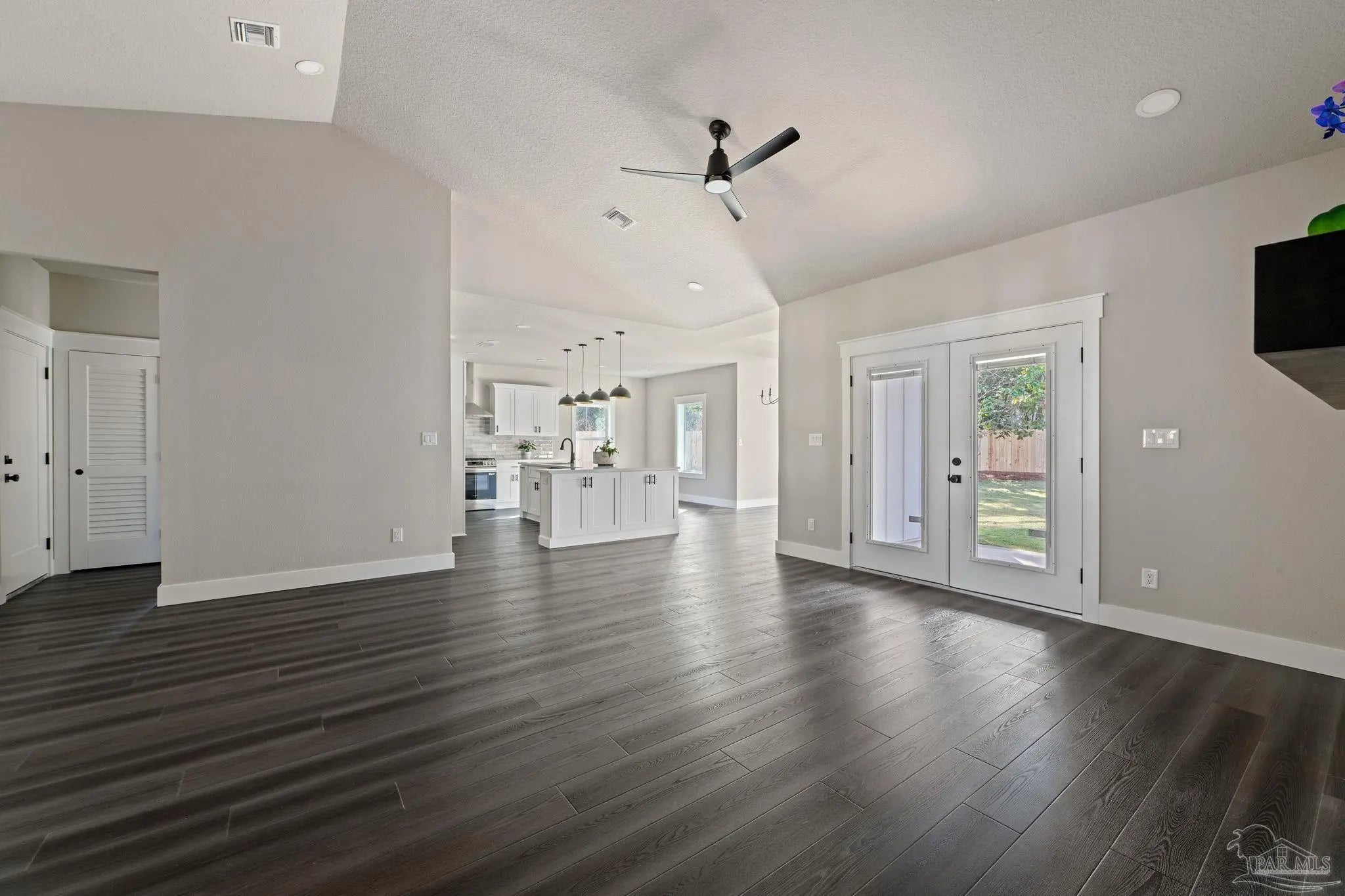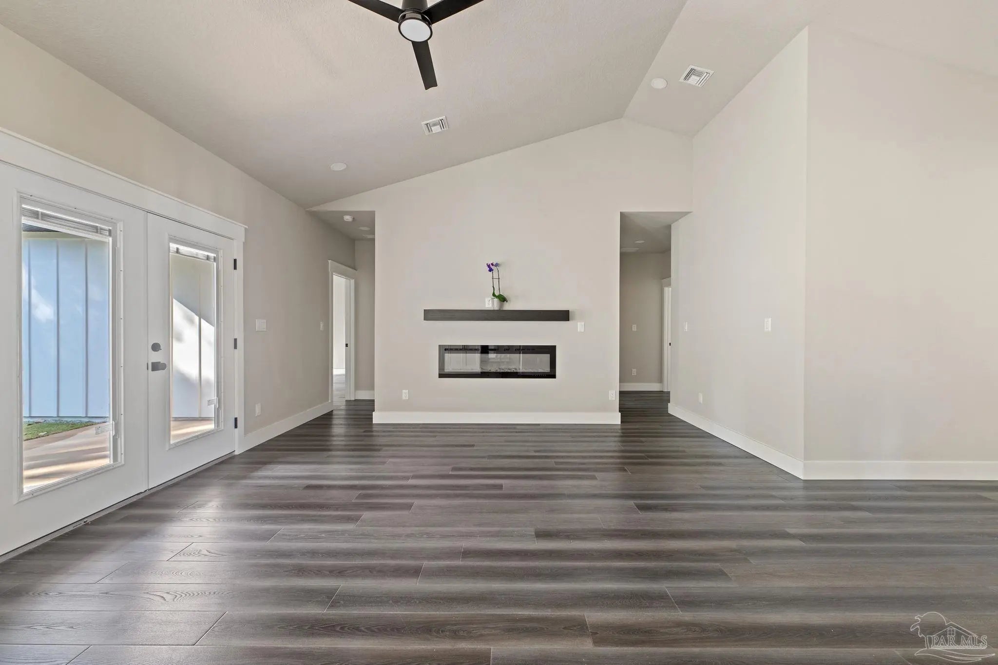 Set on a shaded street across from the bay, this custom-built 3-bedroom, 2-bath home offers an ideal mix of comfort and coastal charm. The open floor plan features a spacious living area centered around an electric fireplace, filled with natural light and complemented by upgraded luxury vinyl plank flooring and custom lighting throughout. The kitchen includes quartz countertops, custom cabinetry, stainless steel appliances, and a gas range. The primary suite provides a relaxing retreat with dual walk-in closets, a soaking tub, separate tiled shower, and double vanities. Two additional bedrooms and a full guest bath offer plenty of room for family or visitors. A large laundry room with built-in cabinetry and desk space adds functionality, while the oversized two-car garage provides ample storage. Outside, the home features a covered front porch and a covered back patio overlooking a fenced backyard with upgraded Zoysia grass and plenty of space to add a pool. Ideally located near shopping, dining, and the area’s sugar-white beaches, this home combines thoughtful design with the best of Gulf Breeze living.