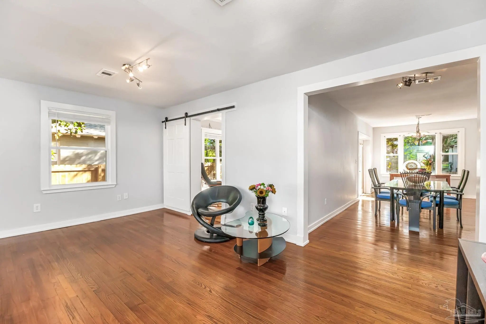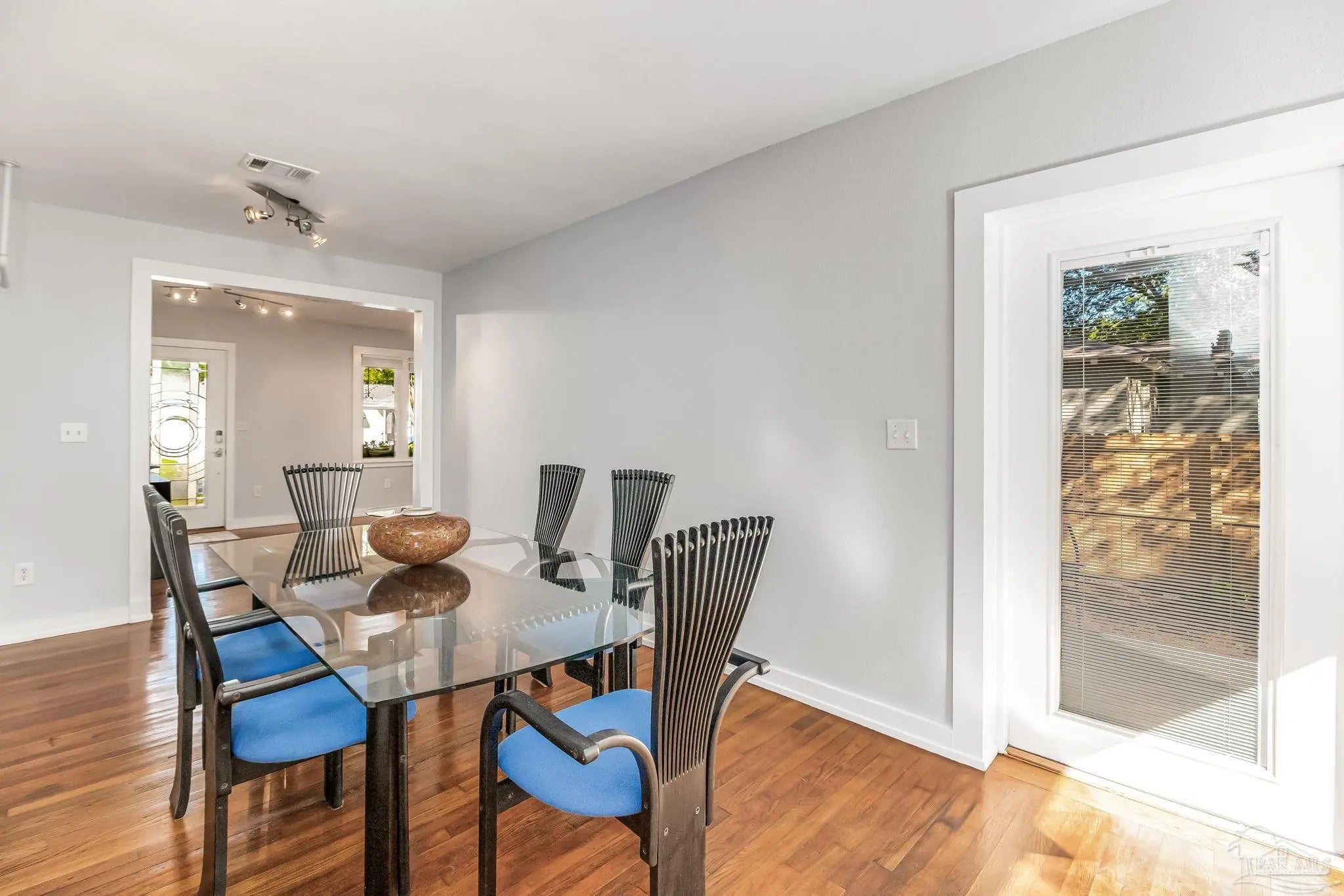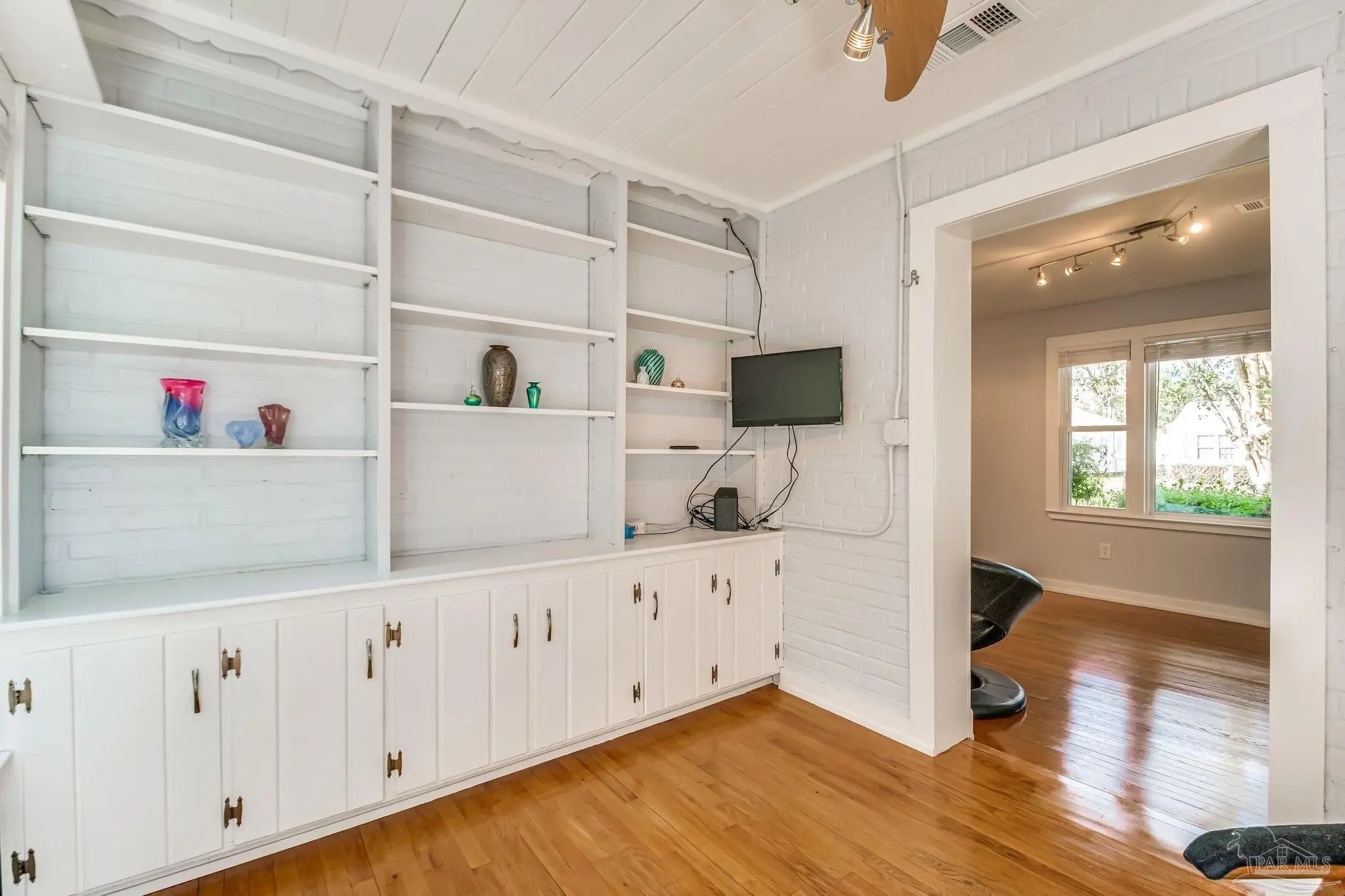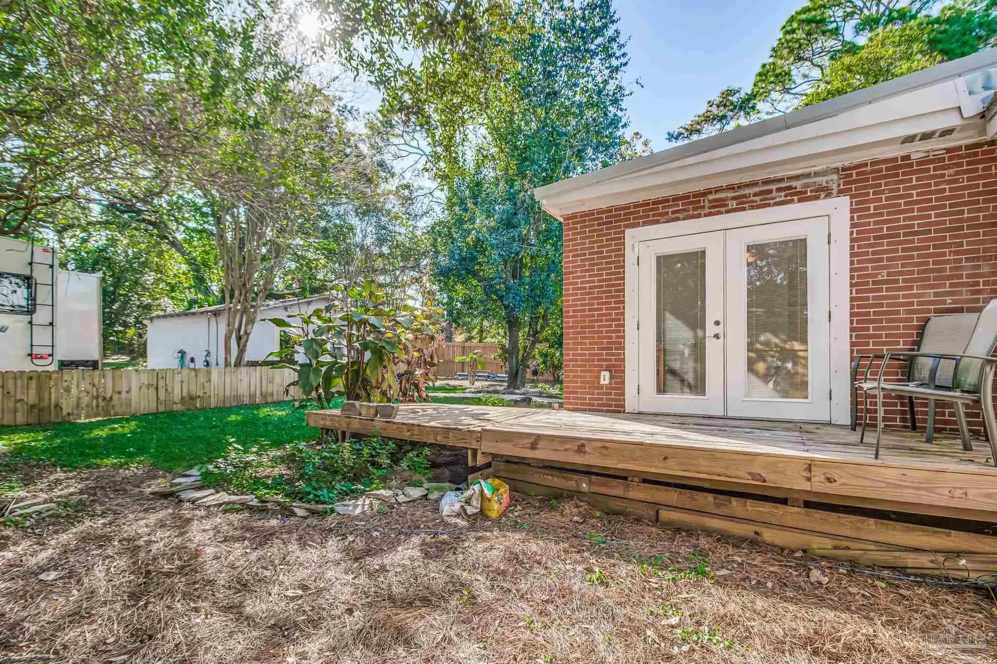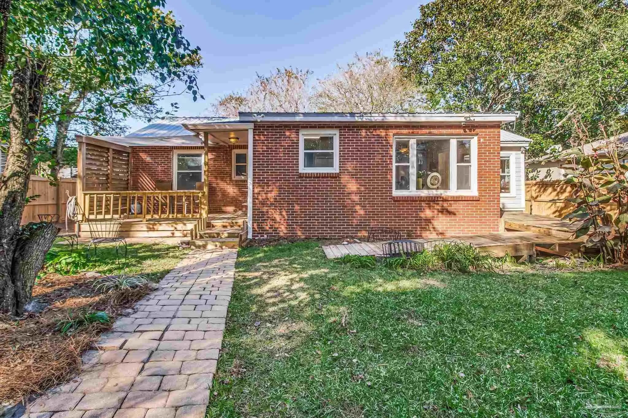 Located just minutes from downtown Pensacola, this charming all-brick home features beautifully refinished original hardwood floors and a bright, open layout. Enjoy generous living, dining, and kitchen spaces perfect for everyday life or entertaining. Just off the main living area is a dedicated office that could serve as a third bedroom, complete with built-in bookshelves and multiple windows overlooking the backyard. The spacious primary suite offers a walk-in closet and abundant natural light from numerous windows. French doors open to a back patio overlooking the privacy-fenced yard with mature landscaping, and a second deck off the kitchen provides another inviting outdoor space. The detached two-car garage sits at the rear of the property and can be accessed through the back alley. Next to the garage, there is ample space to park a boat, RV, or additional vehicles, offering excellent flexibility and convenience. The garage also includes a conditioned storage room for year-round use. Call today to schedule your personal tour of this beautiful home.