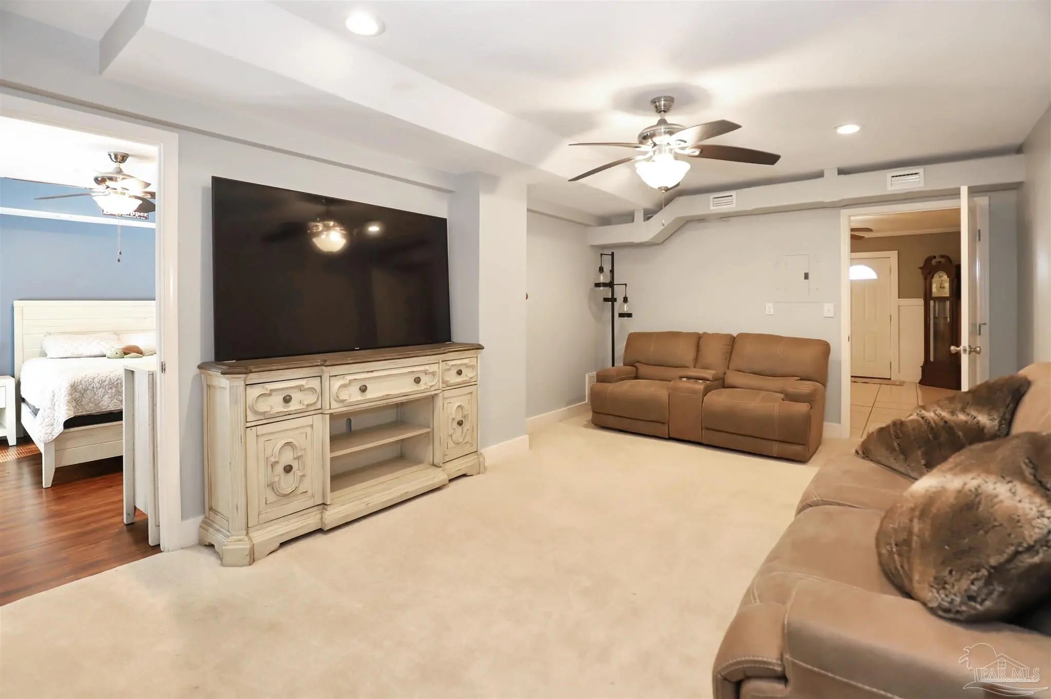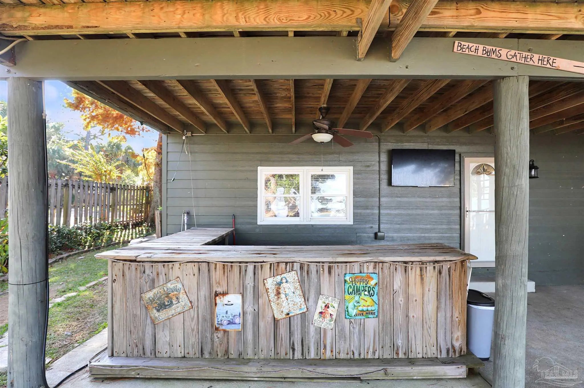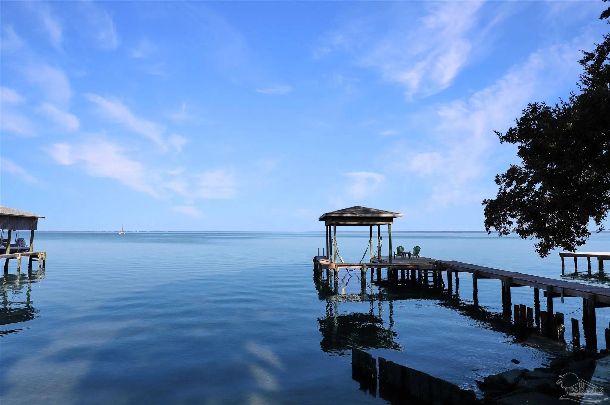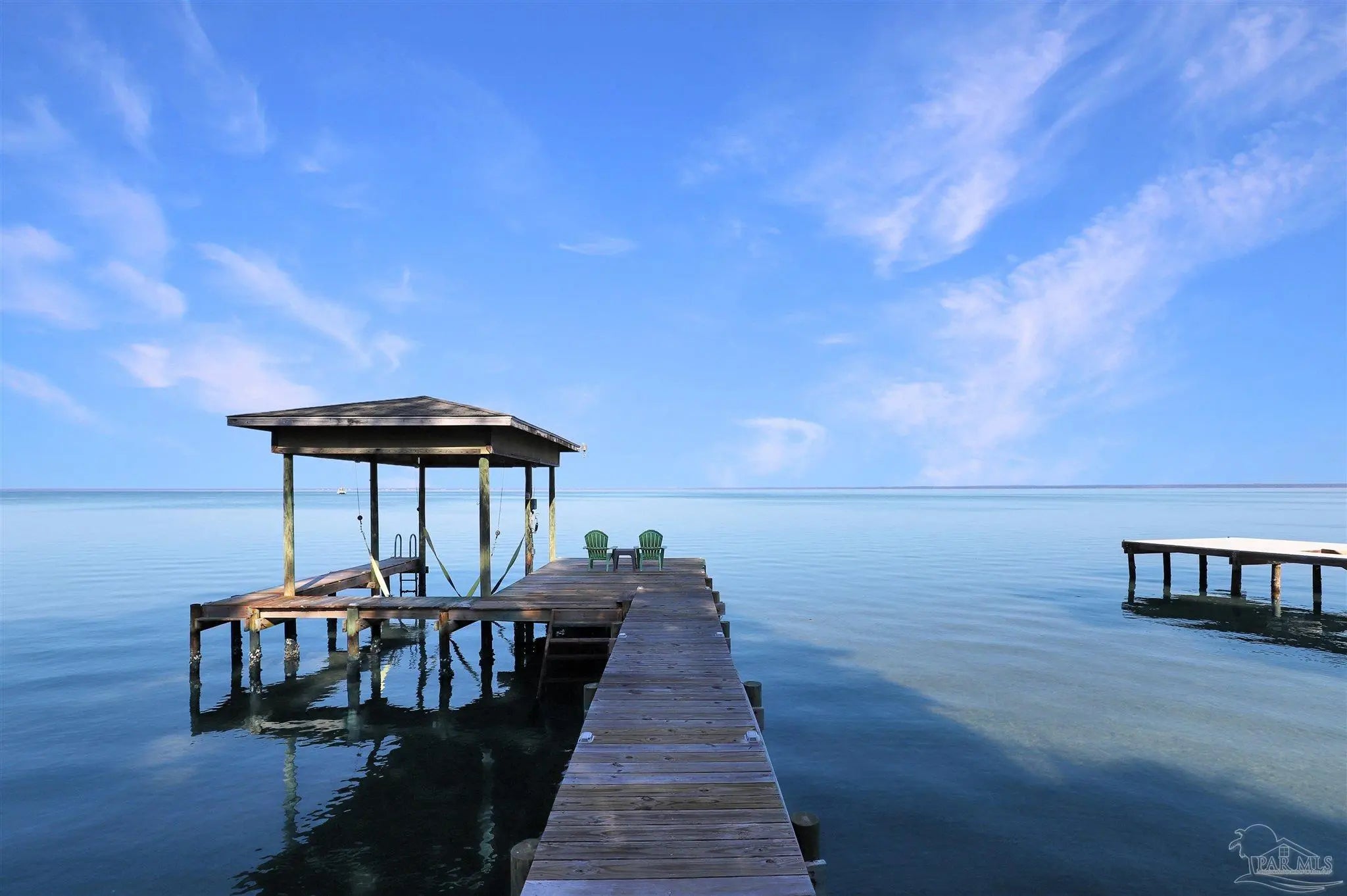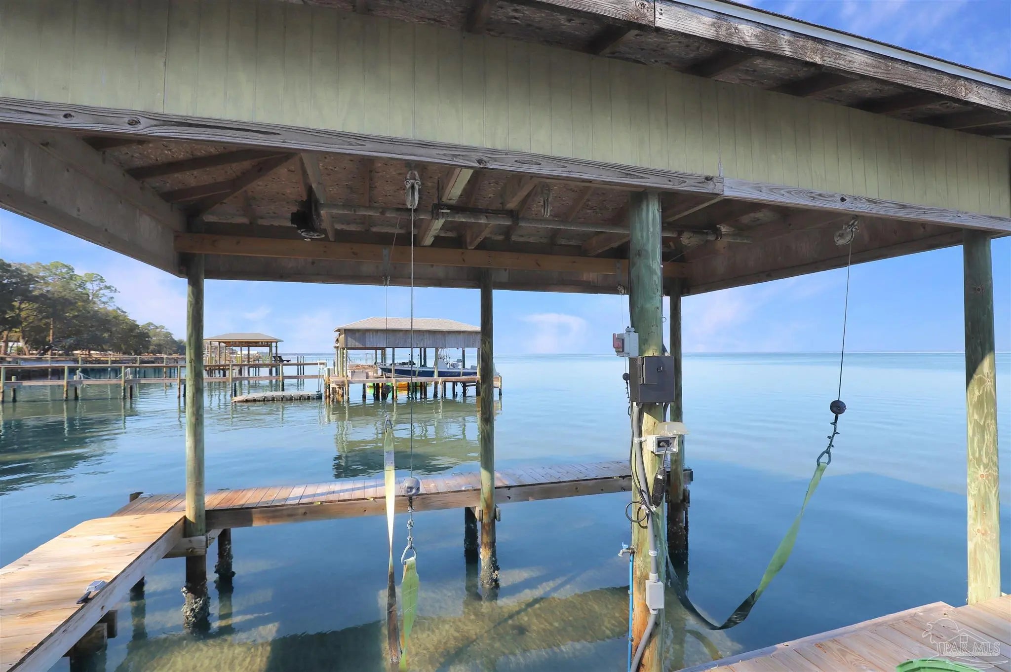 Let’s start outside, because that’s where this home truly shines. As you come through the electric gate, the property opens up in front of you — plenty of space for cars, projects, and storage with a 22x52 detached garage/workshop, an additional carport, and a separate shed, grapefruit and satsuma trees. But the water pulls you forward. You’ve got 83 feet directly on Escambia Bay, with a seawall in excellent condition, a wood walkway, metal corrugated wall, and rip rap for peace of mind. A decorative metal fence runs the length of the waterfront, complete with a pedestrian gate that leads to your private dock and boat lift — water, power, and a new 6,000-lb lift ready for an 18-ft boat. The dolphins, reds, trout, mullet, sheepshead, and blue crabs show up regularly, like neighbors popping by to say hello. Sunrises and sunsets bookend each day with color. Up on the main level, the screened porch stretches an unbelievable 48 feet — and the open porch mirrors it, giving you two different ways to take in the bay. Mornings with coffee, evenings with friends, quiet time with a book. Down on the lower level, there’s another covered outdoor space right at the waterline, perfect for grilling or hosting without ever leaving the breeze. Inside, the home is set up for flexibility. Two full bedrooms and two baths on each level make it easy for multi-generational living, guests, or simply extra privacy. Both floors have their own living room, kitchen, and laundry. On the main level, the open layout brings the kitchen, dining, and living together — simple, comfortable, and perfect for everyday living. The sellers added extra pantry cabinetry, shelving, and a utility sink & fresh interior paint to keep everything feeling clean and bright. Whether you're coming home from a day on the boat, hosting weekend guests, or settling in to watch the sky change over the bay, this property makes it easy to live on the water and with it. HVACs: 2017/19 Water heaters: 2024/25 Roof: 2022