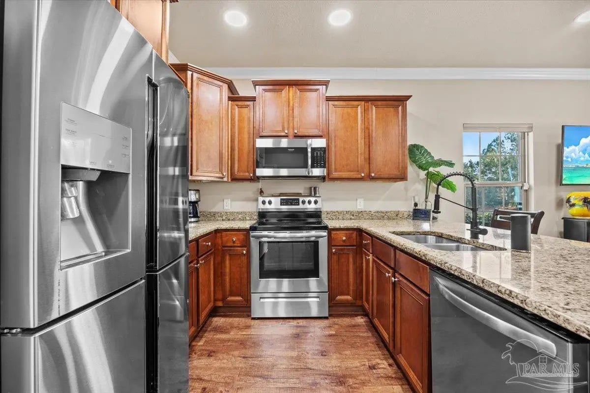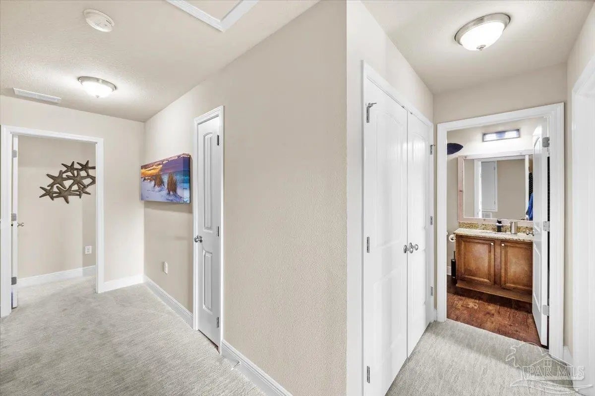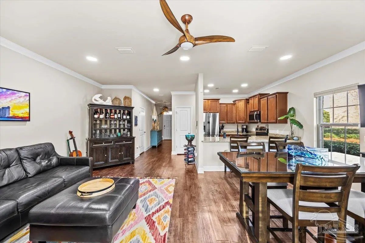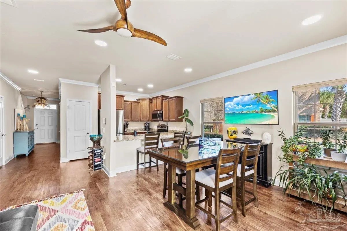 Stylish End Unit in Reserve Pointe – Built in 2018! Discover this beautifully maintained 3-bedroom, 2.5-bath townhome in the newest section of the sought-after Reserve Pointe community in Navarre. As a desirable end unit, this home offers additional privacy, abundant natural light, and modern design throughout. The open-concept living area features updated light fixtures, contemporary faucets, crown molding, and thoughtfully chosen finishes that create a bright, inviting atmosphere. The primary suite has a custom closet done by Closets by Design. The bathrooms have been enhanced with elegant custom vanity mirrors and tasteful upgrades that reflect quality and attention to detail. Enjoy the comfort of custom window treatments, including room-darkening shades in each bedroom—perfect for peaceful rest. The spacious primary suite includes a walk-in closet and en suite bath, while two additional bedrooms provide flexibility for family, guests, or a home office. Built in 2018, this residence is part of the community’s newest phase, offering a fresh, modern feel with low-maintenance living. Reserve Pointe features a community pool, playground, and convenient access to shopping, dining, and top-rated schools. In very close proximity to the sugar-white sands and emerald-green waters of Navarre Beach, this home blends coastal charm with everyday convenience—ideal for full-time living or a lock-and-leave lifestyle. Call today for a private showing!