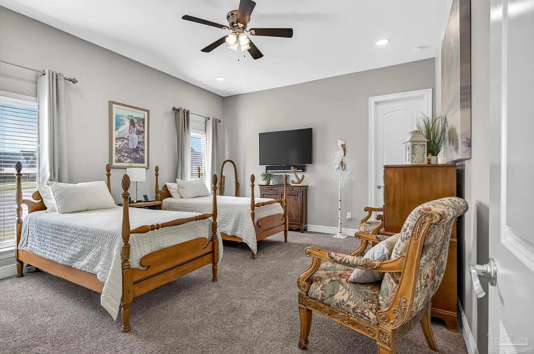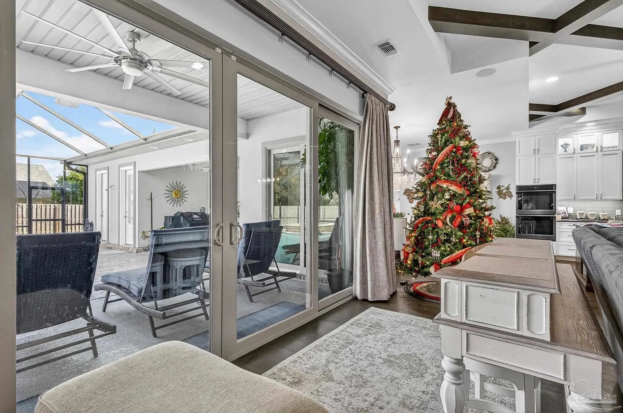 Welcome to this stunning 2017 custom-built residence, crafted with superior construction and high-end finishes throughout. Designed with durability and efficiency in mind, this home features 2x6 exterior walls, ½” OSB plywood, and 6” spray-foam insulation, paired with impact-rated windows and doors for exceptional strength and energy performance. Step inside to soaring 10–11 ft ceilings, 8’ interior doors, and an open, elegant layout filled with natural light. This true Smart Home offers premium convenience with built-in surround-sound speakers in the main living area and the primary suite—including the bathroom—fully operated by the Control4 app from your phone or iPad. Enjoy additional luxury touches such as custom motorized blackout drapes in the main living area and primary bedroom. Outside, your private oasis awaits. The backyard showcases a beautiful gunite swimming pool with a spill-over hot tub, heated by gas and controlled by the newly installed automated OmniLogic pool system. Perfect for entertaining or unwinding at home. Additional upgrades include: • Whole-house generator for peace of mind • Newly upgraded automated pool equipment • High ceilings, thoughtful design, and quality craftsmanship throughout. This home blends luxury, technology, and comfort—offering a rare opportunity to own a truly custom, high-performance property.