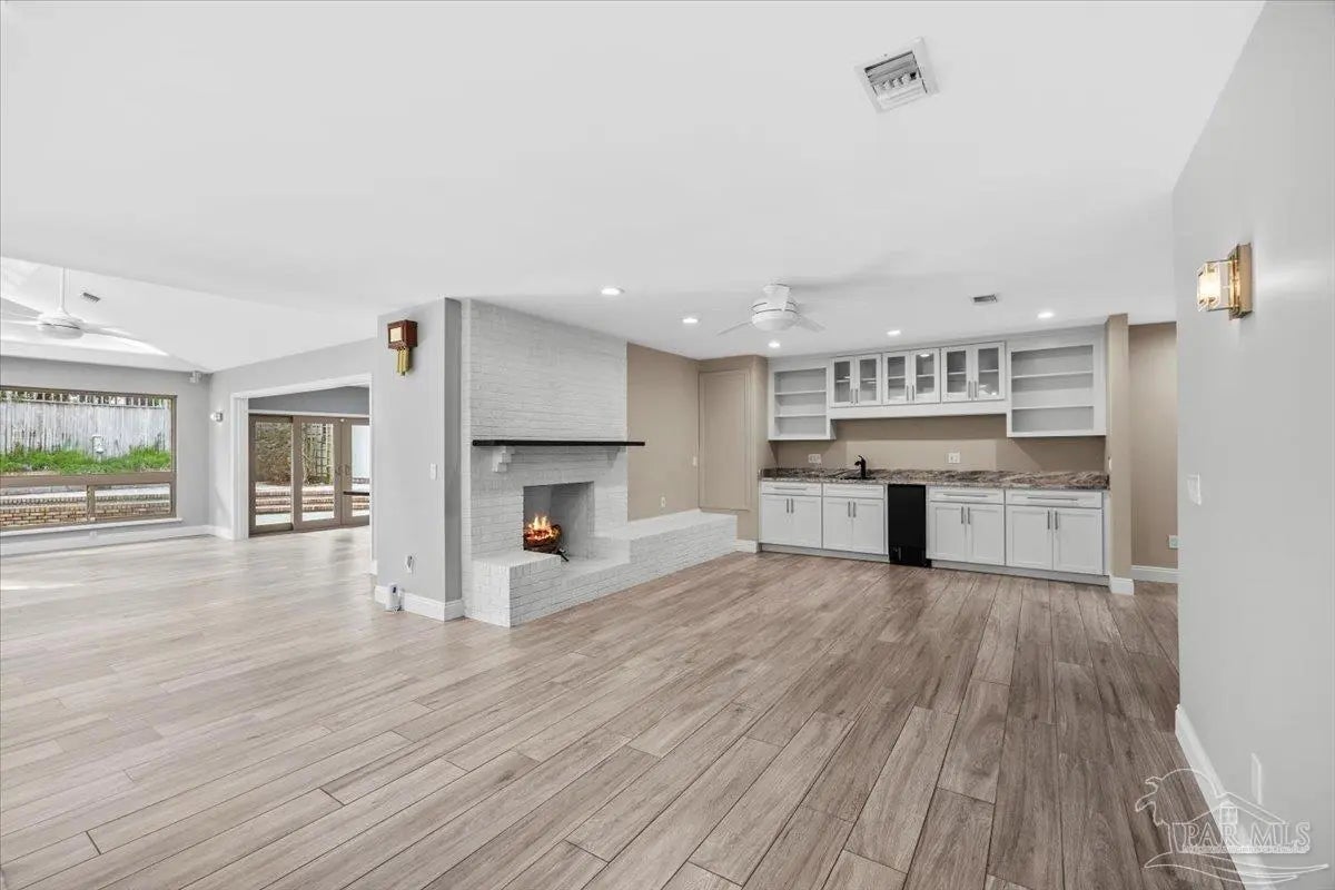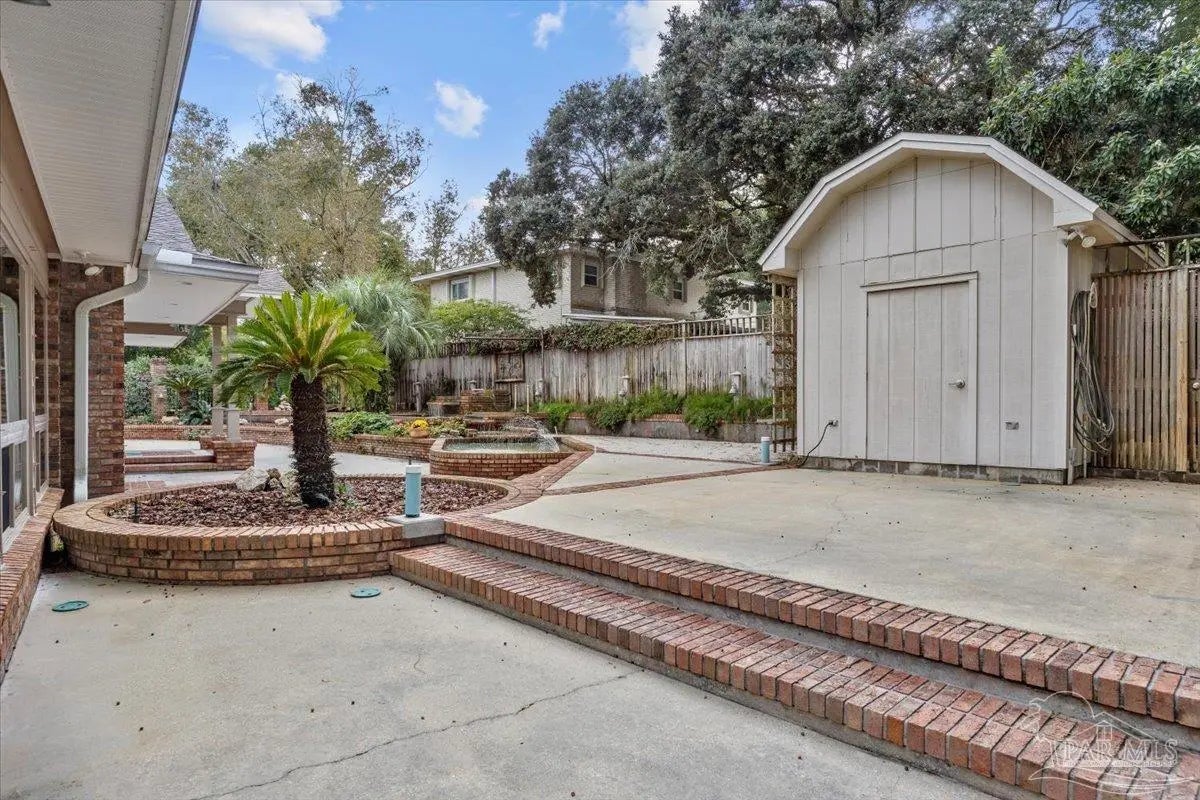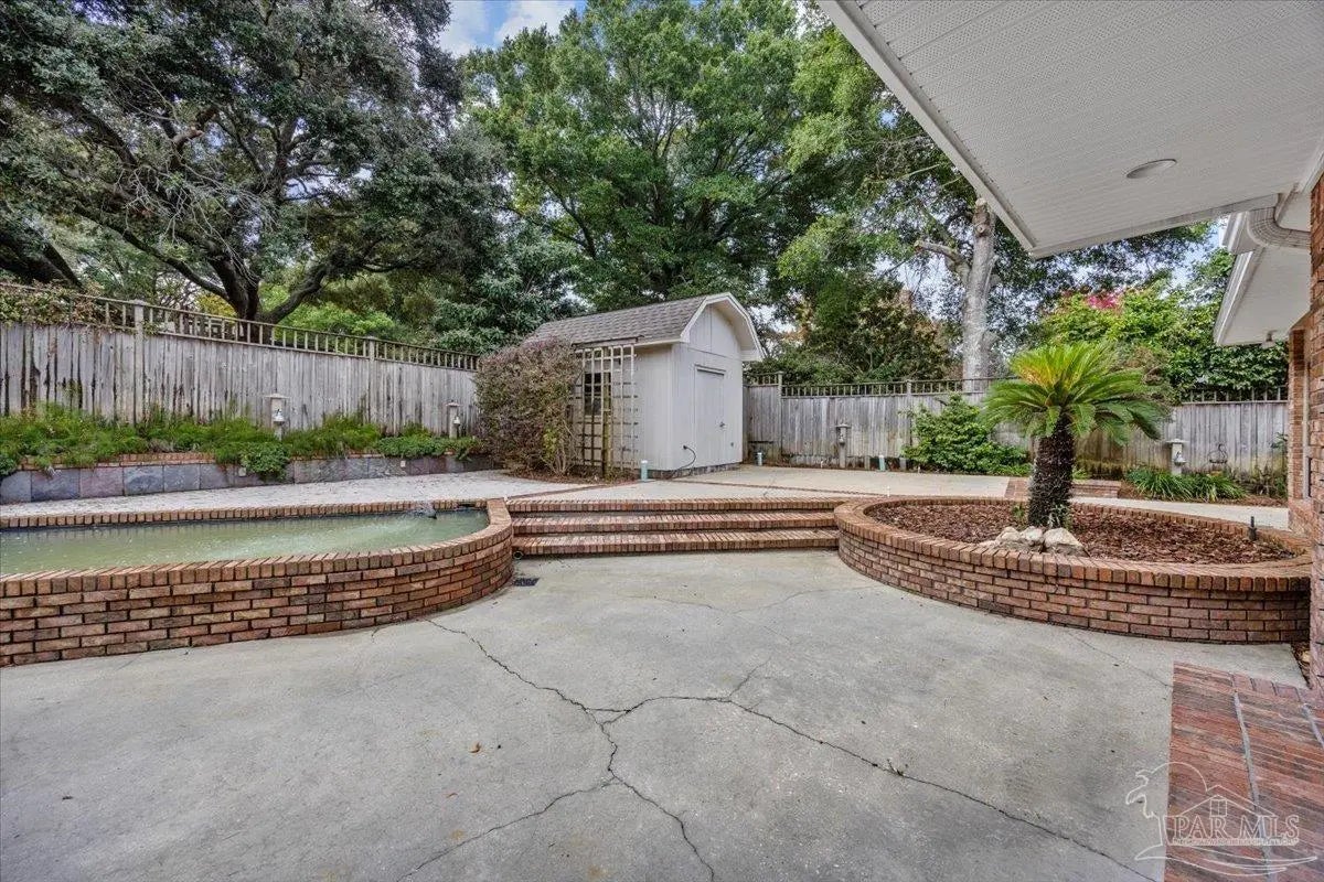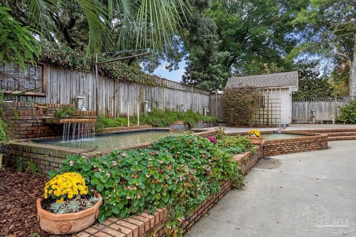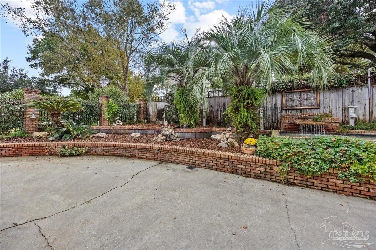Of Special Note – The Remodeling was Completed in 2021 by the current owner. The effective age is 2012. With a Soaring Ceiling Great room surrounded by a bank of windows and skylights - This Unique residence sits on a manicured corner lot with a side entry oversized driveway. Windows extend across the entire house with Courtyard views. Brick Pillars with wrought Iron inserts open into a New Orleans style concrete courtyard featuring custom inlayed brickwork and a tri-level water fall/koi pond with drainage system. Multiple seating areas. A wired workshop and a detached Artists studio are cleverly incorporated into the courtyard with connecting sidewalks throughout. Detached Artists studio has sliding glass doors, a separate electrical panel, shelving, heater and window wall unit. Roof and Skylights installed 2021, HVAC 2019, Mini split in sitting room 2021, gas water heaters. High Velocity, hurricane zone (HVHZ) windows 2021. Smooth ceilings 2021. The irrigation well and pump are commercial grade. Glass front kitchen and bar cabinets. Unique Leather Granite Kitchen counters. Kitchen and bar appliances installed 2021 - includes stainless steel hood vent, wine cooler and ice maker at wet bar, and 2nd water heater. Enclosed outdoor shower behind half bath. Vinyl soffits, guttering, and Hurricane protection. Golf Cart Legal Road. Plank style tiles and exposed painted brick walls throughout the home. Sitting room has etched glass French doors and skylights, 2 separate openings to courtyard – perfect for outdoor receptions. Study has French doors that open to a sleeping room. Utility room includes recessed pantry, storage closet, enclosed sink and appliance compartment, large water heater. Rear door opens to the outdoor shower. Alarm system is inactive, ask for details. The Garage has space for a workshop and includes a portable work bench, 2 garage openers, hanging shelves, pull down attic storage and floor to ceiling windows to complement the exterior.