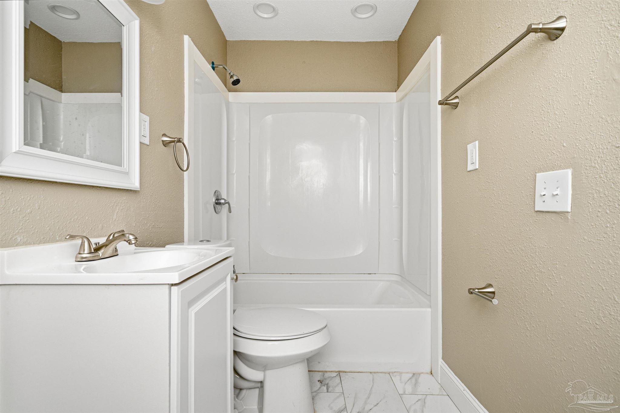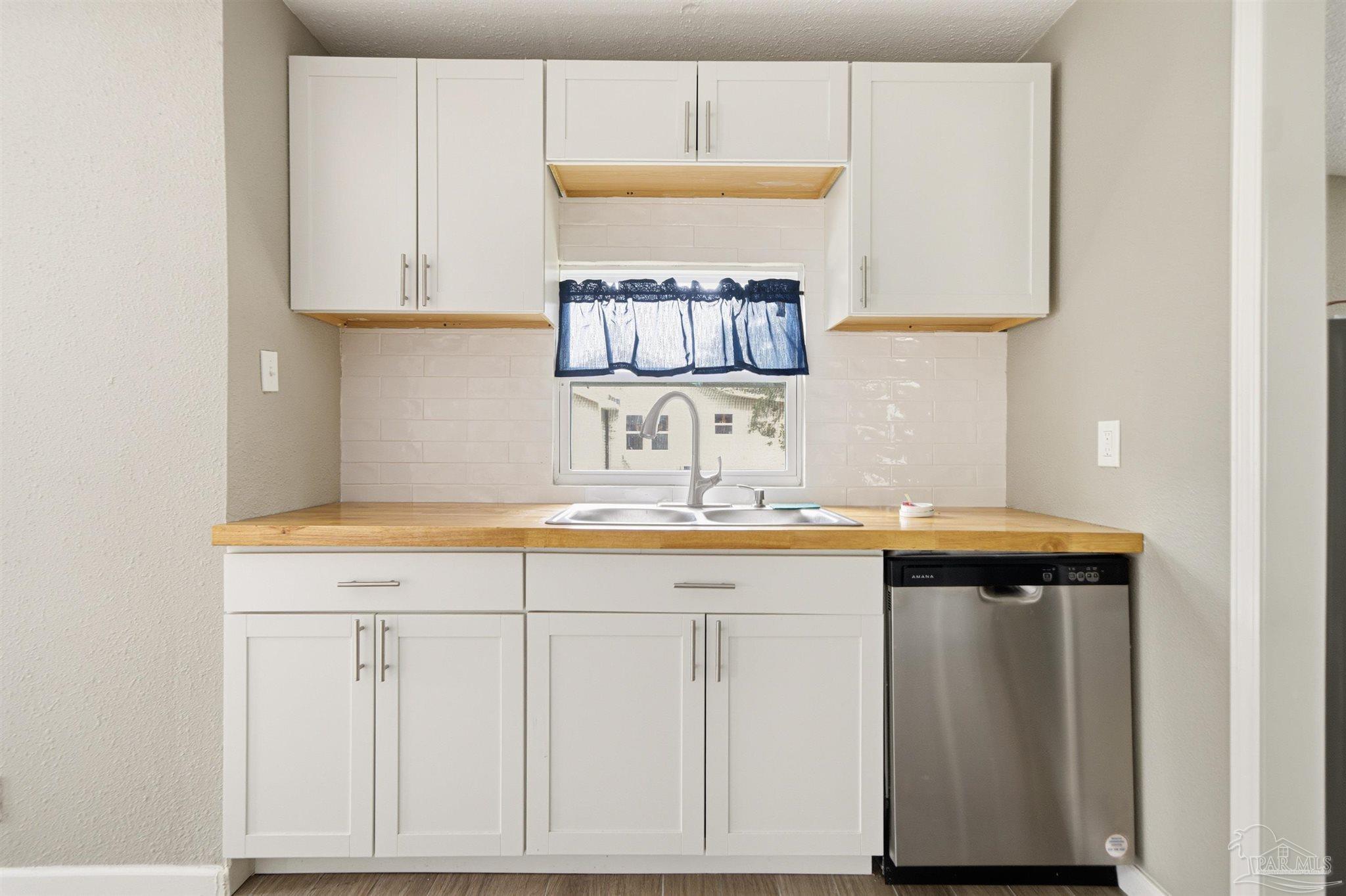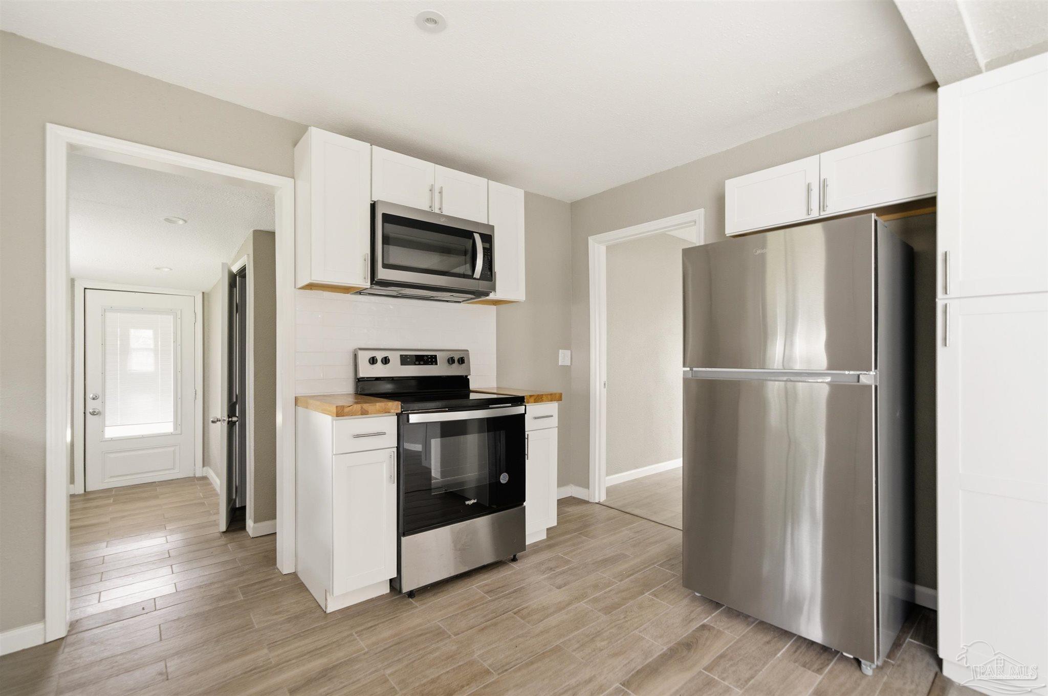 206 S 2nd Street is a charming 3 bedroom, 2 bath Pensacola cottage offering 1,040 square feet of bright, inviting living space. The home features sunny interiors with LVP flooring, modern ceiling fans throughout, and a unique circular window in the bedroom that adds architectural interest. The all-white kitchen blends classic and modern style with shaker cabinetry, butcher block countertops, white subway tile backsplash, and stainless steel appliances. The bathroom includes marble-look tile for an elevated feel. Outside, enjoy a beautiful yard shaded by mature trees and plenty of room to relax or garden, along with a covered back patio that extends your living area outdoors. The location offers easy access to everyday essentials and major corridors. Situated just off Navy Blvd, you’re close to grocery stores, restaurants, and daily conveniences, as well as quick routes to downtown Pensacola, NAS Pensacola, and local beaches. A great spot for anyone seeking comfort and convenience without sacrificing charm. Schedule your private showing today!