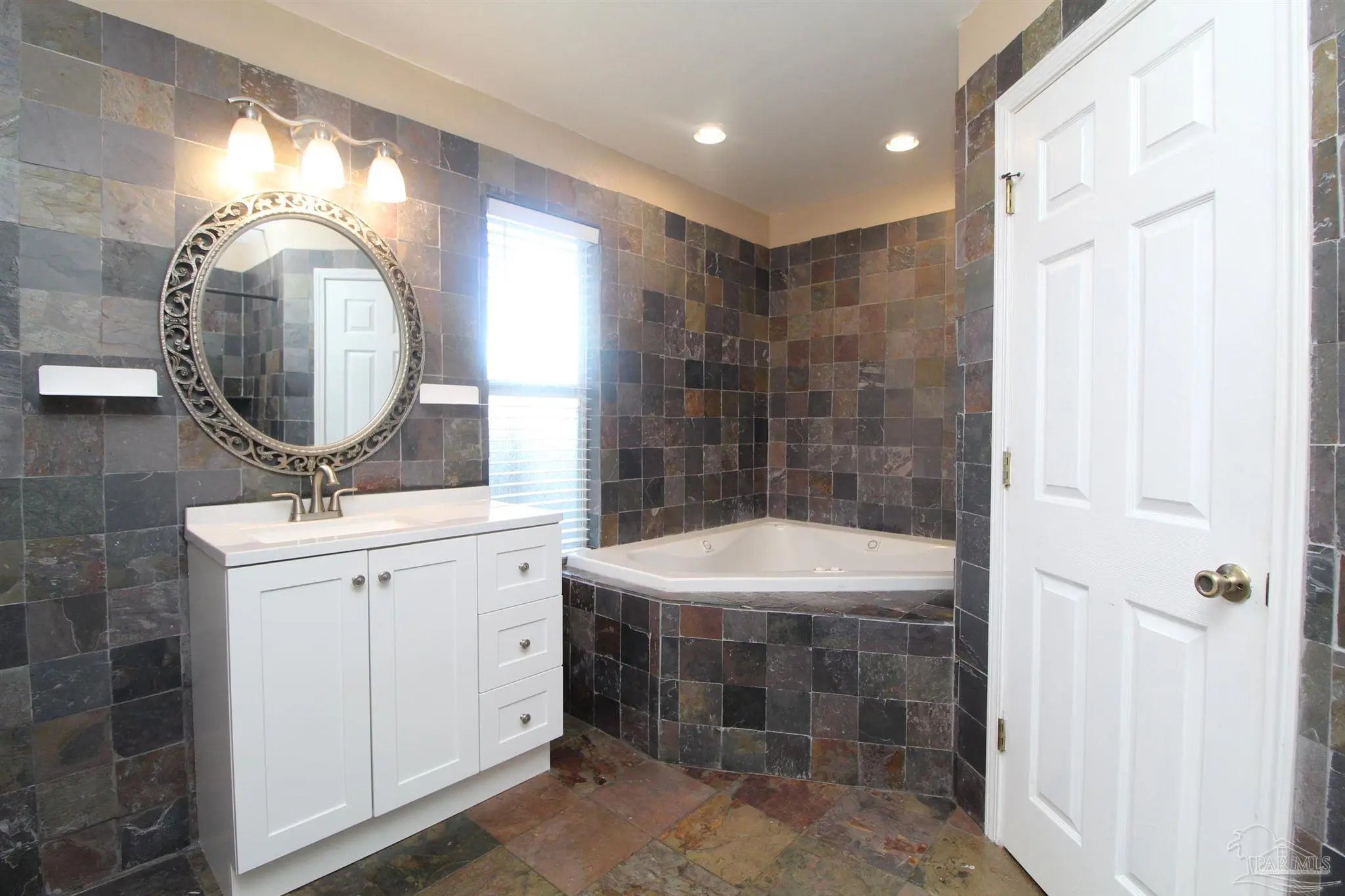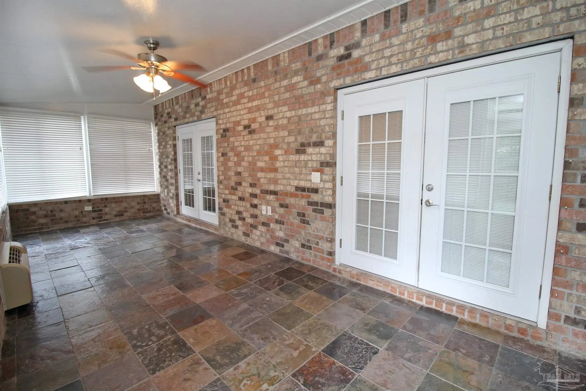 This 3-bedroom, 2-bathroom brick home in Holsberry Estates off 9 Mile Rd is conveniently located near I-10, shopping, dining, and more! Offering nearly 1,800 sq. ft. of living space, the home features wood-look flooring throughout and a heated and cooled sunroom with tile flooring. Vaulted ceilings enhance the living areas, which include a great room, an eat-in kitchen, and a versatile dining area that can also serve as a family room. The kitchen is equipped with stainless steel appliances, a pantry, breakfast bar, and breakfast nook. The primary bedroom features a vaulted ceiling, French doors leading to the sunroom, and a private bathroom with a jetted garden tub, tiled shower, and walk-in closet. Two additional guest bedrooms share a full hall bathroom. The home also includes an indoor laundry area with hookups and a 2-car garage. Pets are considered with owner approval and a $250 non-refundable pet fee per pet (small pets under 25 lbs only). Enjoy the partially fenced backyard for outdoor living. Realty Masters residents are required to maintain renter liability insurance, which can be added for $11.95/month, or residents may opt into the Resident Benefits Package (RBP) for $45/month, which includes renter liability insurance, HVAC filter delivery, and on-demand pest control. Currently occupied—coming available 1/9. Please do not disturb the residents.