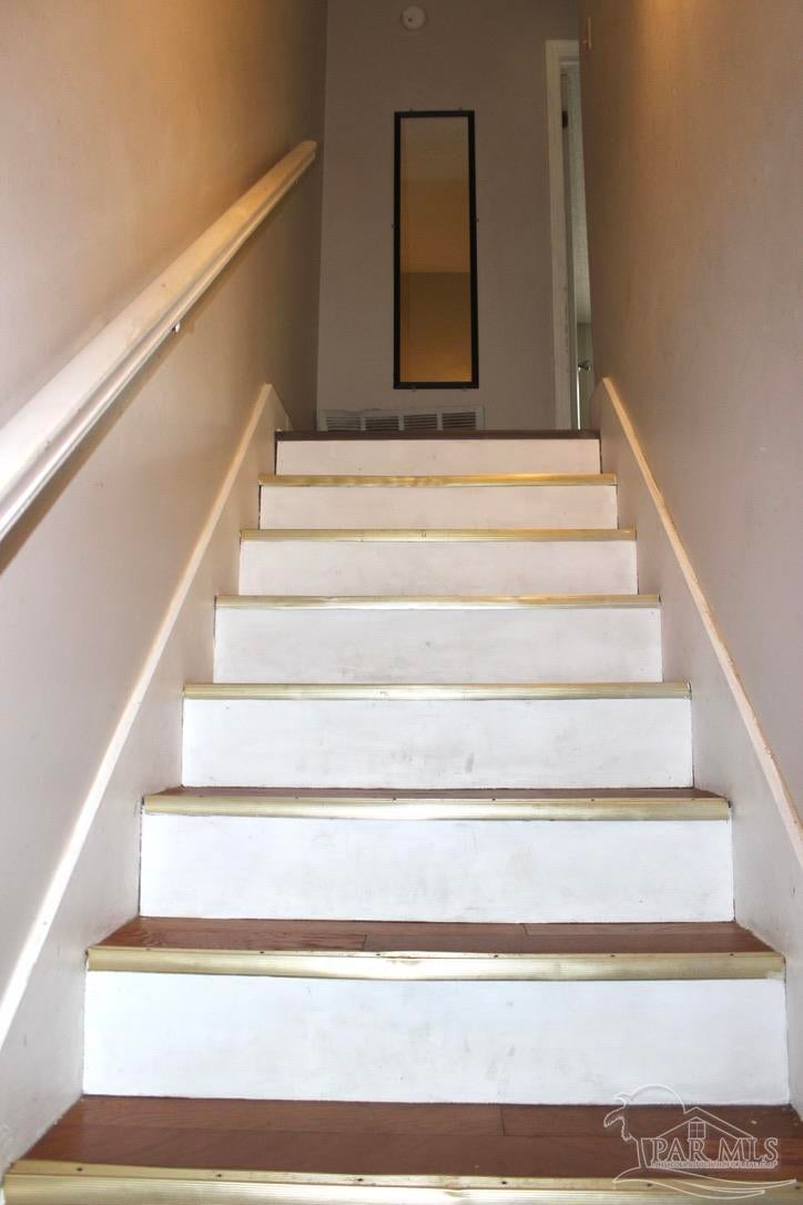 INVESTOR SPECIAL in the heart of Pensacola!! Updates include--roof (2023), water heater (2025), HVAC (2010)--leaving mostly cosmetic updates to the buyer's imagination. The end unit townhome provides a partial privacy fence in the backyard, wood floors in the living and dining spaces downstairs, plus a half bath just off the kitchen/dining area. The kitchen is complete with a refrigerator, stove, dishwasher, disposal, counter top microwave, and pass-through to the dining area. Upstairs, you'll find a landing to the two bedrooms, one of which has a private balcony deck overlooking the backyard. The full bath upstairs has a tub/shower combo and vanity. To the left of the downstairs back patio, you'll find a storage room with a washer and dryer that convey. The property and all appliances convey as-is and seller financing is not available. This property location has easy access to I-10, I-110, Davis Hwy, and Scenic Hwy, making it a prime location for commuting. Don't miss the opportunity to bring your vision and creativity to this townhome today!