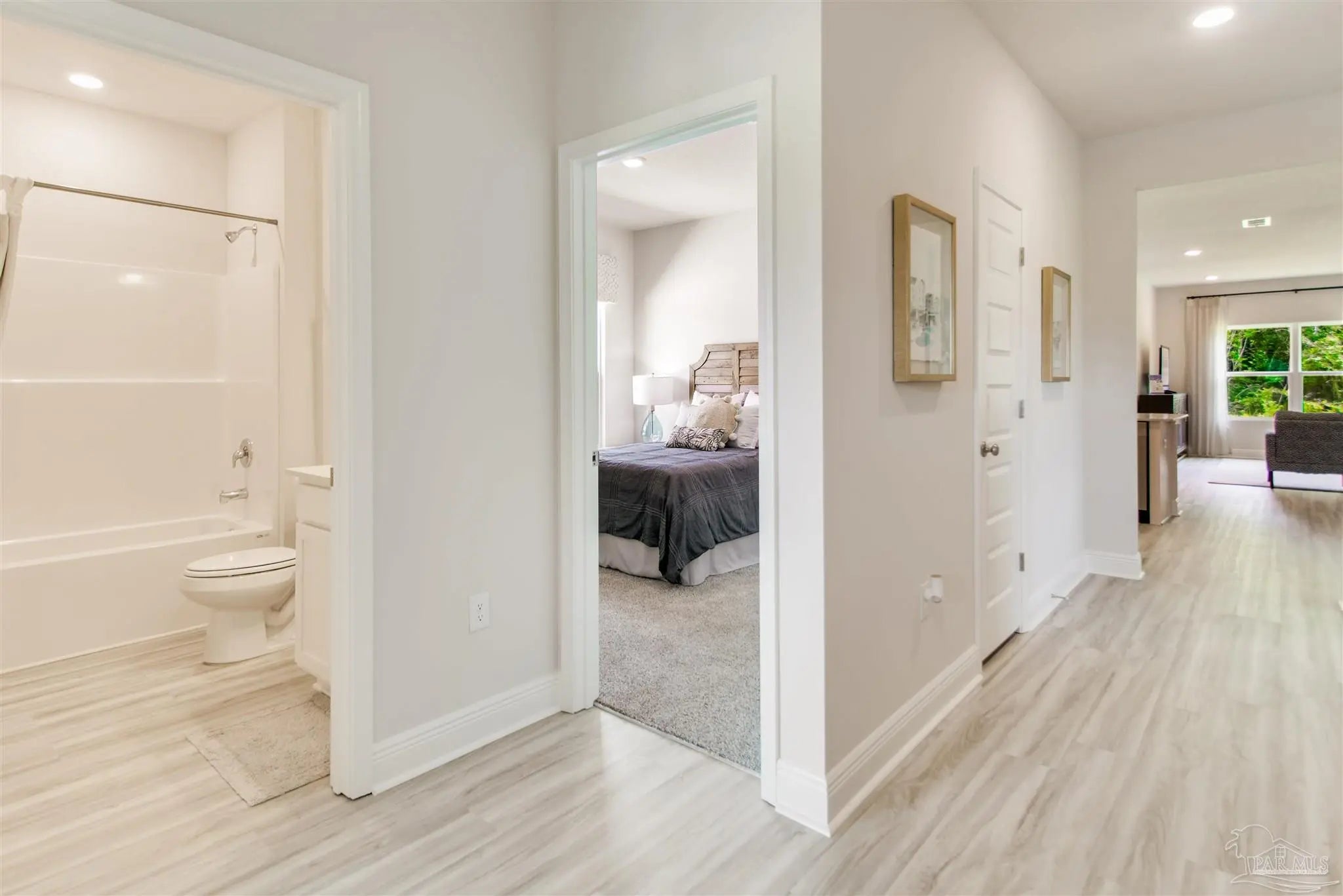 Welcome to Lakes of Woodbine! This stunning Beau plan is a remarkable 4 bedroom, 2 bath home with a two-car garage. As you step inside, you'll find three guest bedrooms, each offering plenty of closet space. Moving towards the back of the house, you'll be captivated by the welcoming open-concept kitchen and living area. The kitchen features a stylish island with quartz countertops, a spacious pantry, and sleek stainless-steel appliances. Bedroom 1 is conveniently located near the living area and boasts a luxurious bathroom and a generous walk-in closet. The home is elegantly finished with beautiful LVP flooring throughout, cozy carpeting in the bedrooms, and impressive 9 ft ceilings. Additionally, it includes a Smart Home Technology package for enhanced modern convenience. At Lakes of Woodbine, you’ll enjoy an exceptional lineup of resort-style amenities including a refreshing pool, pickleball courts, a large playground, modern clubhouse, sidewalk-lined streets, and a fitness center.