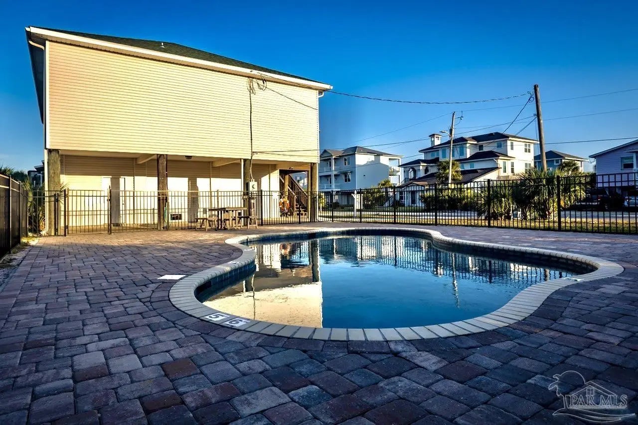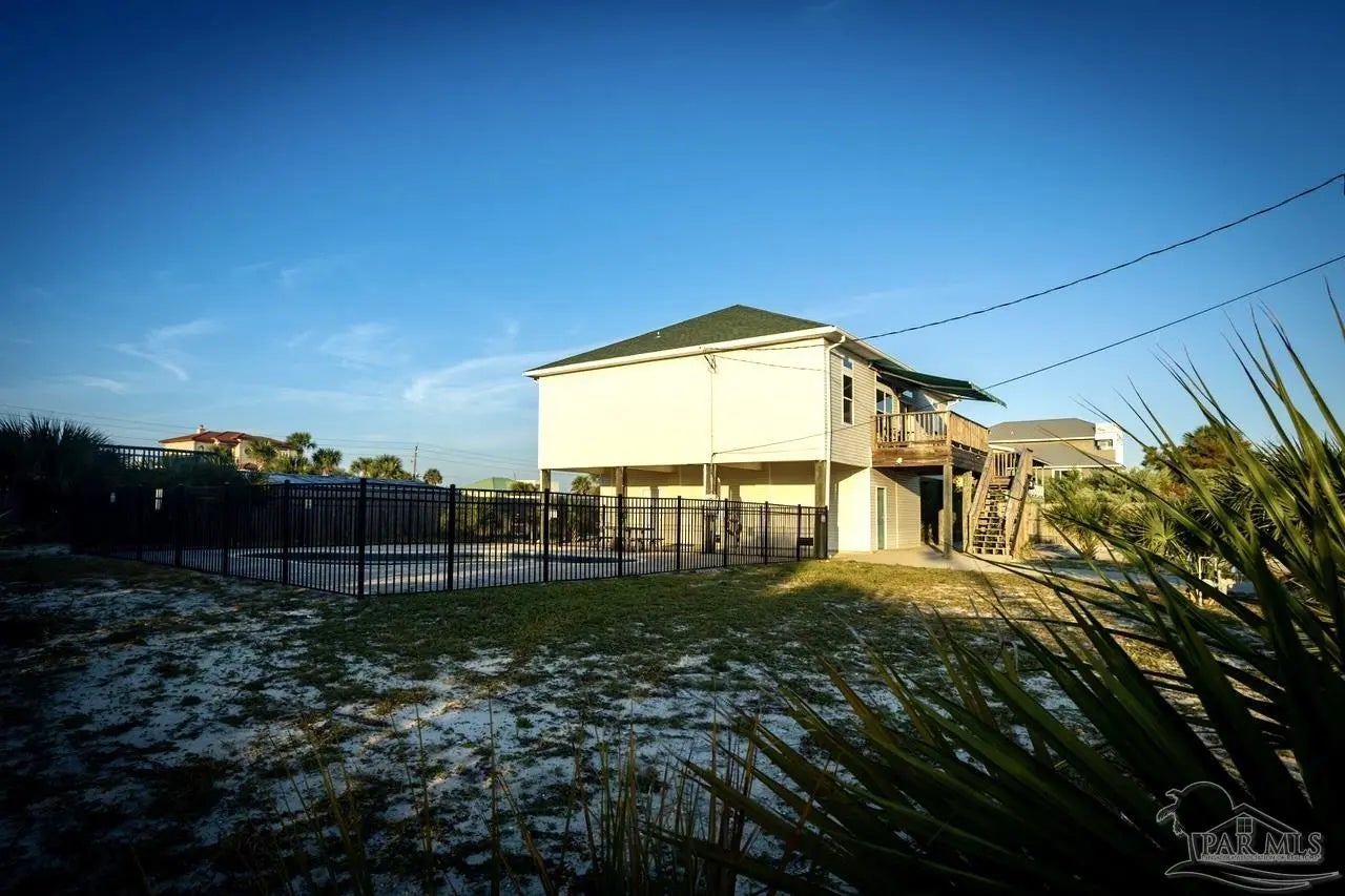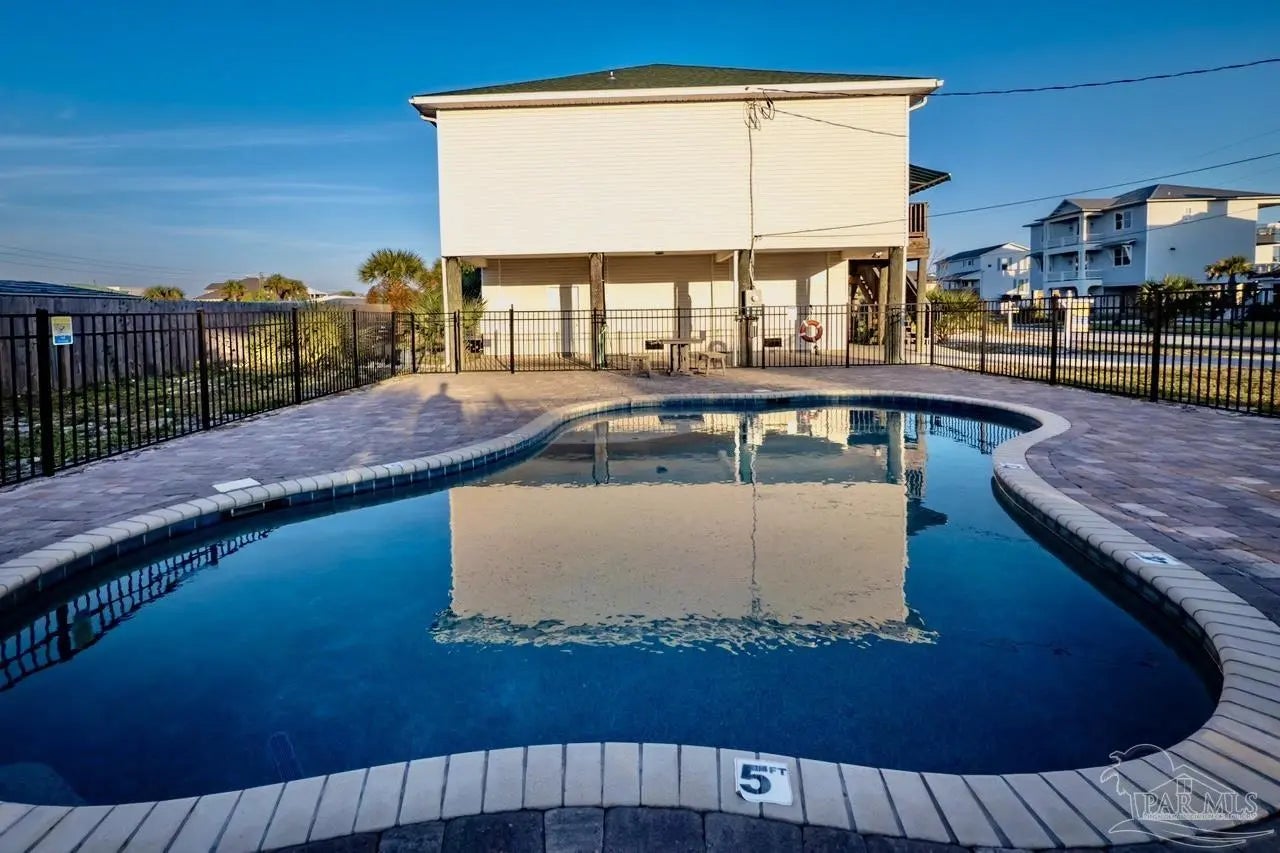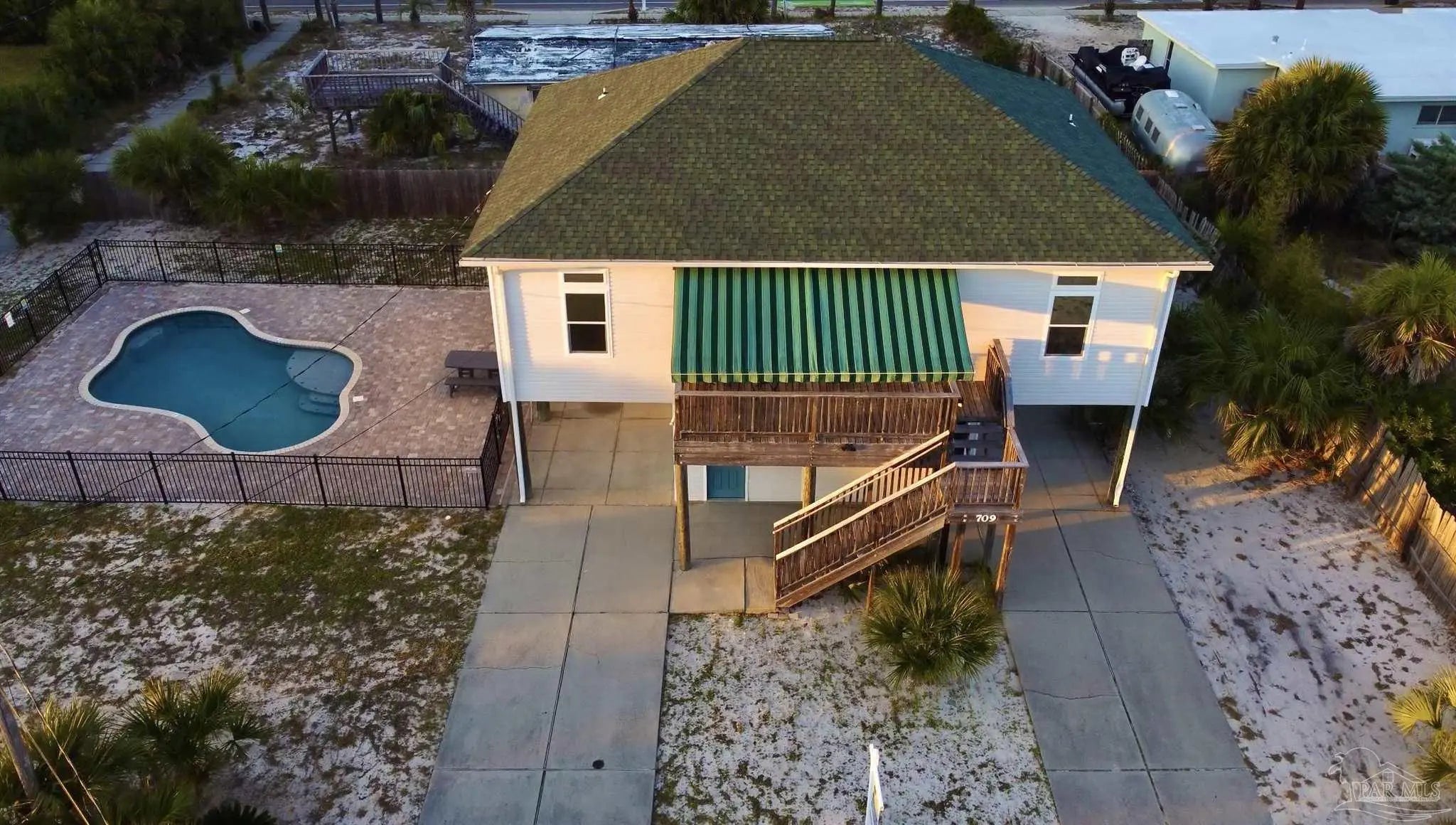 Escape to the beautiful Emerald Coast and enjoy this well-designed beachside home offering comfort, versatility, and inviting indoor-outdoor living just moments from the Gulf. Light-filled and spacious, the open layout connects the kitchen, dining, and living areas for easy everyday living and entertaining. High ceilings, crown molding, and tile flooring extend throughout the split floor plan, which includes three bedrooms, two full baths, a generous lower-level recreation room, and ample storage. The home is offered fully furnished as shown, providing a convenient turn-key option for personal use or rental opportunities in accordance with local guidelines. The kitchen features granite countertops, an island with seating, abundant cabinetry, and an open design that supports both casual meals and larger gatherings. Step outside to your private heated saltwater pool, added in 2021, along with a spacious pool deck ideal for lounging and outdoor dining. An outdoor shower adds convenience after a day at the beach. Note: Some pool-area furniture shown in marketing materials is a rendering. Outdoor living continues with a covered patio and a versatile recreation room equipped for indoor entertainment complete with a basketball shooting game, ping pong and foosball table. Upstairs, the front deck offers a view toward the water, and a remote-controlled awning provides shade on sunny days. Beach access is located close to the home, with convenient access to local dining, shopping, and activities along the Beach and Boardwalk. Recent updates include a 2024 HVAC system, 2023 roof, 2021 salt water heated pool, an exterior AC deck replaced in 2025, and a reverse osmosis water system in the kitchen. This coastal property combines upgrades, comfort, and location for an enjoyable beachside living experience.