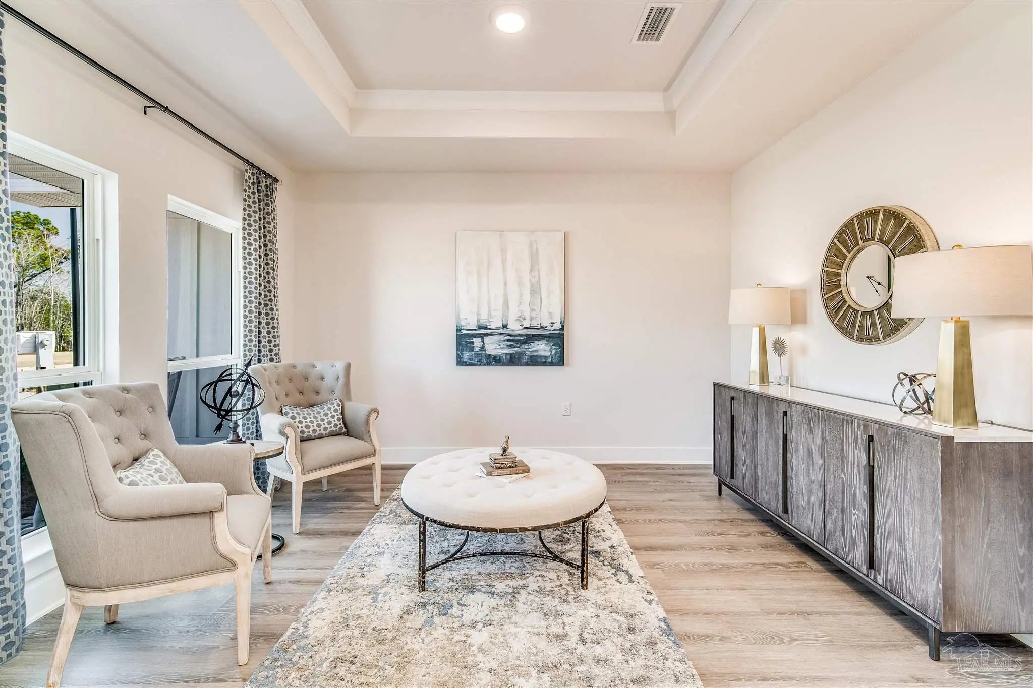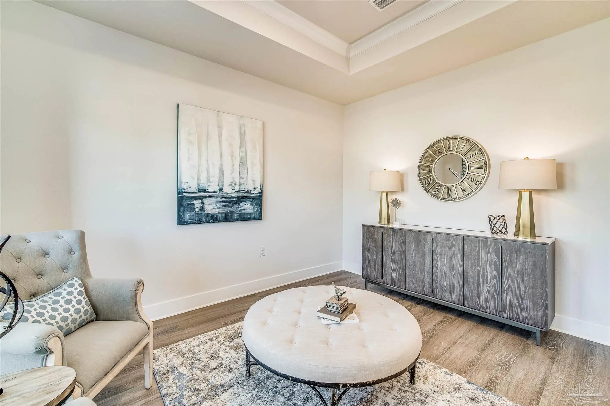 - Ceiling Fan(s), Crown Molding, High Ceilings, Office/Study