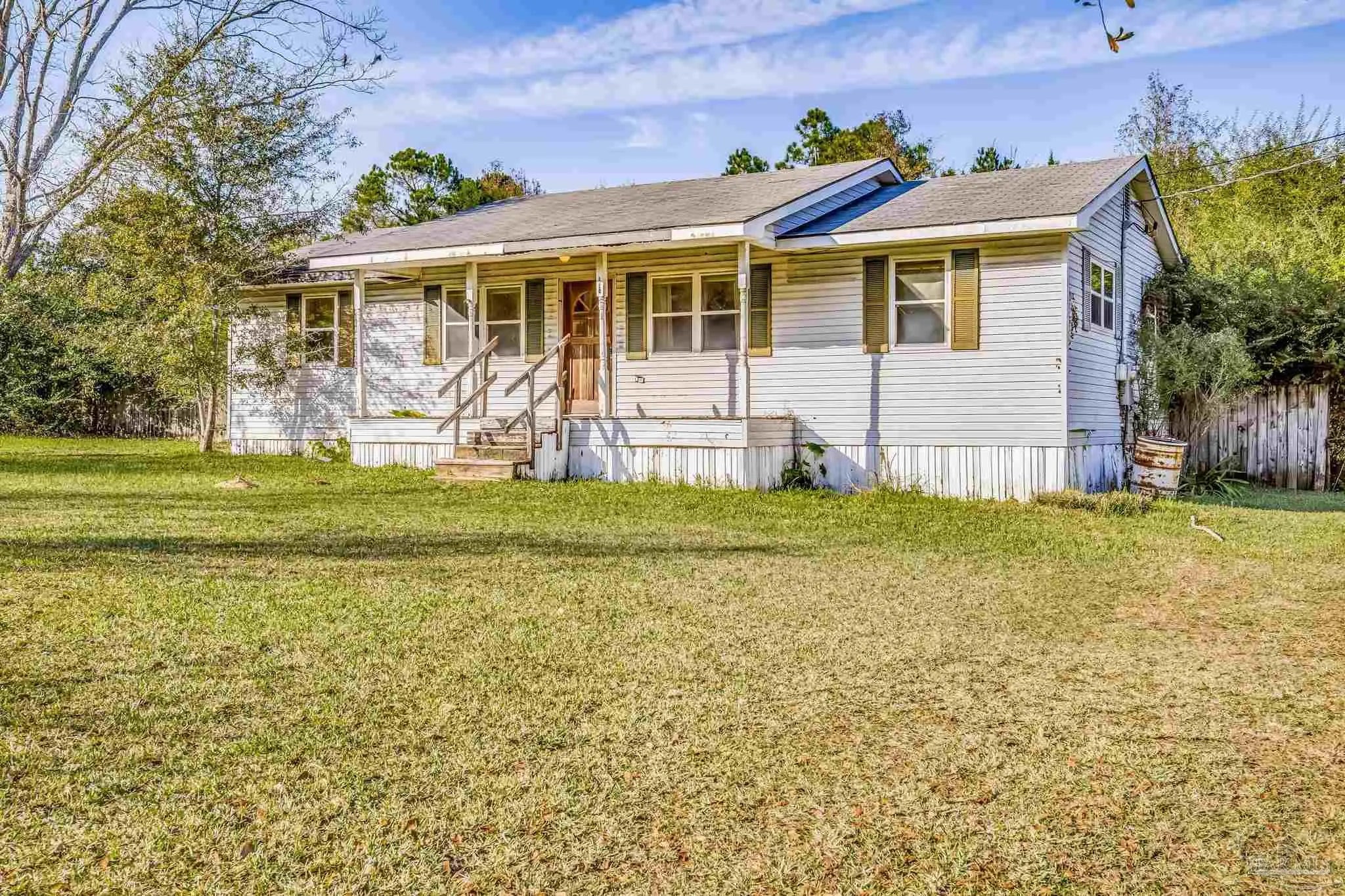 A newly improved list price for a prime investment gem with limitless potential! Don’t miss this 3-bedroom, 2-bathroom home situated on a beautiful one-acre lot. Nestled in a quiet, rural setting, this property offers peace and privacy while still being conveniently close to all that Pensacola has to offer—including downtown dining and entertainment, stunning beaches, and major work and play destinations. This is a rare chance to own a property with incredible potential in an ideal location—act fast before it’s gone!