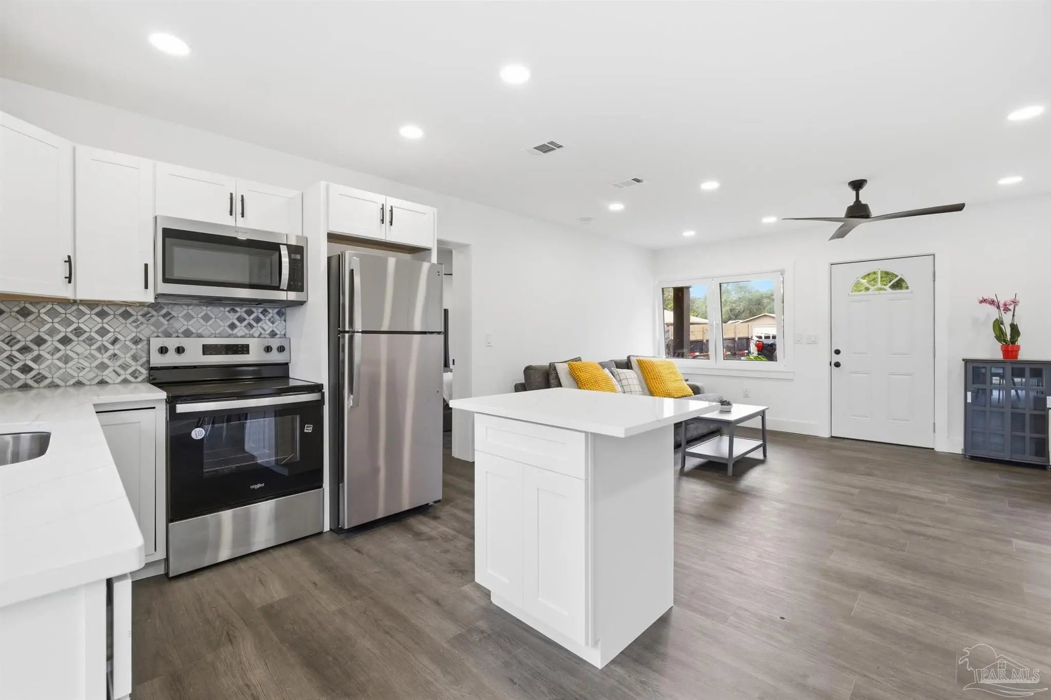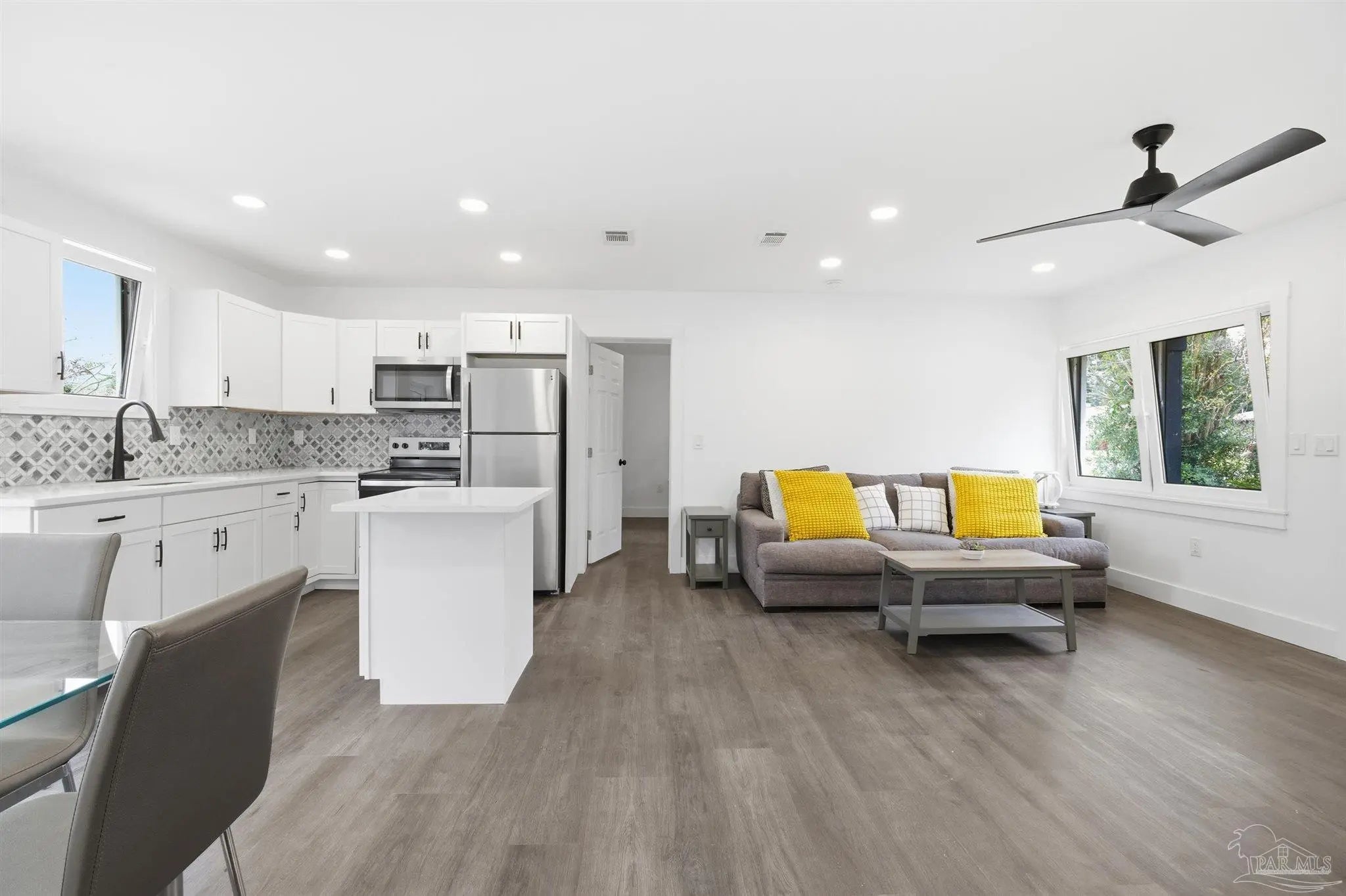 Recently renovated to perfection, this modern home blends sleek design with timeless European influence. A new roof and new HVAC system offer lasting comfort and efficiency, while steel-reinforced black-on-white tilt-turn windows make a bold architectural statement. Inside, luxury LVP flooring with a cushioned underlay adds warmth and quiet elegance. The Italian-inspired kitchen showcases solid countertops, modern cabinetry, and premium finishes for a clean, elevated look. Designer lighting and upgraded hardware bring every space together with intention. Flooded with natural light, the open-concept layout feels airy and inviting. Outside, the spacious lot gives you room to relax, entertain, or create the backyard you’ve always envisioned. This is modern European style and peace-of-mind upgrades—all in a turnkey renovation.