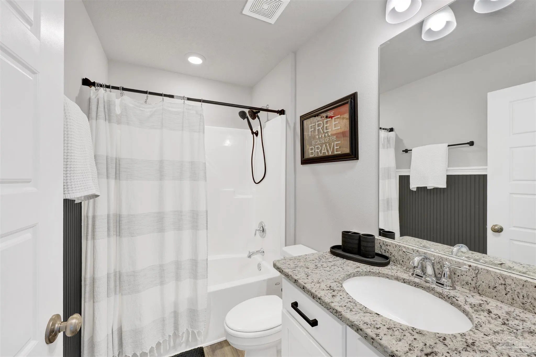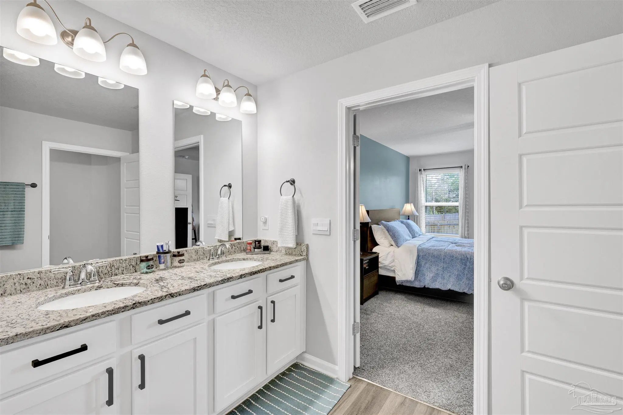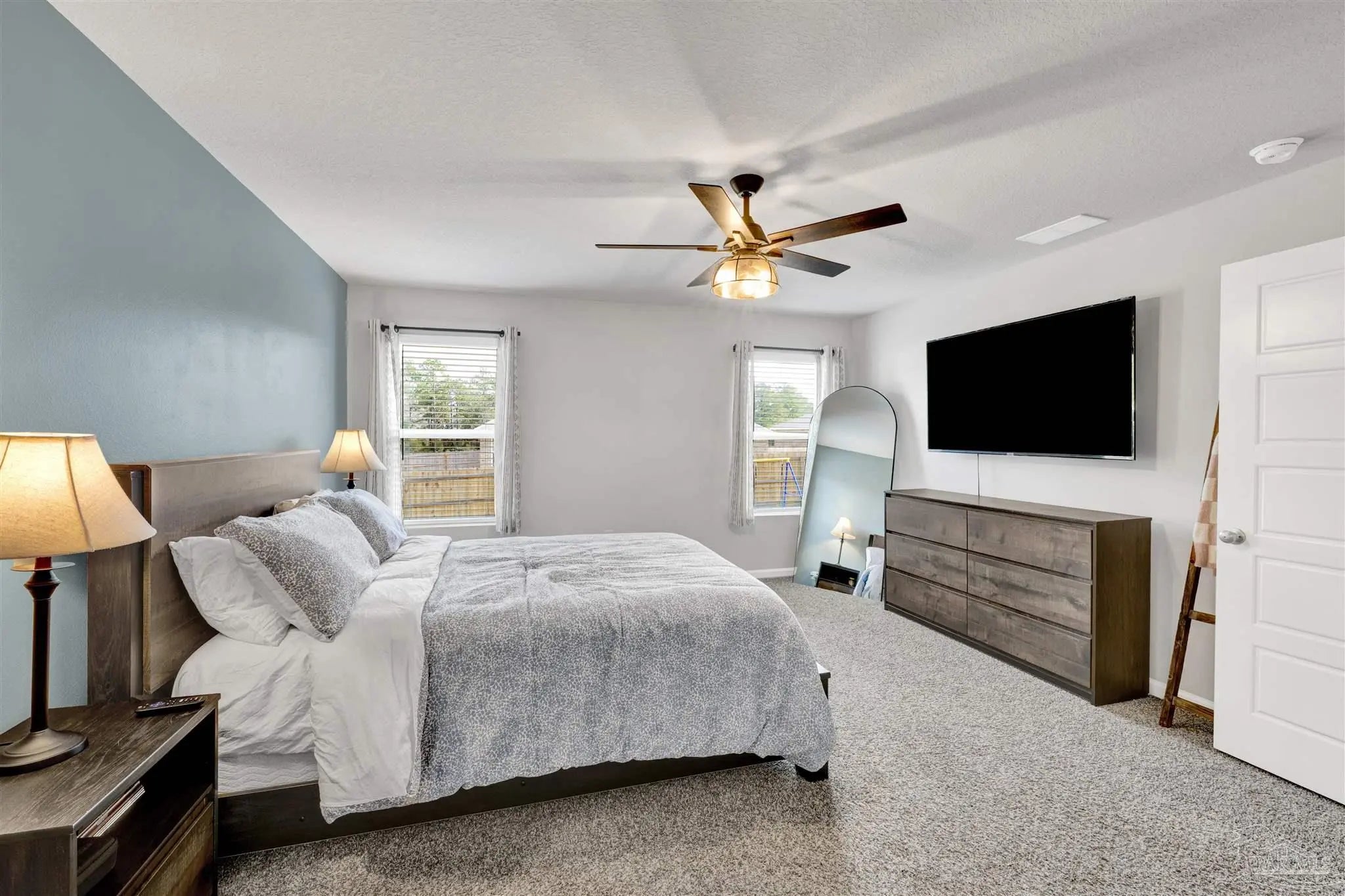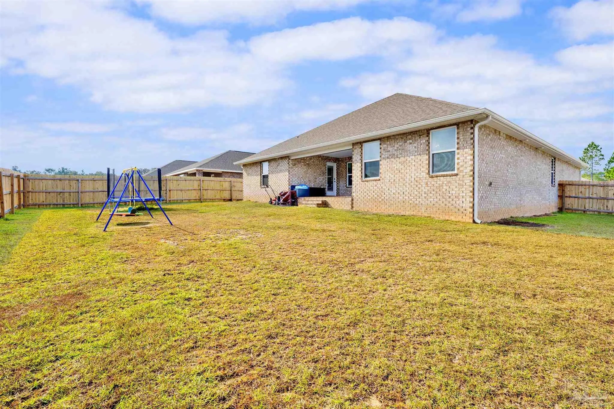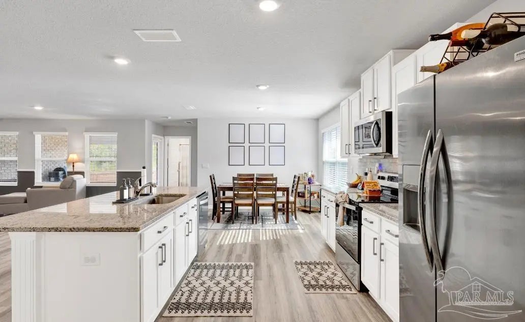 Welcome to this move-in ready 5 bedroom, 3 bath home located in a great community—a place where comfort, style, and convenience come together. With room for the whole family and better-than-new upgrades, this thoughtfully designed home offers modern living at its finest. Inside, you’ll find luxury vinyl plank flooring throughout the main living areas and plush carpet in the bedrooms for added comfort. The open living floor plan is perfect for everyday family life or hosting gatherings. A huge great room with stylish accent walls creates a bold and inviting centerpiece for the home. The chef’s kitchen is sure to impress with a large center island, granite counters, stainless steel appliances, and a walk-in pantry. A double split floor plan provides exceptional privacy for both the primary suite and guests. The primary suite features a spacious bedroom that flows into an ensuite offering double vanities, granite counters, a walk-in shower, walk-in closet, and a private water closet. All additional bedrooms are generously sized with ample closet space. The laundry room, conveniently located off the kitchen, leads to the double-car garage outfitted with epoxy-coated flooring and ceiling-mounted storage racks. Step outside to a privacy-fenced backyard complete with a covered patio, also finished with epoxy flooring. It’s an ideal space for backyard BBQs, playtime, or even adding a future pool. Located just minutes from I-10, Navy Federal, schools, and shopping, this home offers both convenience and community. With its thoughtful upgrades and spacious layout, this is truly a great place to call home.