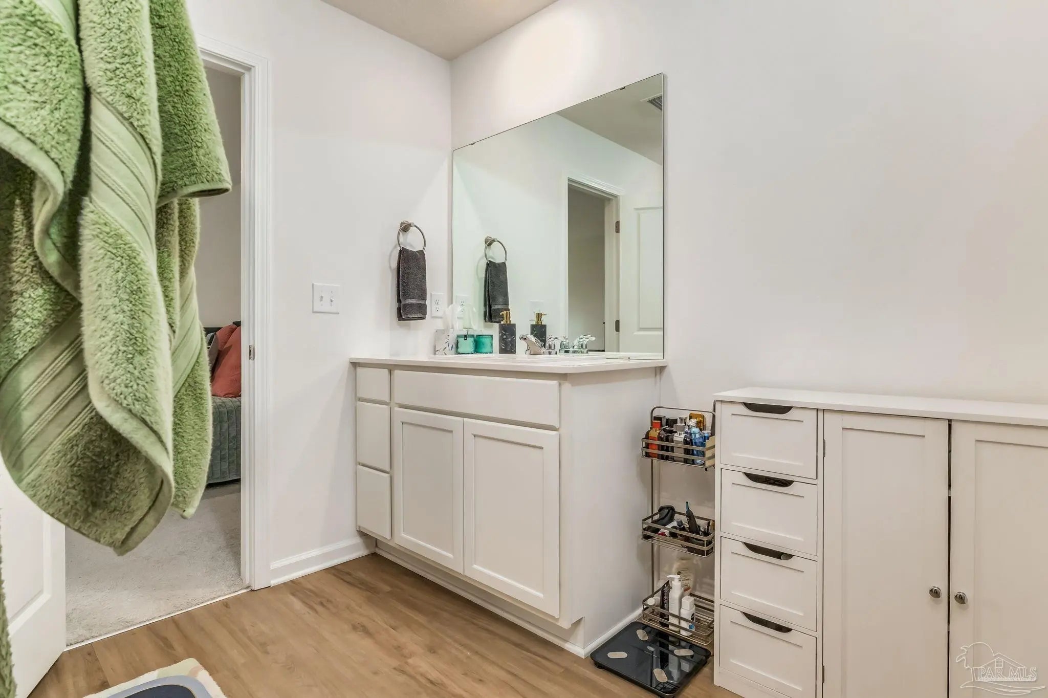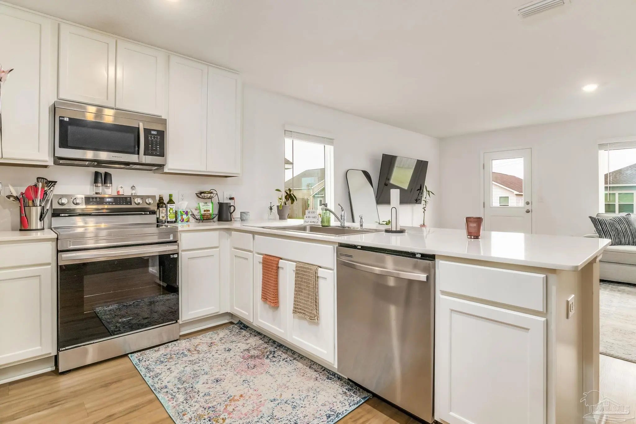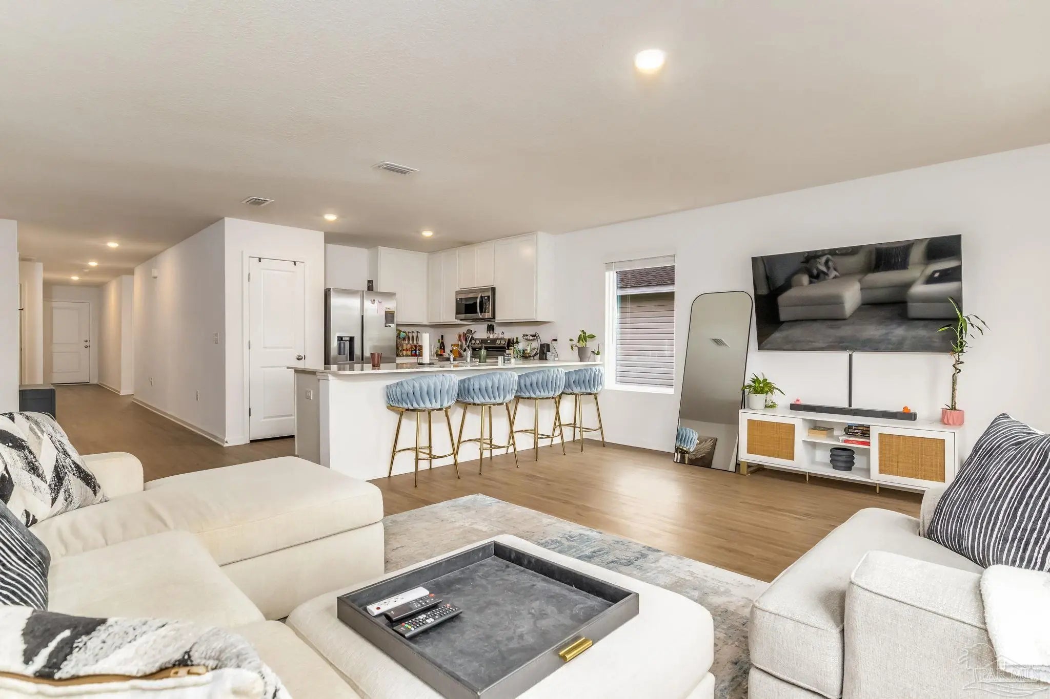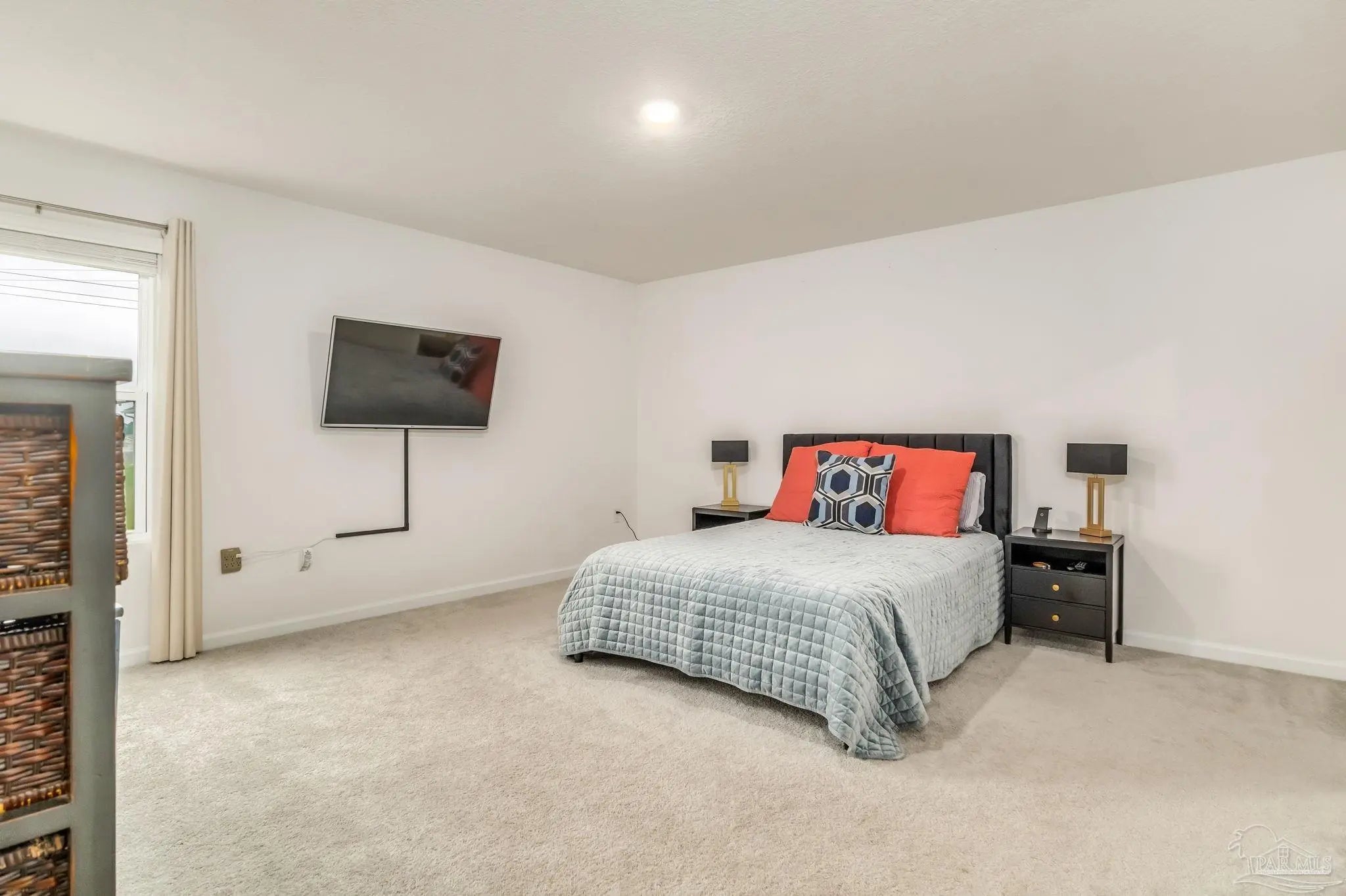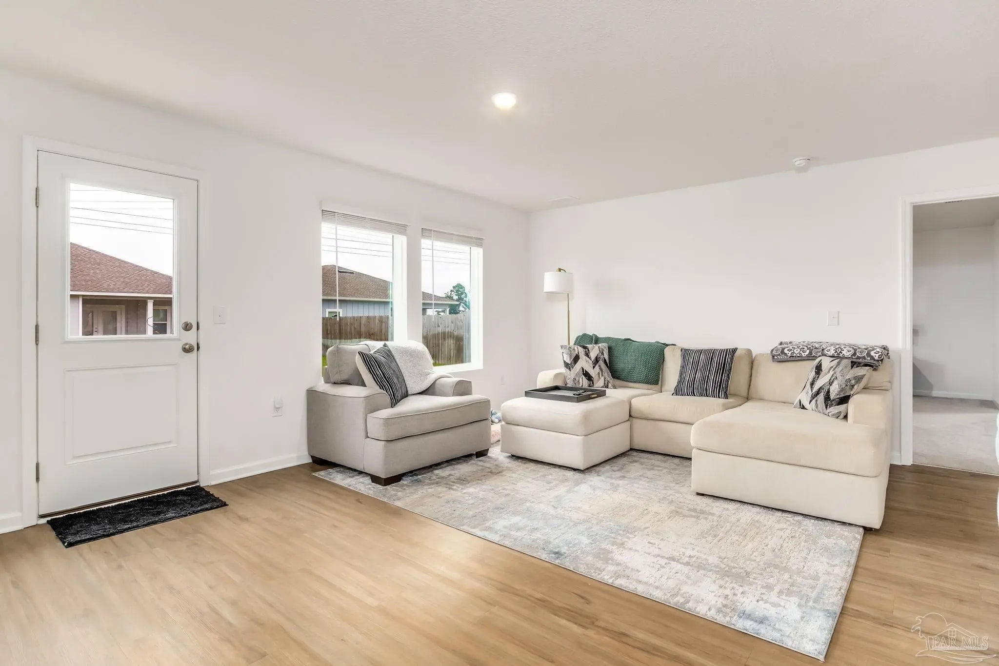 Easy access to shopping, interstate & Navy Federal complex! Convenient to I-10 & shopping. Open floor plan. Recessed lighting. Large living room with access to the backyard. Separate dining area. Fully equipped kitchen with island, quartz countertops, stainless steel appliances and pantry. Split floor plan. Primary suite with shower only & oversized closet. Wood-look vinyl plank flooring in main living areas with carpet in the bedrooms. Inside laundry. 2 car garage. Small pets considered with owner approval. ** Reduced security deposit for active duty military - call for details **