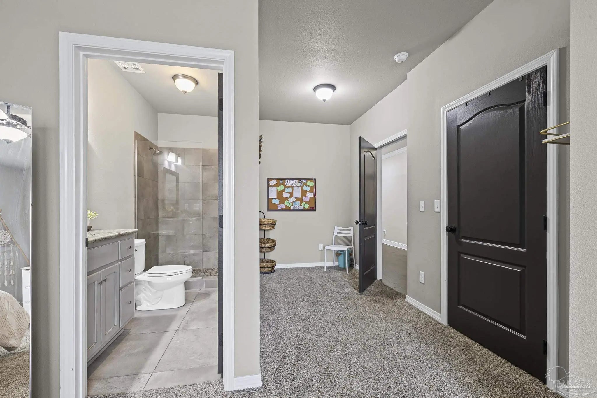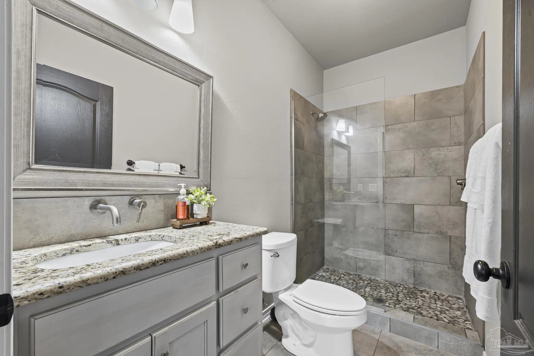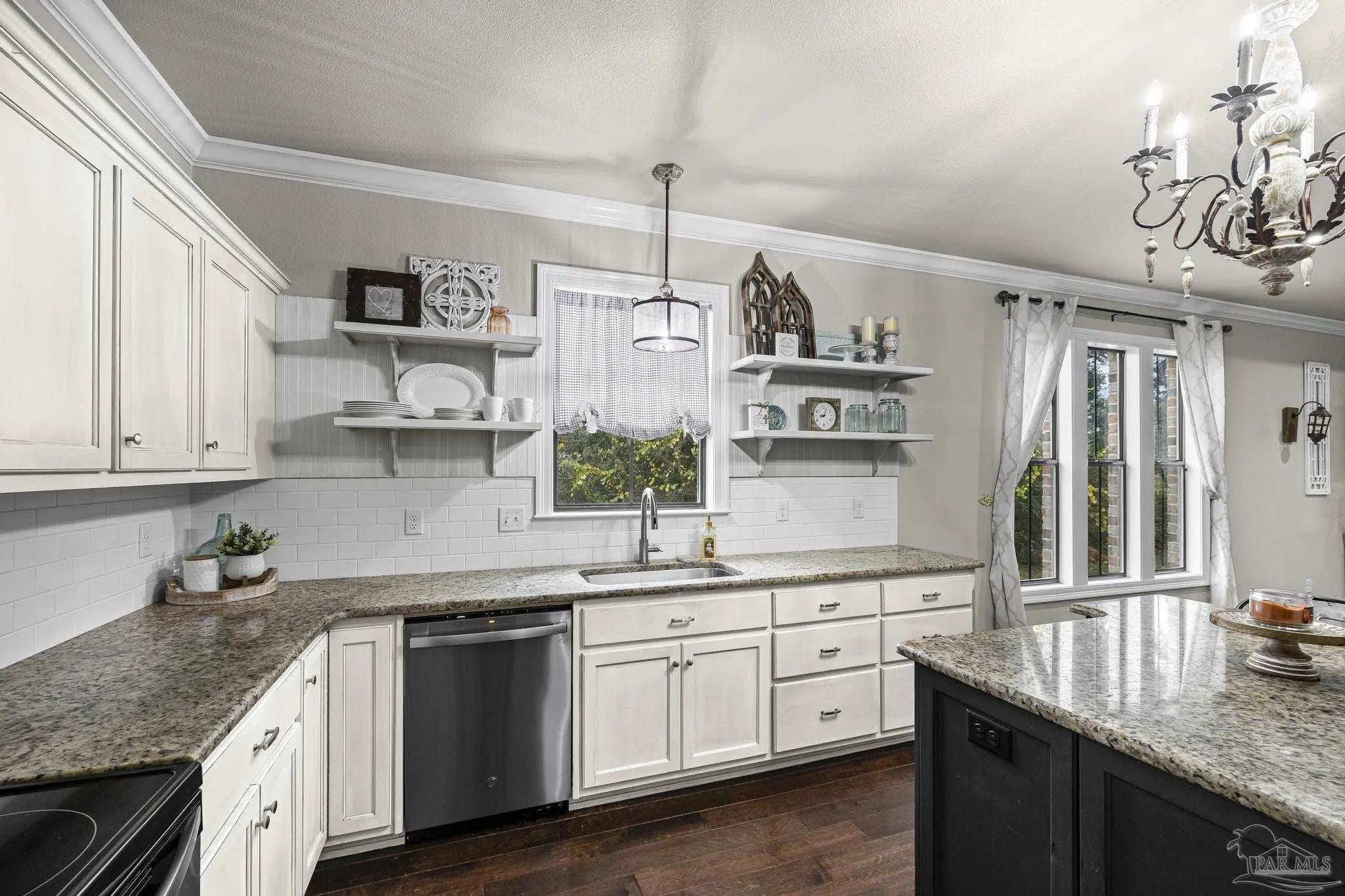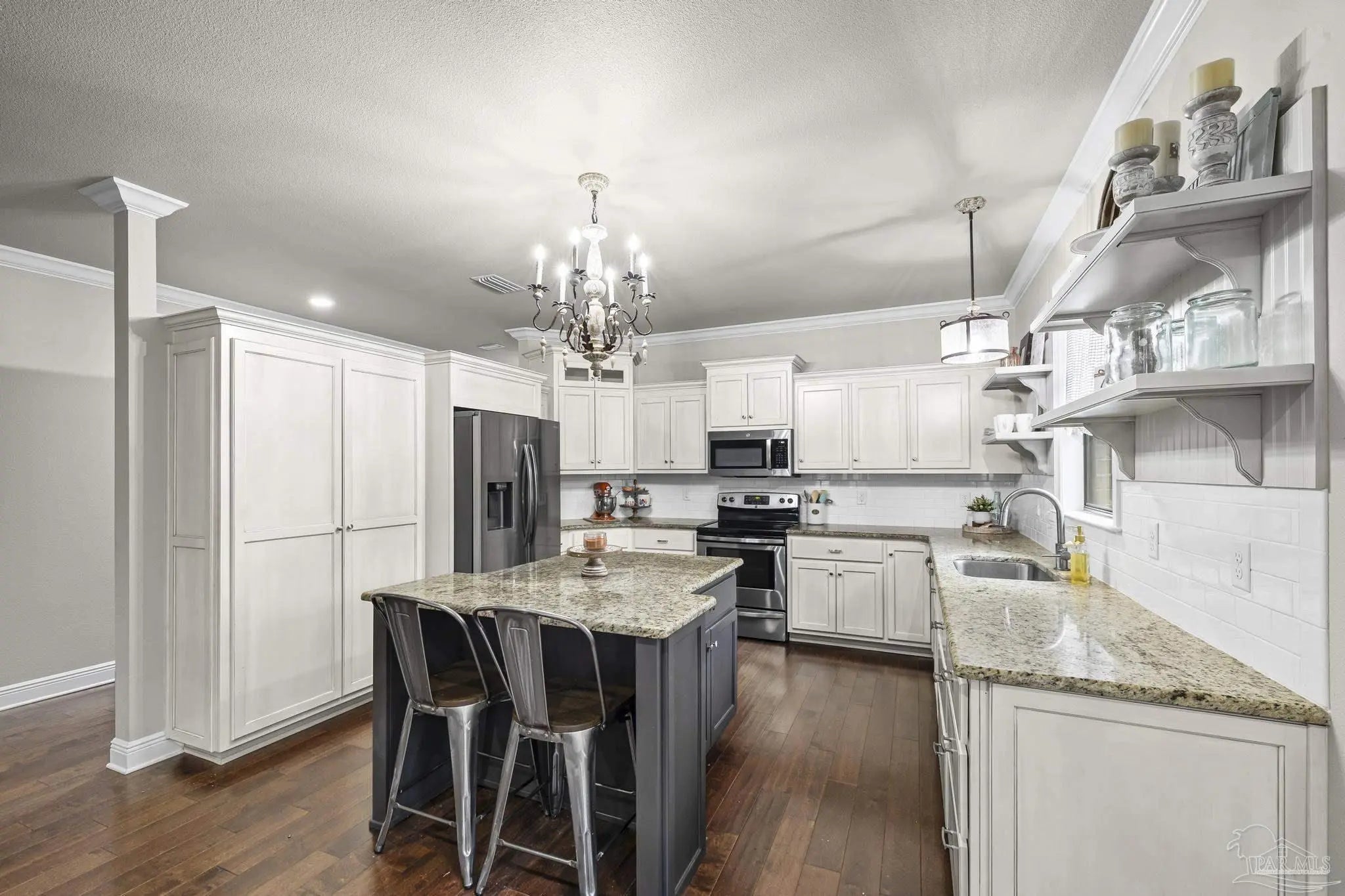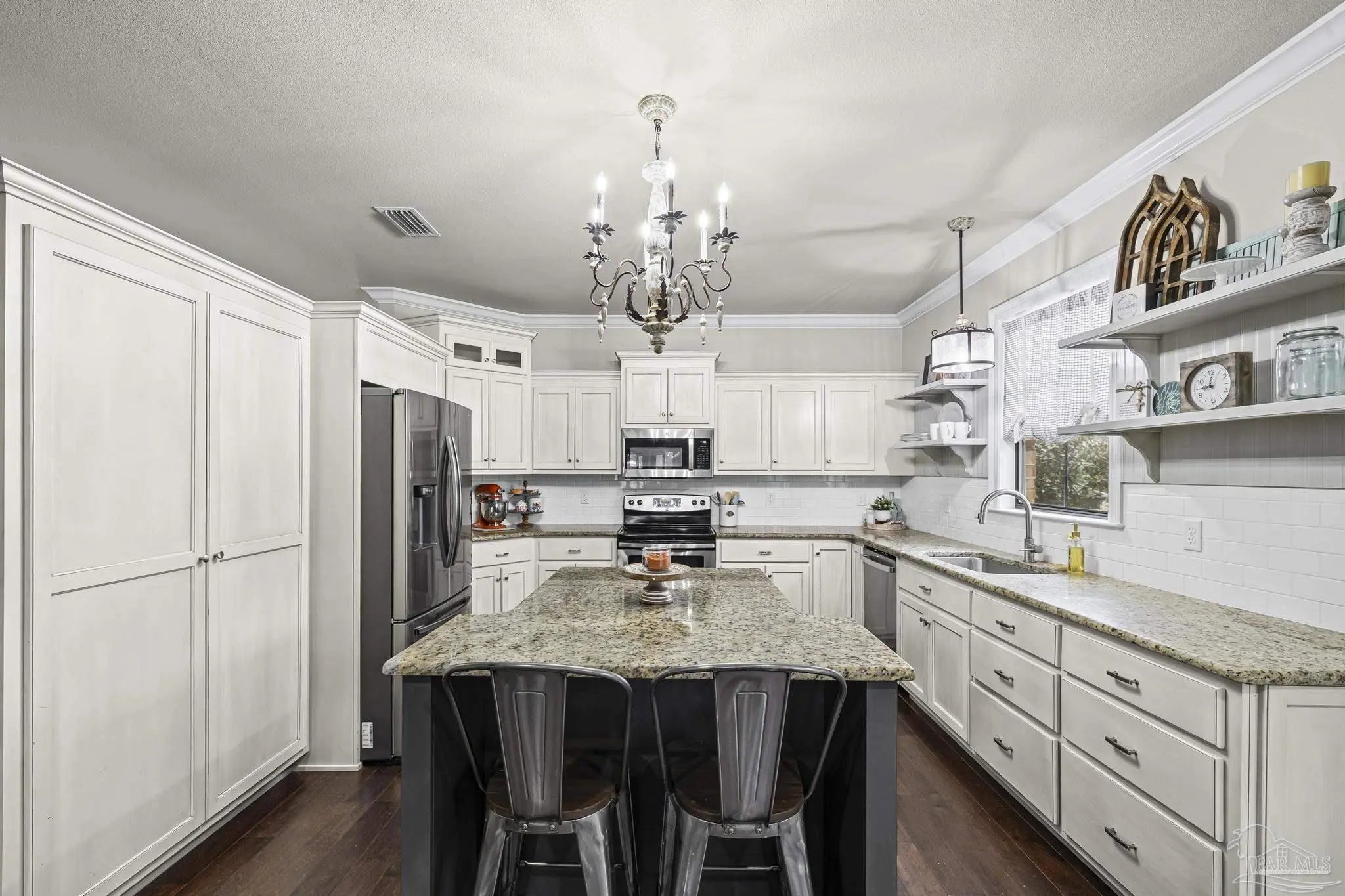 Beautifully designed custom home located in the prestigious, gated golf community of Stonebrook Village. Thoughtfully planned, the interior offers an inviting open concept layout balanced with a split floor plan with a private primary suite and a private guest suite. Hand-scraped espresso hardwood floors extend through the kitchen, dining, and living areas, enriching the home with warmth and timeless elegance. The kitchen offers a generous center island with a granite breakfast bar, custom lighting, classic subway tile backsplash, beadboard accent wall with café shelving, and stunning custom-glazed cabinetry. Just steps away, the master suite provides total seclusion down its own private hallway. The spa-like master bath is indulgent and serene, featuring a quartz double vanity, a soaking tub, a beautifully tiled walk-in shower, an oversized walk-in closet. An additional master suite or guest suite offers its own ensuite bath with a custom-tiled shower and private exterior entrance. Perfect for multi-generational living, a teen retreat, or a dedicated home office, this flexible space enhances the home’s versatility. Bedrooms two and three share a Jack-and-Jill bathroom and feature generous closets. Outside, enjoy peaceful views from the screened in covered patio, or take advantage of community's impressive amenities, including a sparkling community pool, clubhouse, tennis courts, and of course, pristine golf greens. A full sprinkler system adds ease and convenience.