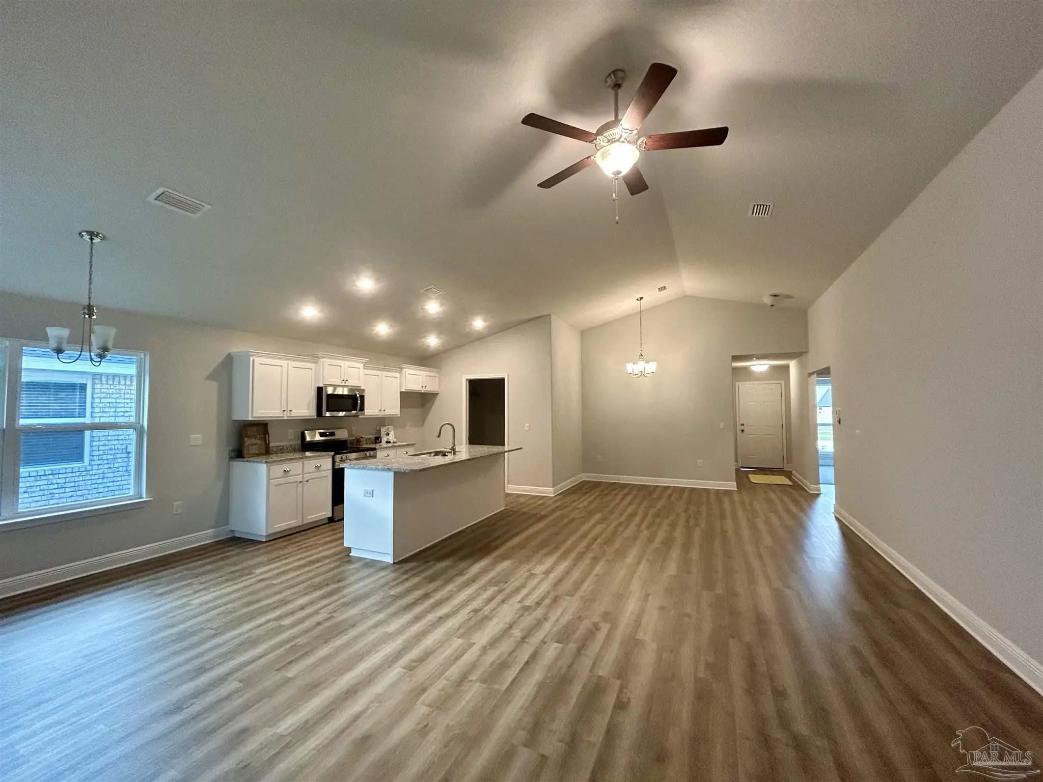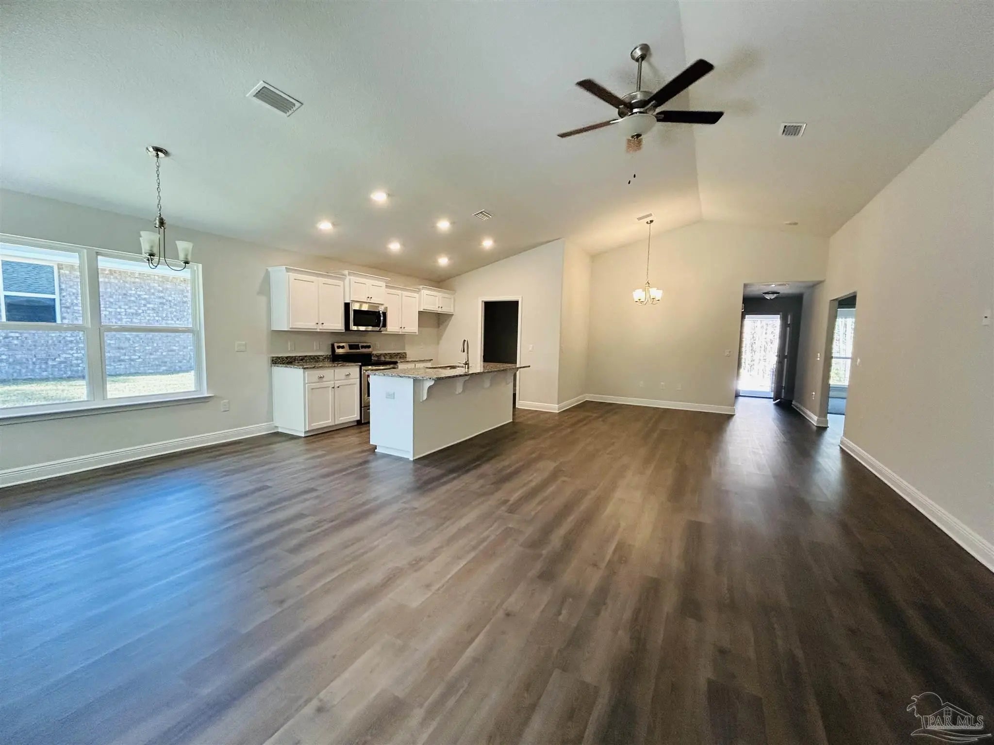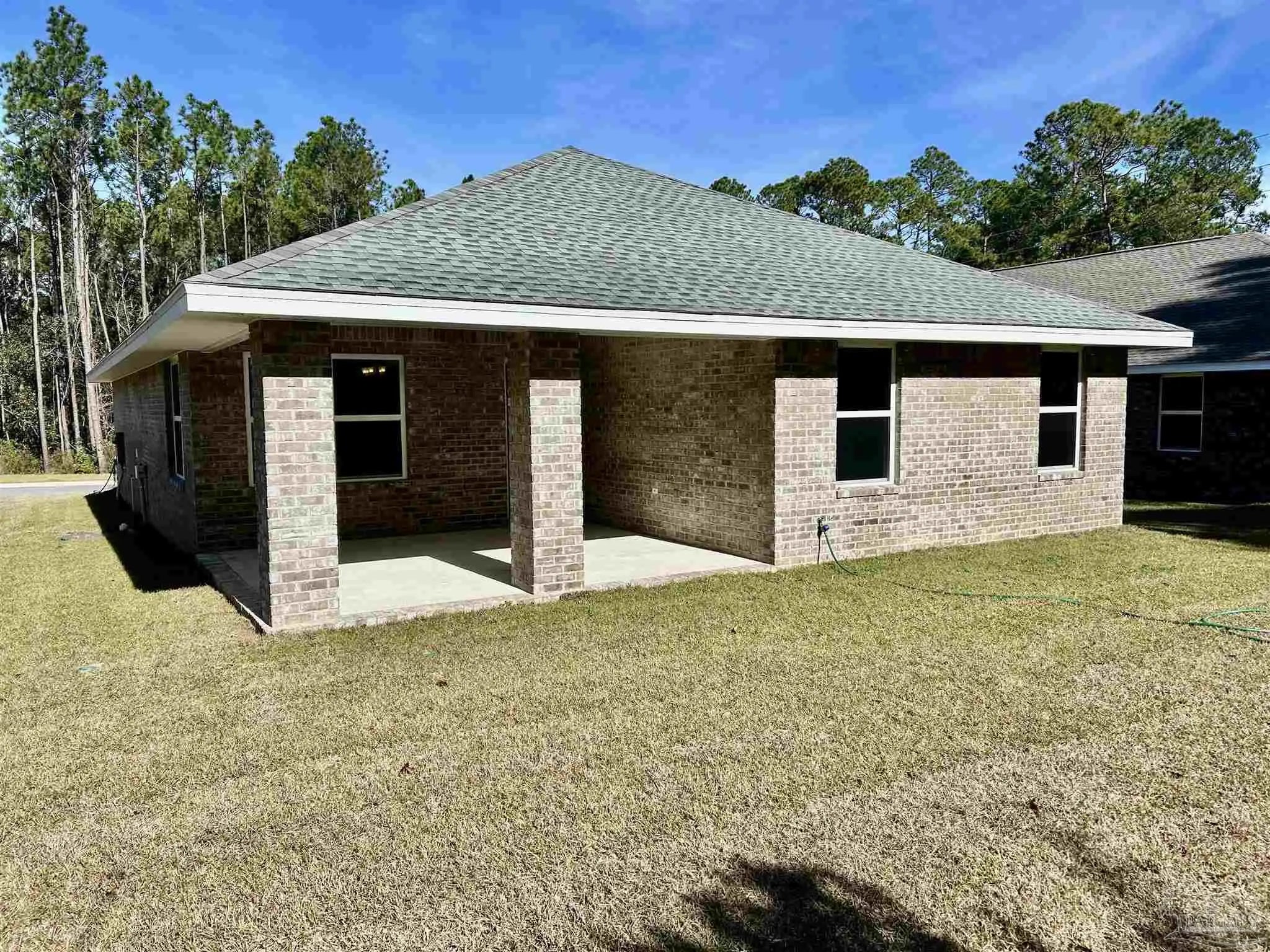 UNDER CONSTRUCTION, Estimated Completion March 2026. This well laid out home design features 3 bedrooms and 2 bathrooms including a large master suite with crown mold and a walk-in closet. This popular open concept plan also includes a granite counter kitchen showcasing an island and direct access to the expansive 15X14 covered porch. Other features sure to please are durable, cortec vinyl plank flooring in all common spaces, 2 car garage, stainless steel appliances and much more. In this All Electric neighborhood, you will find our newest floor plans of brick patio homes with architectural shingles, hurricane storm panels, double pane low E windows, and sodded yards to 120" from front property line. Other standards are: quality bump and stagger upper cabinets with hidden hinges and crown molding, stainless Frigidaire appliances (stove, microwave, dishwasher), Moen faucets, knockdown ceilings and orange peel textured walls, 5 14" baseboards, LED lighting in kitchen and over tubs & showers, 50 gallon water heater, and much, much more. * PICTURES ARE NOT A TRUE REPRESENTATION.