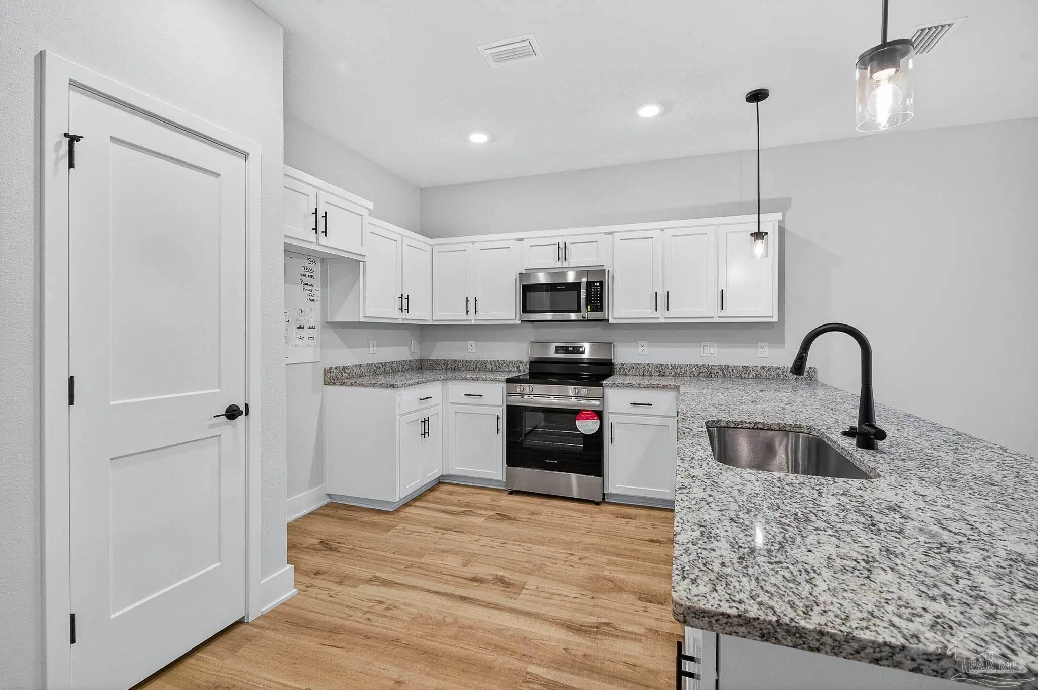 Located in North East Pensacola, and just 15 mins to Downtown Pensacola! NEW CONSTRUCTION, estimated completion March 2026. The 3 bed/ 2.5 baths 1543 sq ft floor-plan has Coretec vinyl plank flooring throughout the entire first floor. The kitchen is open to the living area and contains granite countertops, stainless steel appliances that include smooth surface range, built-in microwave, dishwasher and garbage disposal. This floorplan has a one car garage to complete the first floor. The second floor is split with 2 bedrooms with walk in closets on one end. There are 2 full bathrooms with Granite, and the laundry is located off the hallway and at the other end is the large master suite w/ master bathroom. PICTURES MAY NOT BE OF TRUE REPRESENTATION.