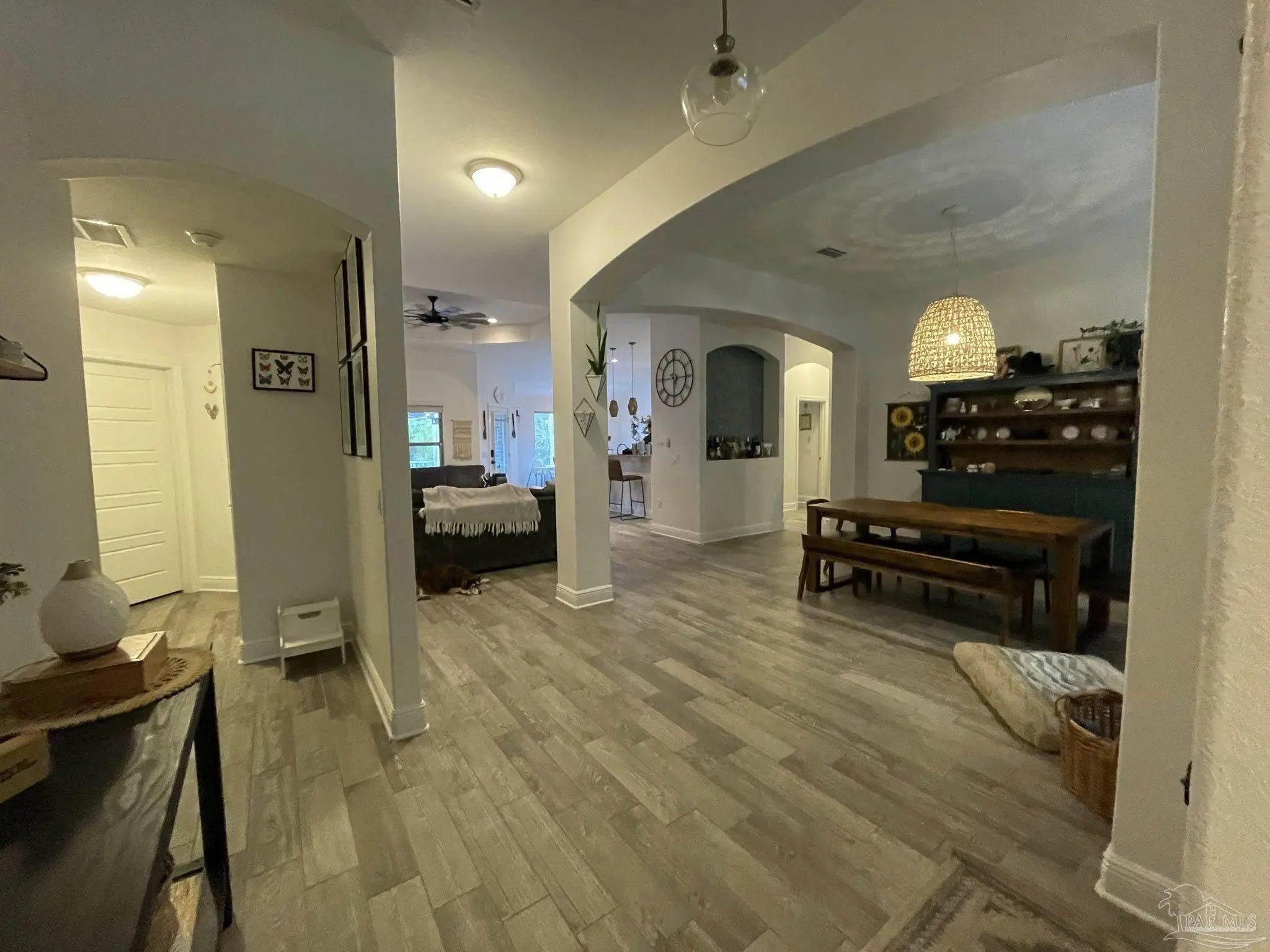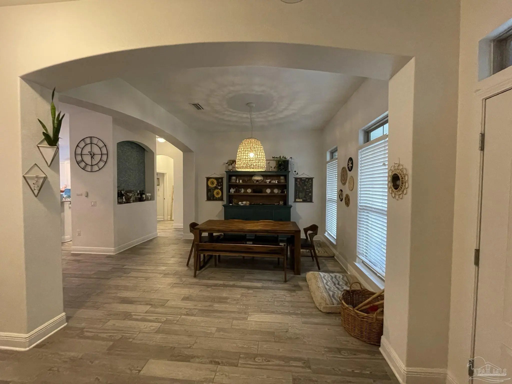 AVAILABLE 5 JAN 2026 - QUIET, EXPANSIVE PROPERTY LOCATED BETWEEN PENSACOLA AND NAVARRE BEACHES ~~~ 4 BEDROOM, 2 BATH, 2 CAR GARAGE ~~~ SPLIT BEDROOM FLOOR PLAN WITH AN OPEN KITCHEN, LIVING ROOM, DINING ROOM ~~~ MAIN LIVING AREA BOASTS HIGH CEILINGS, PICTURE PERFECT KITCHEN WITH PLENTY OF CABINETS AND COUNTERTOP SPACE ~~~ PRIMARY BEDROOM WITH A CUSTOM WALK IN CLOSET AND SPA-LIKE BATHROOM WITH DOUBLE VANITY, SEPARATE TILED SHOWER ~~~ BE PREPARED TO ENJOY THE OUTDOOR LIVING ON THE EVER-CONTINUING BACK DECK WITH A HUGE FENCED BACK YARD SITUATED ON A GREEN BELT THAT OFFERS PLENTY OF PRIVACY.