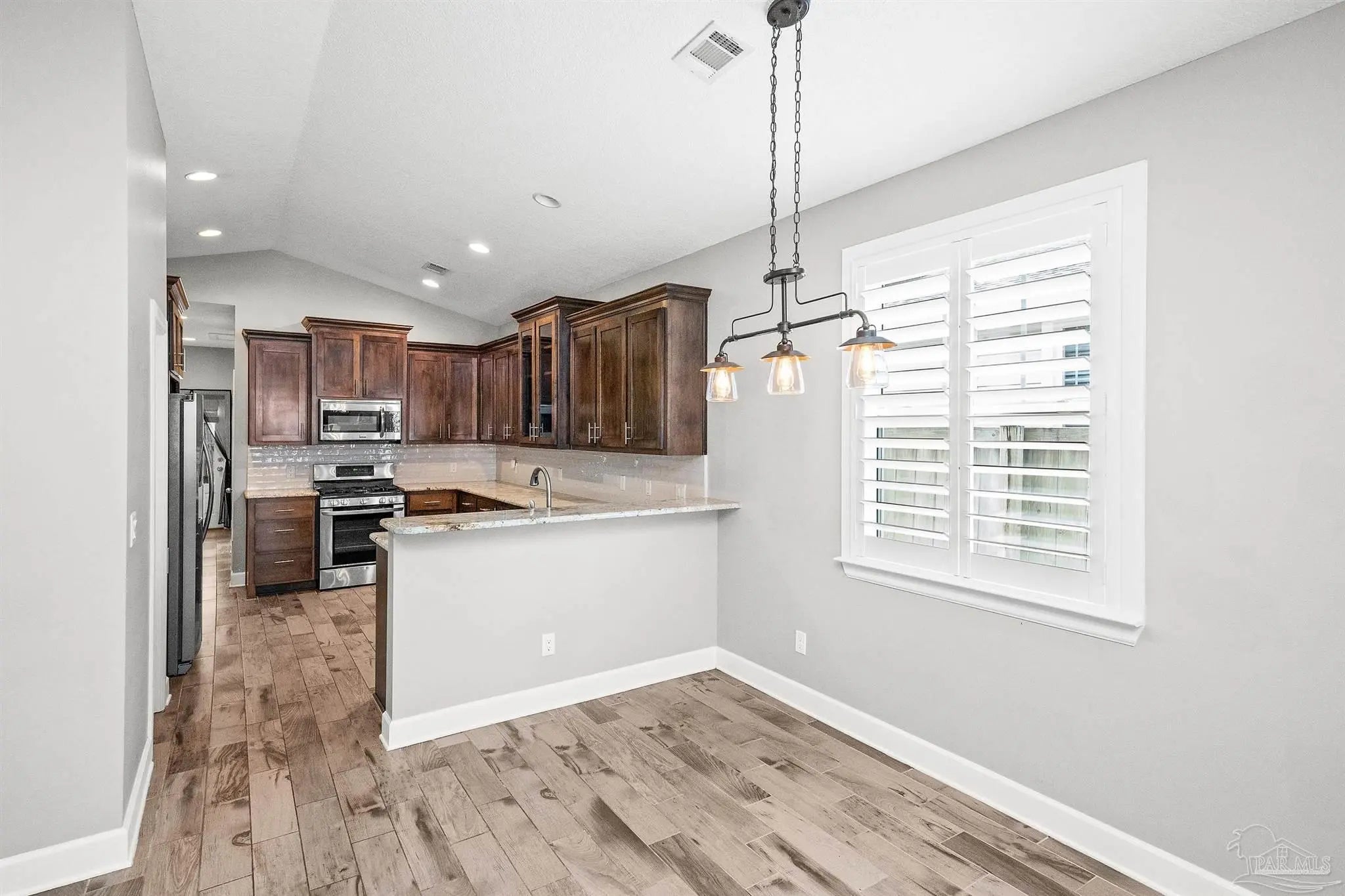 Welcome to this beautifully maintained East Hill cottage, perfectly positioned on a quiet, walkable street just moments from parks, dining, and all the charm this beloved neighborhood is known for. Built in 2015 and thoughtfully designed for modern living, this single-story home blends inviting curb appeal with a highly functional layout that’s ideal for today’s lifestyle. Step inside to soaring vaulted ceilings that add volume and natural light throughout the main living area. Wood-look tile flooring offers durability and warmth, while the gas fireplace creates a focal point that anchors the open concept space. The kitchen is well-appointed with granite countertops, ample cabinetry, a spacious pantry, and a gas range—perfect for both everyday cooking and weekend entertaining. The primary suite is tucked away for privacy and features trey ceilings, a generous walk-in closet, stunning accent wall, and a flex room that adapts easily to your needs—whether it's a nursery, home office, workout space, or cozy reading retreat. The en-suite bath offers a double vanity, granite counters, and a large walk-in shower. Two additional bedrooms share a well-designed full bath, and a convenient half bath sits just off the hallway for guests. Out back, you’ll find a private outdoor setting that maximizes both relaxation and usability. The paver patio provides plenty of space for outdoor dining or lounge seating, while the custom detached building—with electricity—adds valuable storage or workshop potential. The yard is fully landscaped and easy to maintain, creating a turnkey space ready for summer evenings, family gatherings, or quiet mornings with a cup of coffee. With its central location, modern comforts, and welcoming character, this East Hill home offers a rare blend of style, convenience, and neighborhood charm.