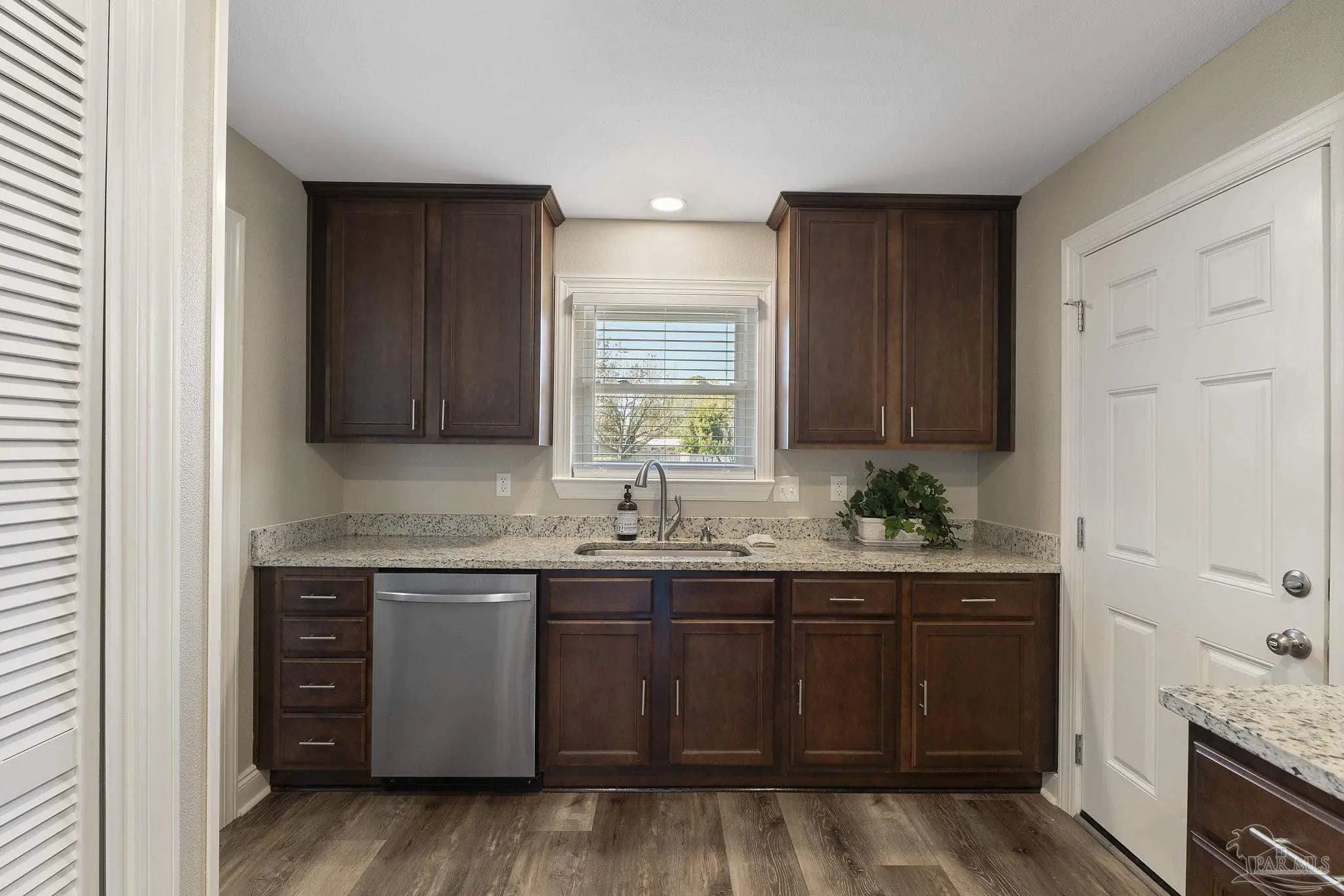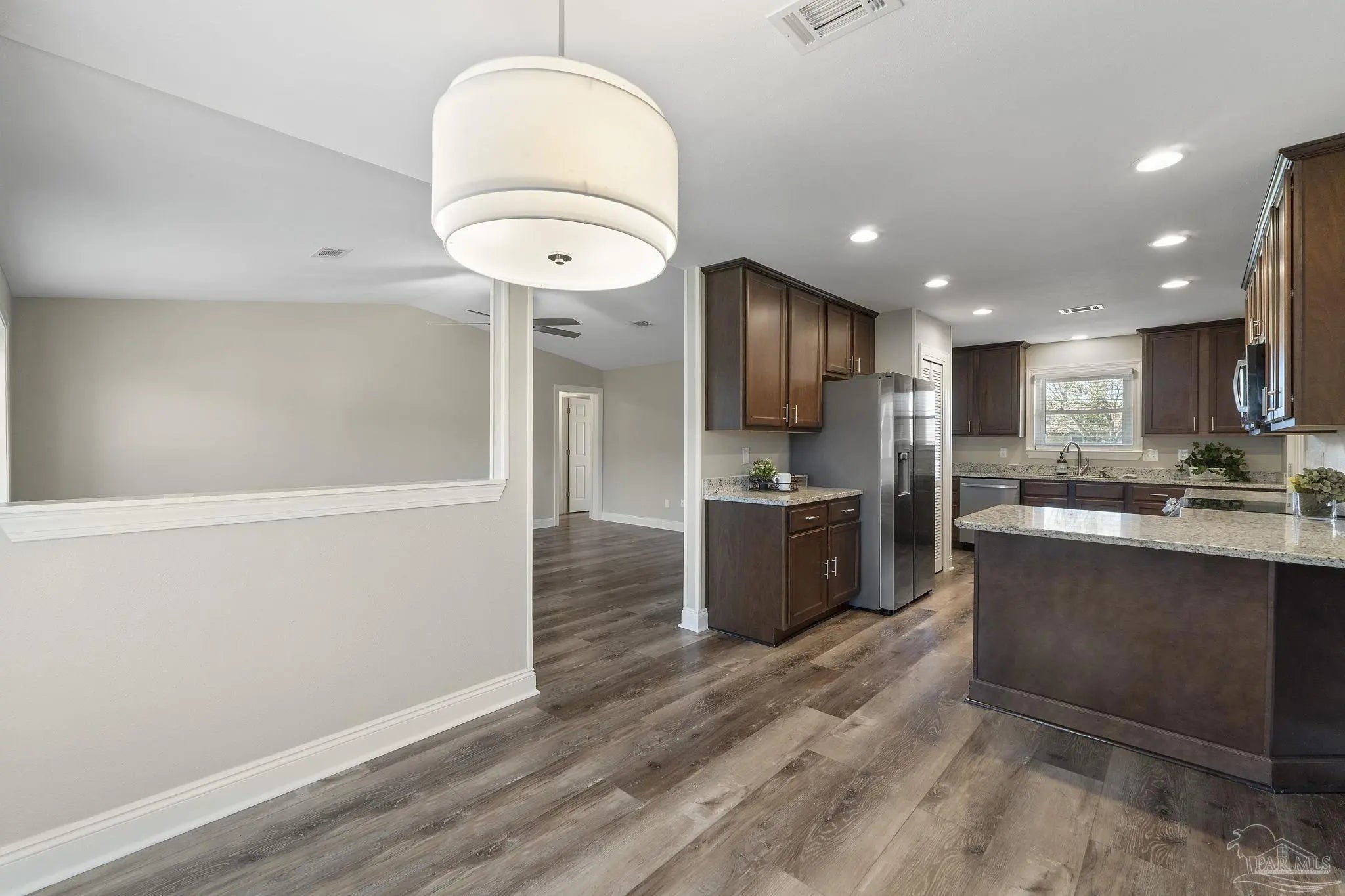 Beautifully updated and truly move-in ready, this 3-bedroom, 2-bath home in Pine Lake Estates offers modern style and worry-free living. Enjoy luxury vinyl flooring throughout, designer lighting, and granite in the kitchen and both baths. The kitchen features new cabinets, new granite countertops, and all-new appliances, including a garbage disposal. Both bathrooms have been refreshed with a reglazed tub, new toilets, and a newly redesigned master shower. Additional upgrades include all-new windows, new entry and storm doors, and a convenient laundry room with backyard access. The exterior has been freshly pressure washed, and the property includes a privacy fence and a 2-car garage with pull-down attic stairs. Located on a corner lot, this home combines quality updates with easy, comfortable living—ready for you on closing day. 2021 Roof, 2024 Tankless Gas Water Heater.