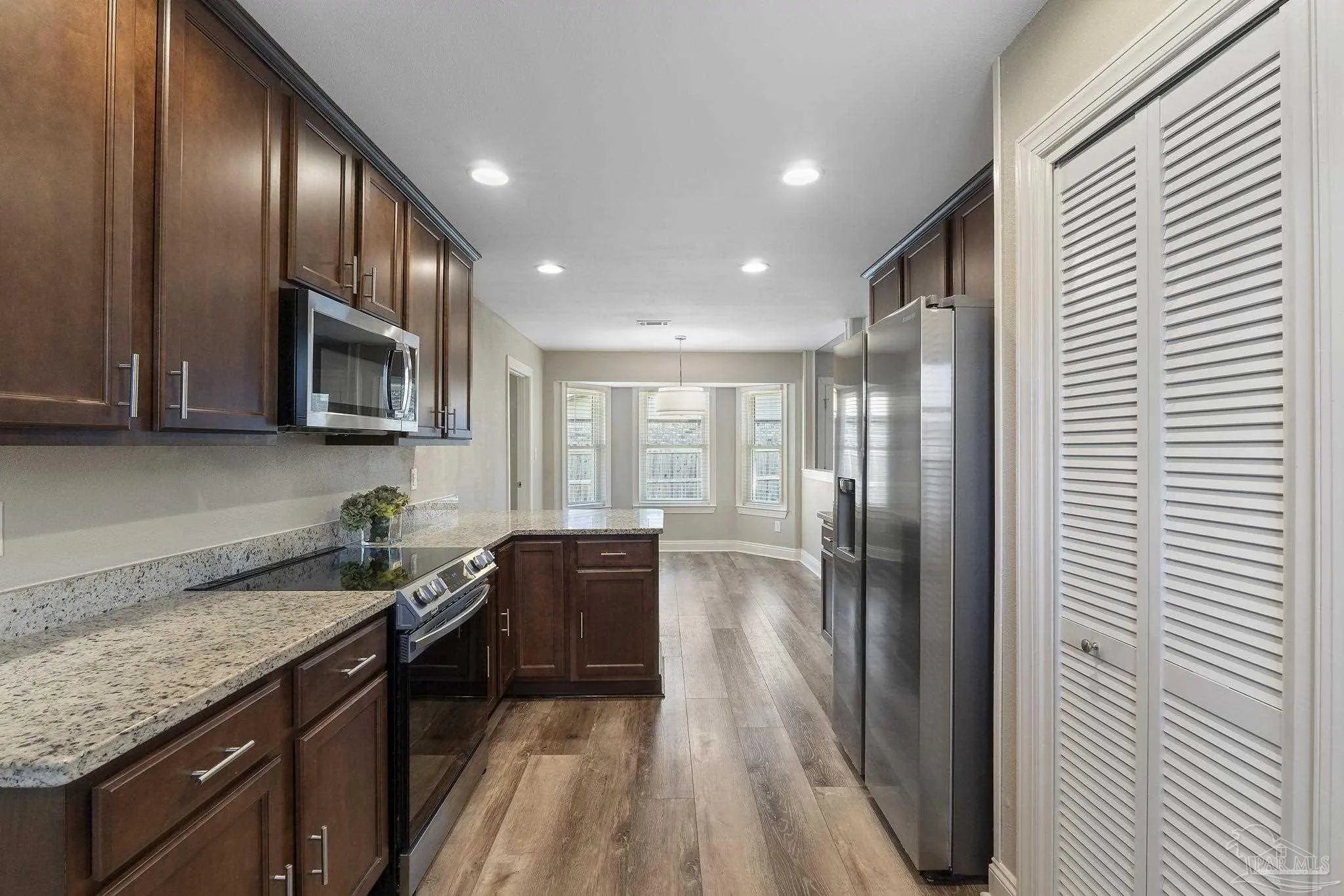 - Tankless Water Heater/Gas, Built In Microwave, Dishwasher, Disposal, Refrigerator, Self Cleaning Oven