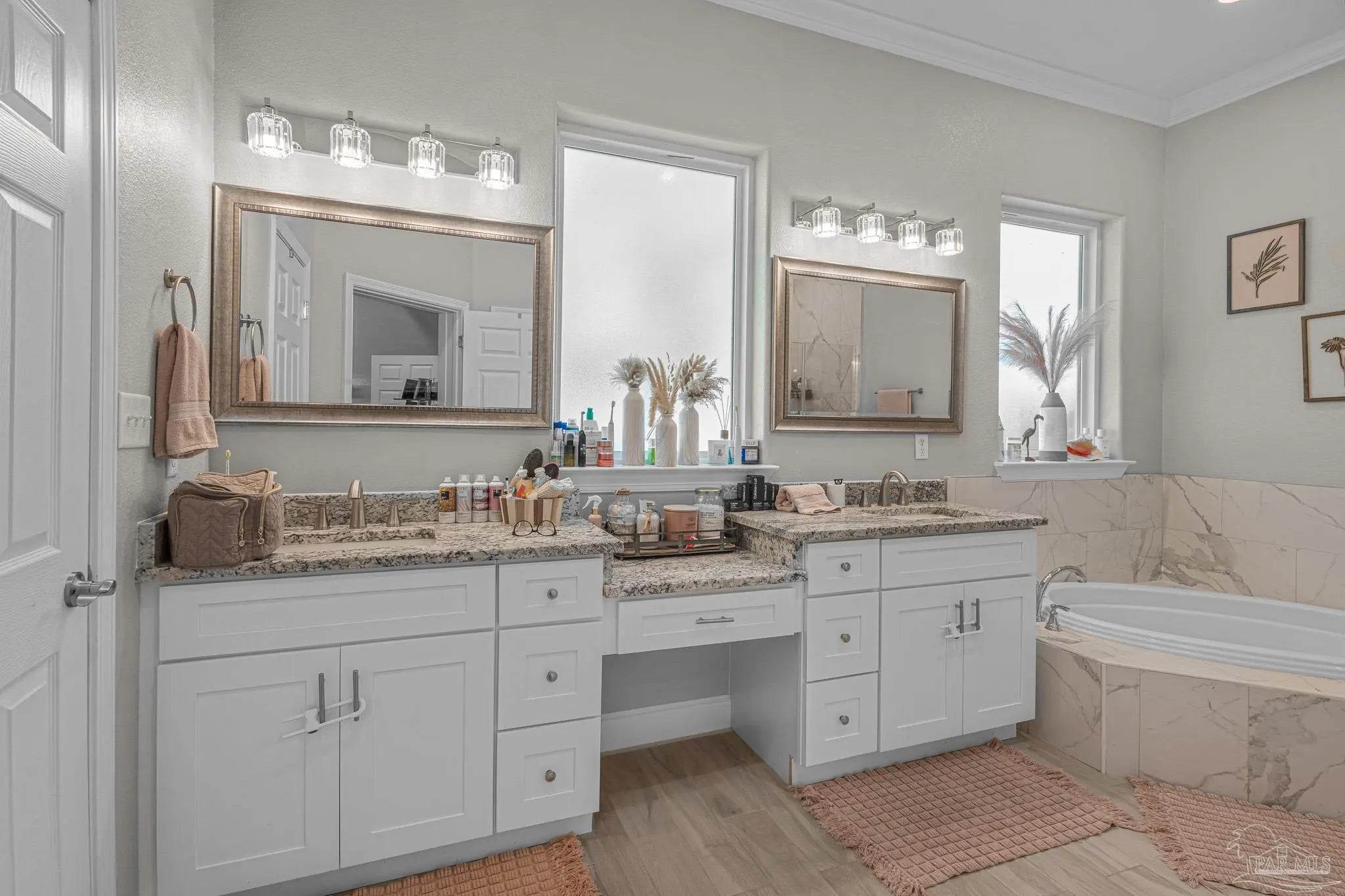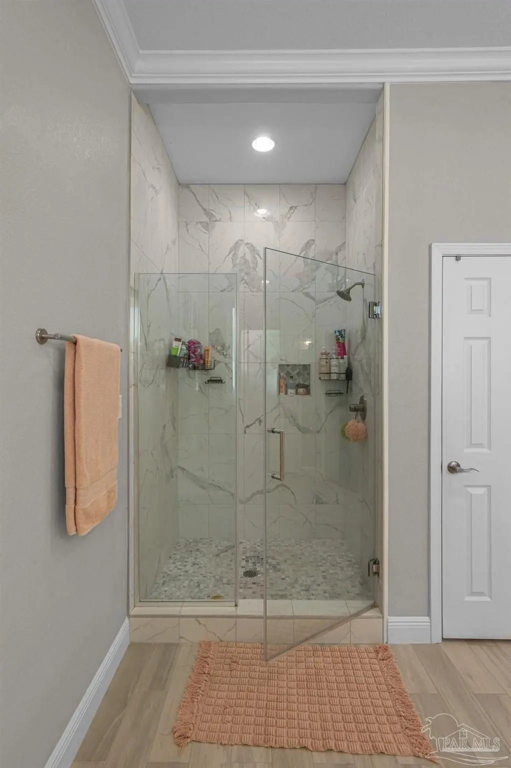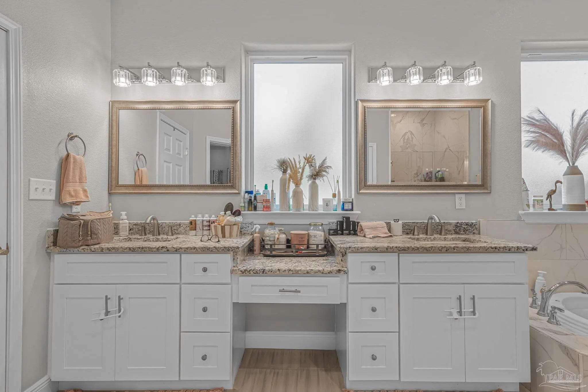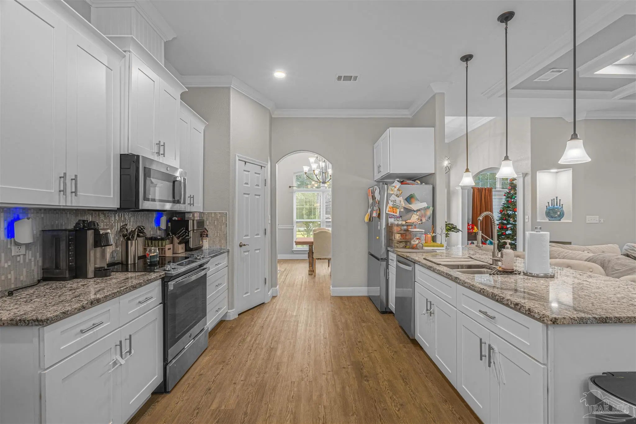 Experience modern Florida living at its finest in this inviting 4-bed, 3-bath home where style, comfort, and functionality come together effortlessly. A charming front porch with classic porch swings welcomes you into a bright interior featuring high ceilings, and elegant arched doorways. From the entryway the home opens up to a formal dining room and a flexible bonus room perfect for a sitting area, playroom, or home office. The open floor plan flows into a contemporary kitchen with a spacious island, stainless steel appliances, and a cozy eating nook—complete with new upgrades including a dishwasher and garbage disposal. The luxurious primary suite offers a serene escape with a custom closet and a spa-inspired bathroom featuring a tall tiled shower with glass-door entry, a separate soaking tub, and a built-in dual-sink vanity. Thoughtful modern enhancements—like custom blinds and a tankless hot water heater—elevate the home’s efficiency and comfort. Step outside to enjoy true Florida living with a covered back patio, screened-in pool, and a large fenced backyard enhanced by new sod and a full sprinkler system for easy lawn care. Within minutes you’ll find grocery stores, shopping, and a variety of dining options with a quick drive to downtown Pensacola, FL. For recreation, the surrounding area offers parks, golf courses and access to natural getaways: enjoy a quick ride to the white-sand beaches of Perdido Key State Park or the coastal wetlands and trails at Big Lagoon State Park, perfect for beach days, boating, hiking, or quiet weekend escapes. Don't miss your chance to experience all this home has to offer!