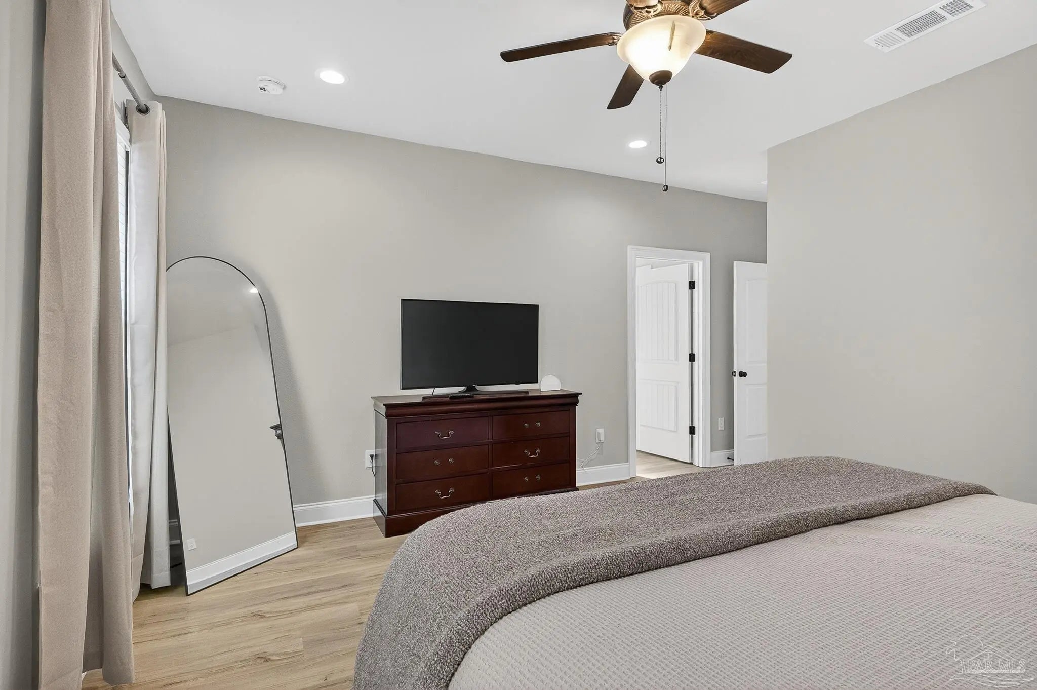WELCOME to your Dream Home!!! Built in 2022 and located in the gated Iron Rock community, this beautifully upgraded home pairs modern finishes with resort-style amenities, including a large community pool, covered clubhouse with bathhouse facilities, grilling and cooking areas, nature trails, two dog parks, an event lawn, community garden, half basketball court with pickleball, and a cozy firepit area. Inside, enjoy luxury vinyl plank flooring, quartz countertops, under-cabinet lighting, recessed lighting, a kitchen island with walk-in pantry, undermount sinks, bronze plumbing fixtures, and framed mirrors, plus thoughtful touches like blinds, LED coach lighting at the garage, a covered front porch, and a covered rear patio. The private primary suite features a double vanity, garden tub, separate custom-tiled shower, and a spacious walk-in closet, while energy-efficient upgrades include a tankless gas water heater, gas range, and vinyl low-E windows.