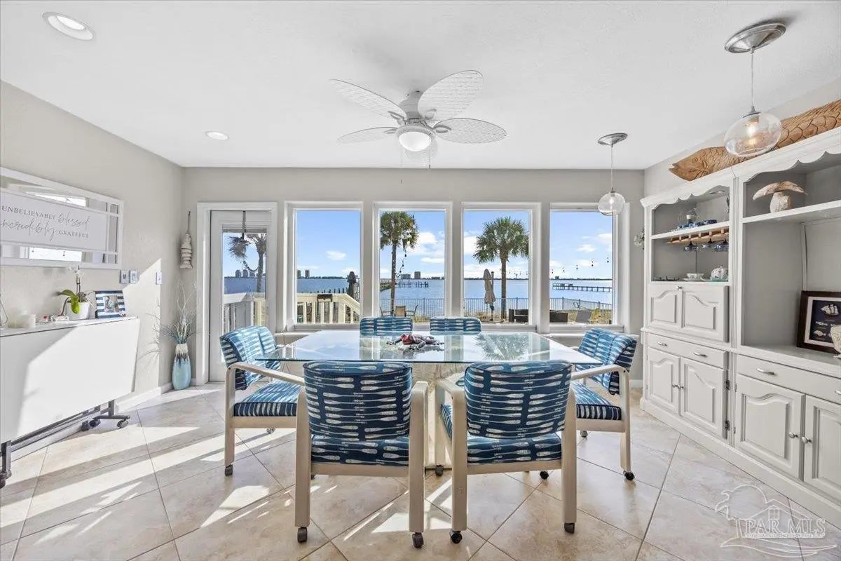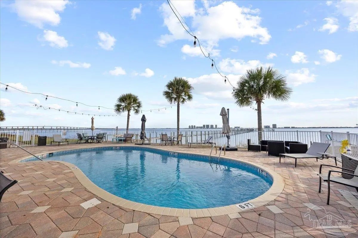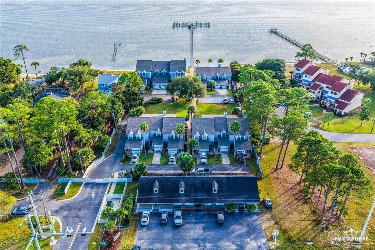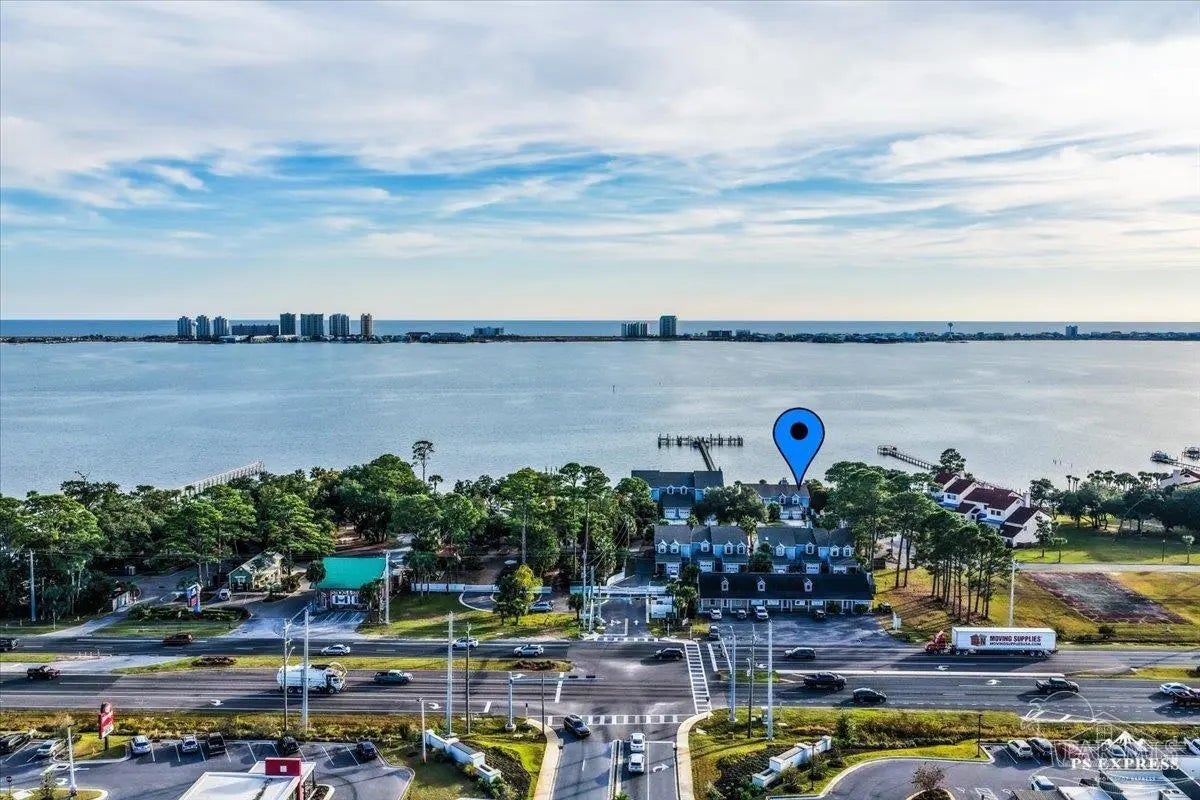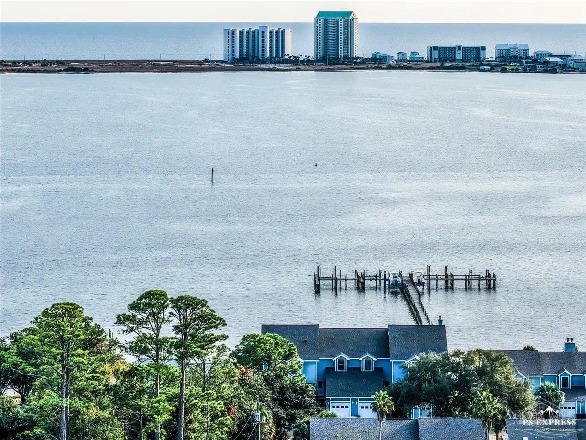 Experience coastal living at its finest in this beautifully maintained 2-bedroom, 3-bath waterfront townhome in the heart of Navarre. Situated directly on the sound, this residence offers breathtaking, unobstructed water views from the main living areas and primary spaces. Step inside to an inviting open layout featuring tile and hard-surface flooring throughout, ideal for low-maintenance living. The spacious kitchen boasts solid wood cabinetry, stainless steel appliances, glass-front uppers, and an oversized breakfast bar perfect for entertaining. Large windows along the back of the home fill the dining and living areas with natural light and showcase the sparkling blue water just steps away Upstairs, both bedrooms offer generous closet space and private bathrooms. A third full bathroom on the main level adds convenience for guests. Major systems are recently updated, including a newer roof (approx. 4 years) and HVAC (approx. 3 years) for peace of mind. Enjoy resort-style amenities including a waterfront pool and your own deeded boat slip, providing instant access to boating, paddleboarding, and sunset cruises right from your backyard. Multiple outdoor seating areas and a spacious balcony ensure you never miss the incredible sunrise and sunset views that make this property truly special.