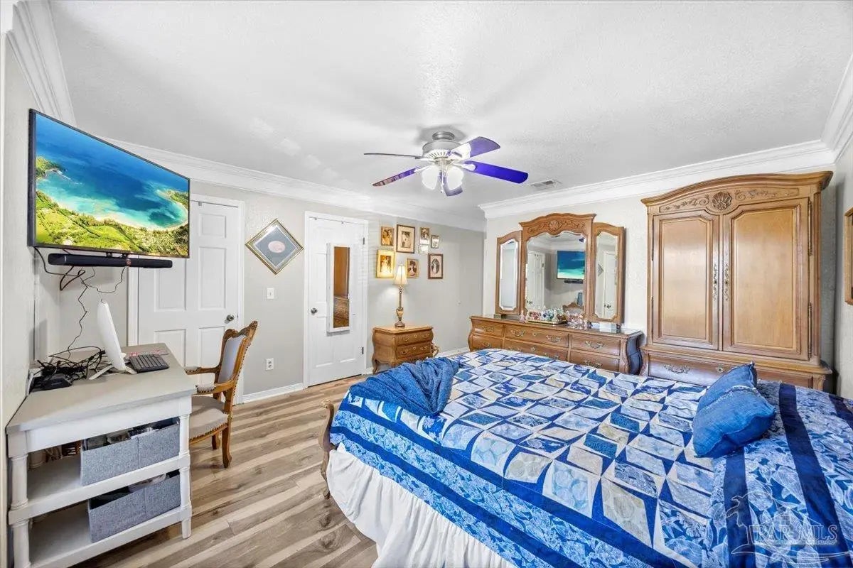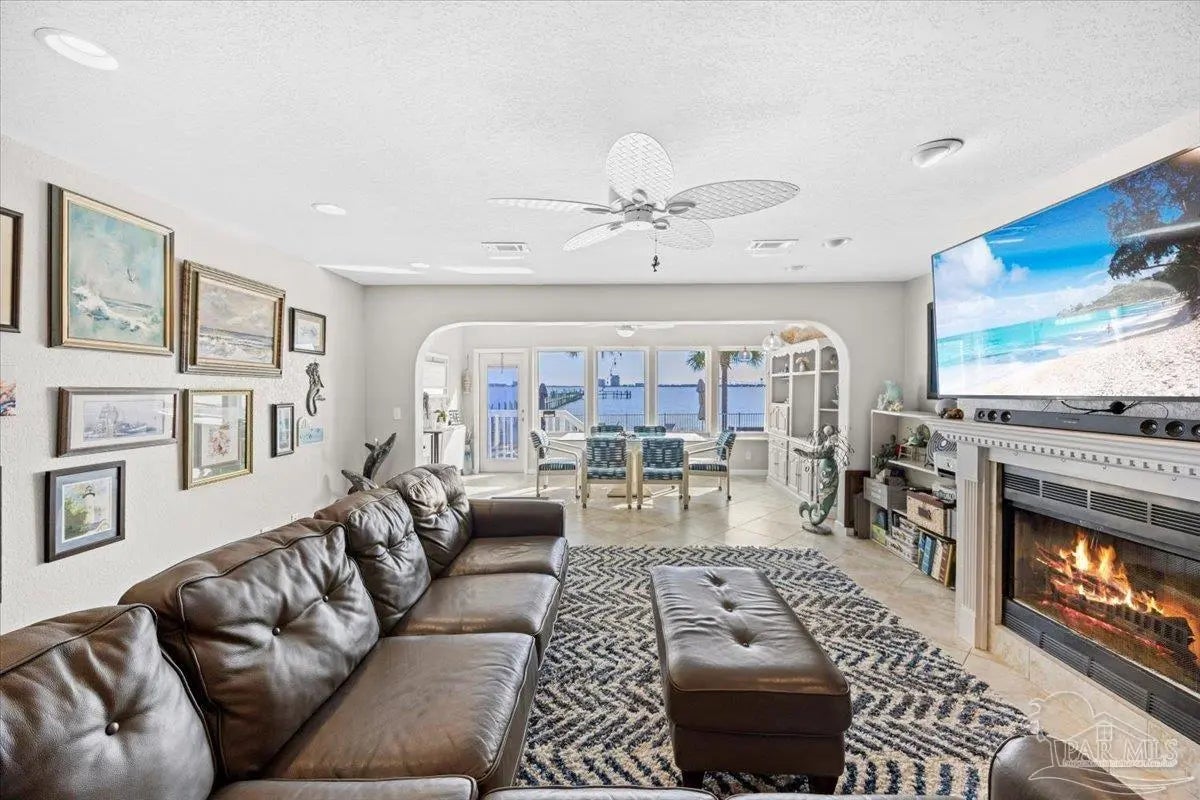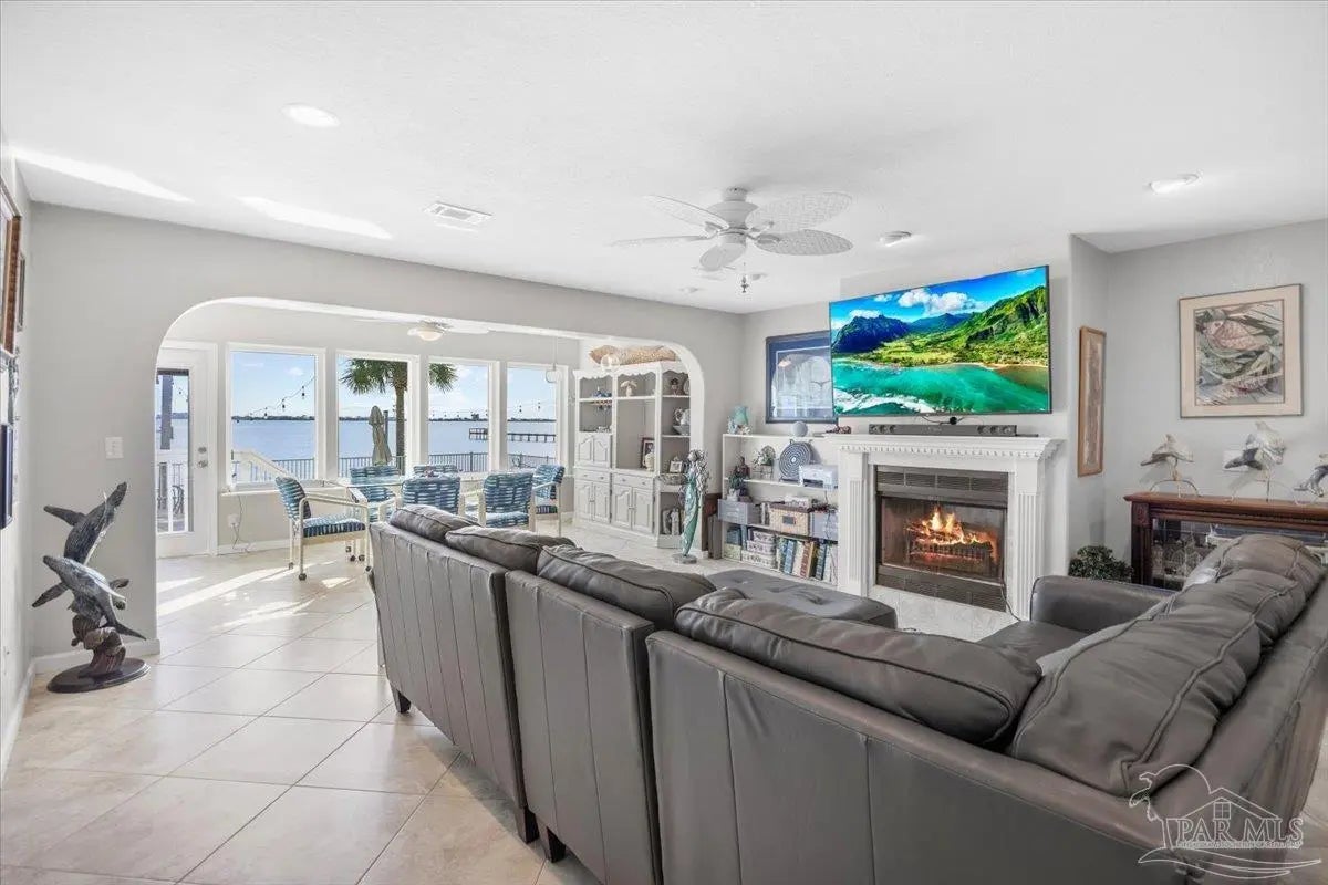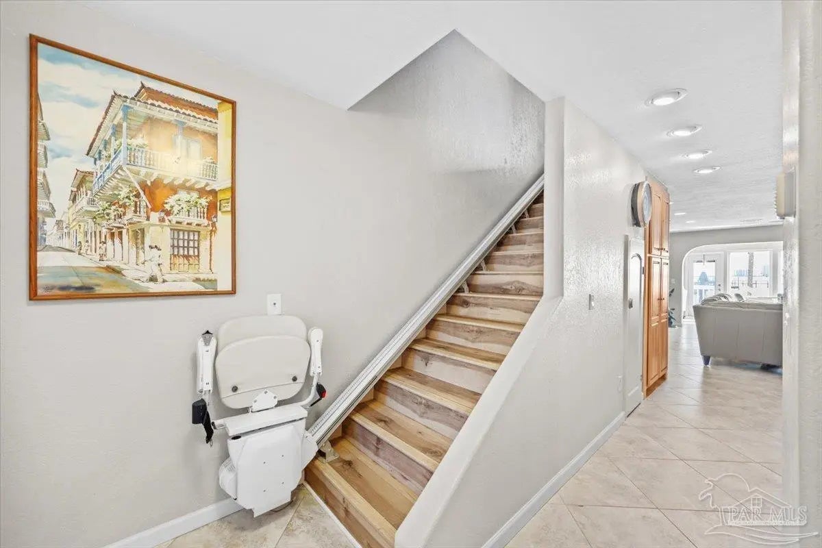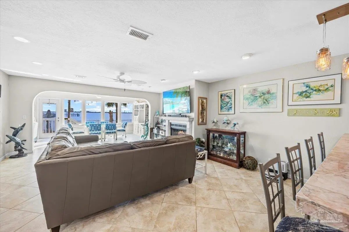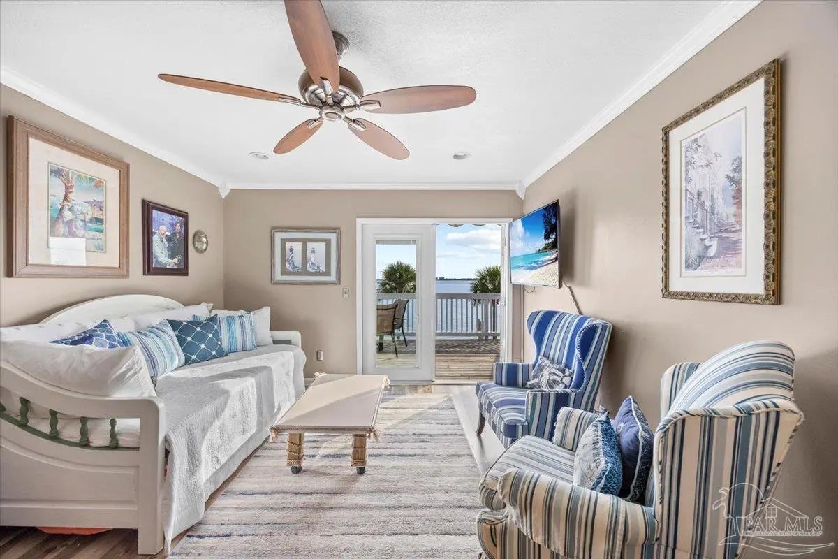 Experience coastal living at its finest in this beautifully maintained 2-bedroom, 3-bath waterfront townhome in the heart of Navarre. Situated directly on the sound, this residence offers breathtaking, unobstructed water views from the main living areas and primary spaces. Step inside to an inviting open layout featuring tile and hard-surface flooring throughout, ideal for low-maintenance living. The spacious kitchen boasts solid wood cabinetry, stainless steel appliances, glass-front uppers, and an oversized breakfast bar perfect for entertaining. Large windows along the back of the home fill the dining and living areas with natural light and showcase the sparkling blue water just steps away Upstairs, both bedrooms offer generous closet space and private bathrooms. A third full bathroom on the main level adds convenience for guests. Major systems are recently updated, including a newer roof (approx. 4 years) and HVAC (approx. 3 years) for peace of mind. Enjoy resort-style amenities including a waterfront pool and your own deeded boat slip, providing instant access to boating, paddleboarding, and sunset cruises right from your backyard. Multiple outdoor seating areas and a spacious balcony ensure you never miss the incredible sunrise and sunset views that make this property truly special.