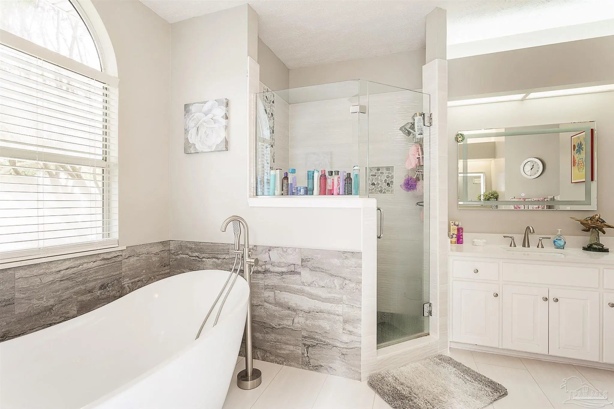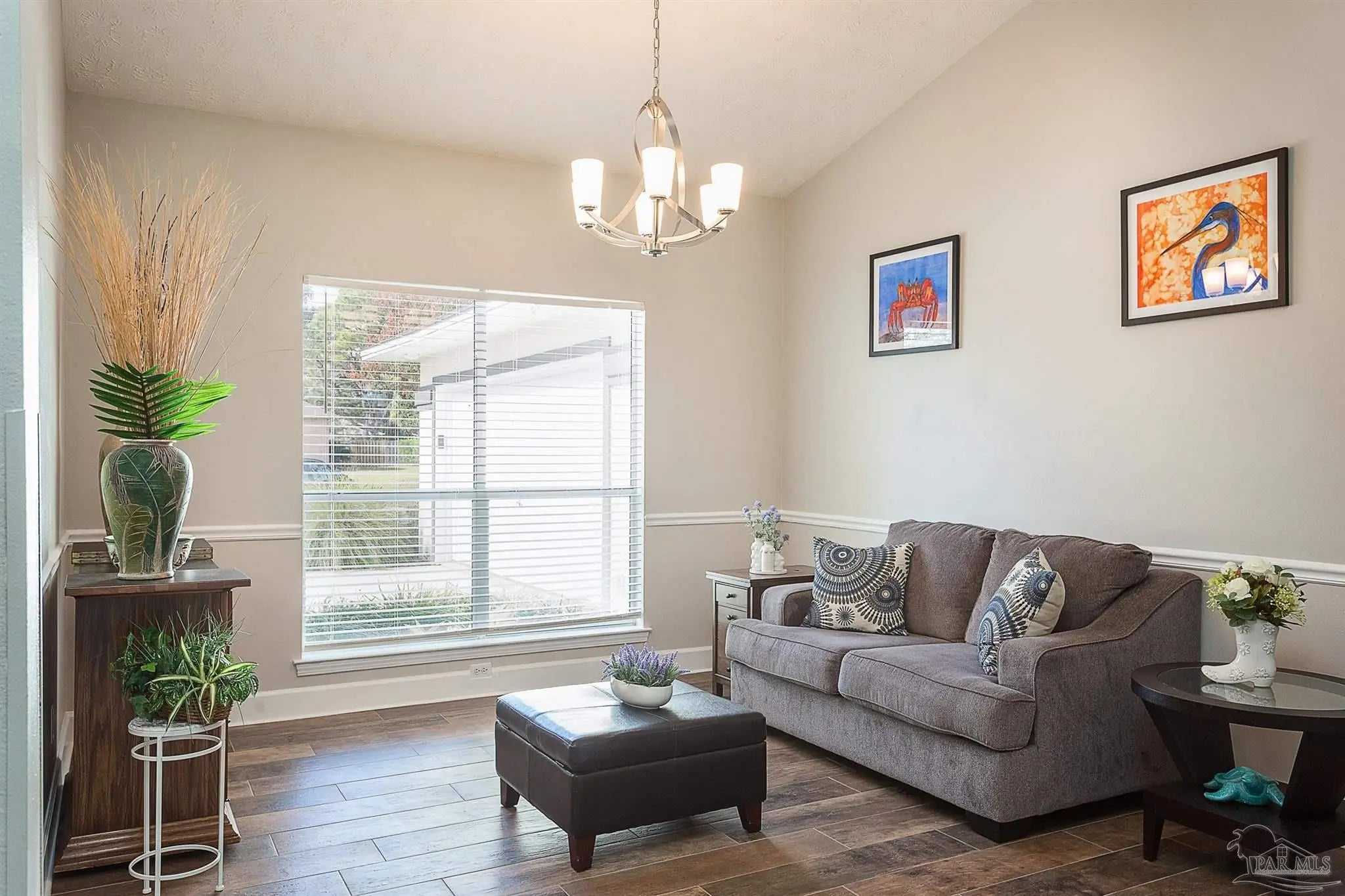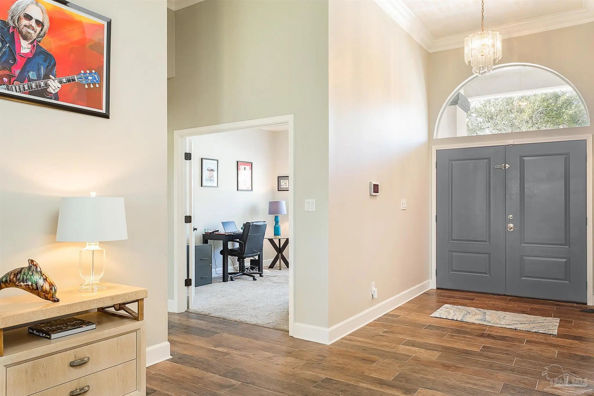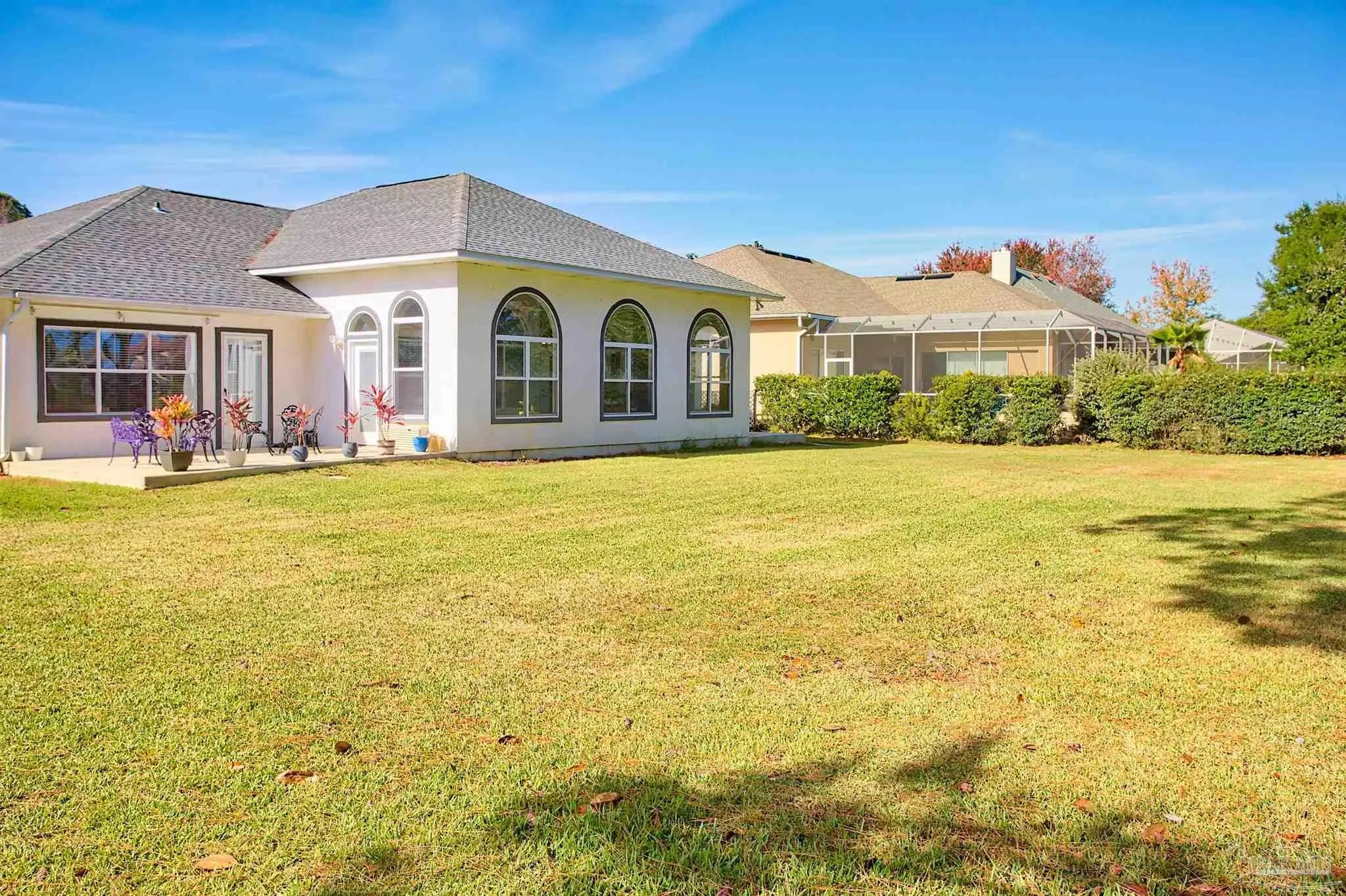 Beautifully renovated 4 bedroom, 3 full bath home on the 13th fairway of Tiger Point golf course in Champions Tee, a small HOA within the Tiger Point subdivision. This hard coated stucco home is conveniently located on the south side of highway 98- offering access via golf cart friendly roads to shopping, grade A public and private schools, restaurants, churches, primary care, grocery, box stores and more. Enjoy the ease of moving in to a home that has undergone traditional updates and important maintenance items: architectural shingled roof is 4 years old, HVAC 12, water heater 3. This sprawling home is beautifully designed, including a spacious Florida bonus room. Schedule a private tour and visualize your coastal lifestyle dreams today!
