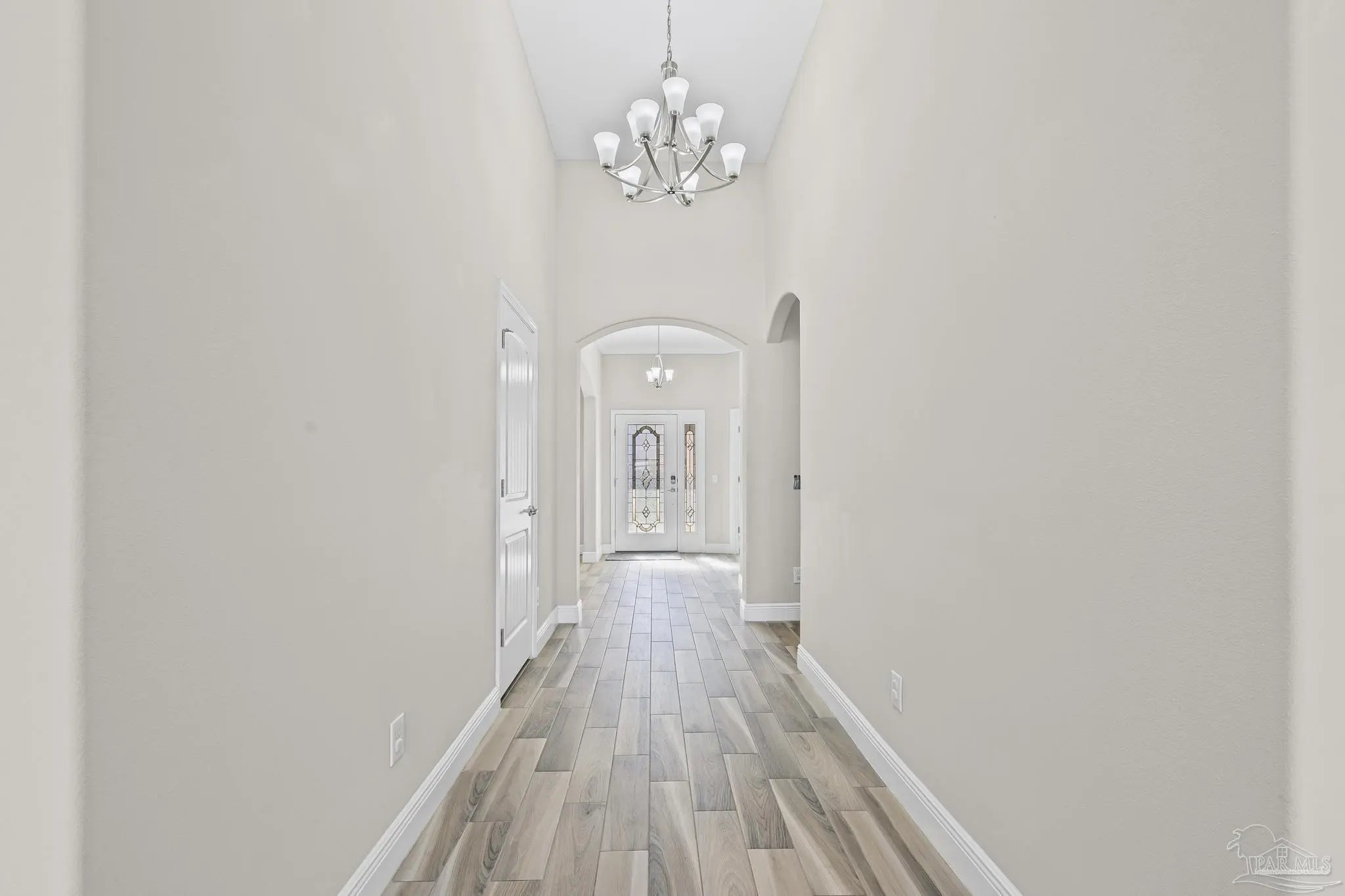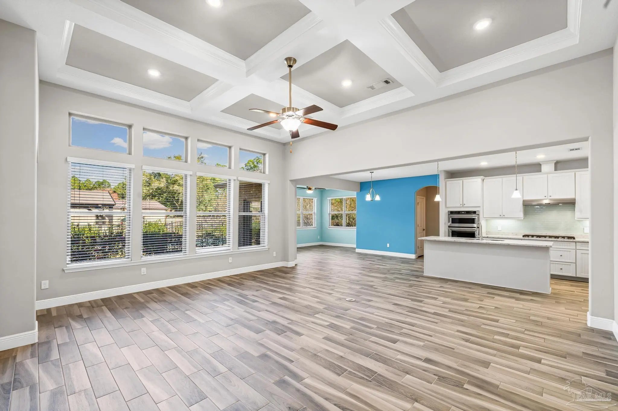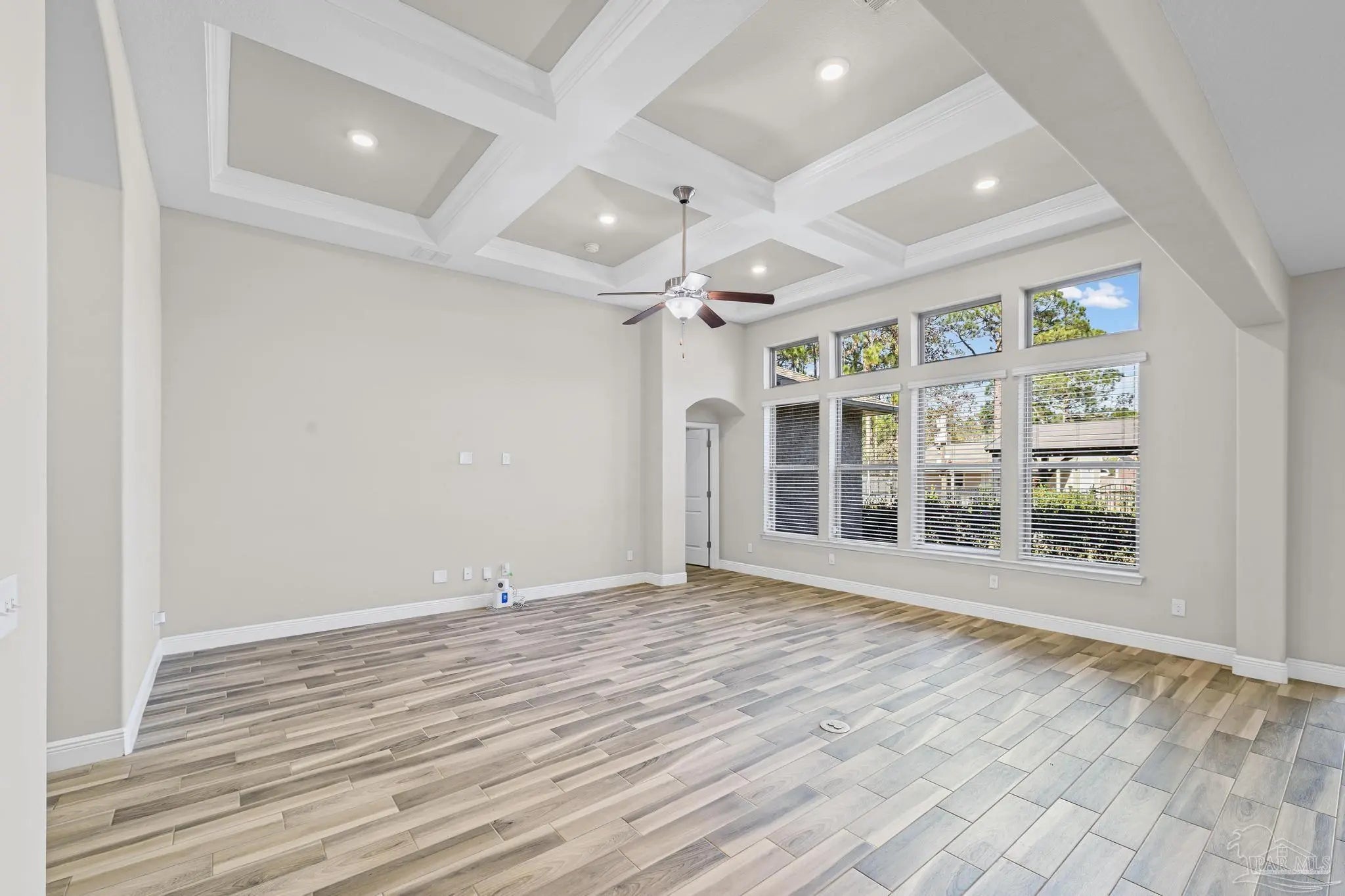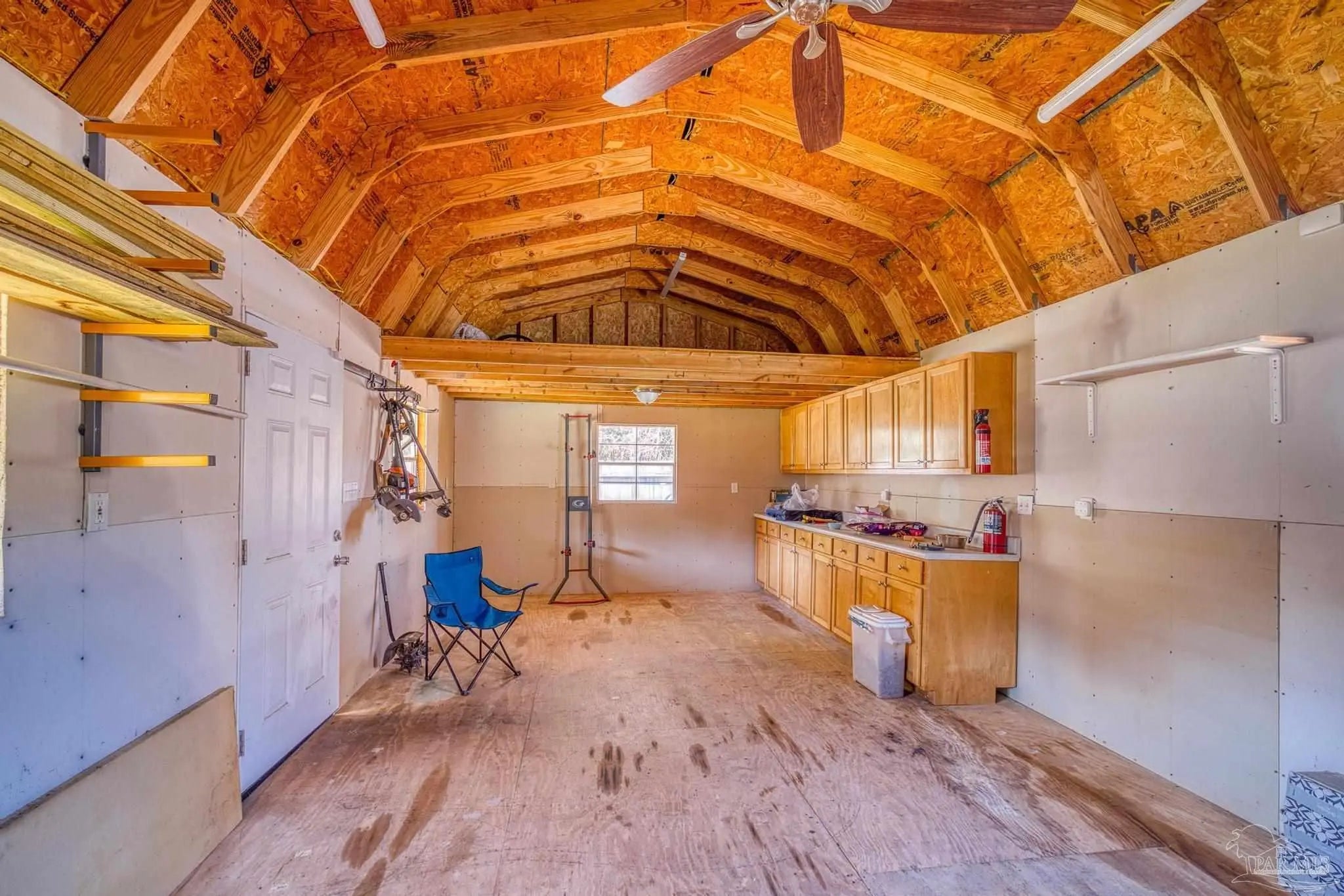Welcome to this stunning nearly 3,000 sq. ft. all-brick home offering 4 bedrooms, 3 bathrooms, and a dedicated office that could easily serve as a fifth bedroom. Step inside to beautifully tiled floors throughout the main living areas, with plush carpet in the bedrooms for added comfort. The modern open-concept floor plan features a chef’s kitchen equipped with quartz countertops, gas cooktop, wall oven, microwave/convection oven, stainless steel appliances, and a brand-new refrigerator. An oversized island and large walk-in pantry complete this impressive space. The great room boasts elegant coffered boxed ceilings and recessed lighting, with a formal dining room just steps away—perfect for entertaining. The luxurious master suite includes a trey ceiling, a cozy sitting area, and a spa-like bath with a garden tub, tiled shower, double quartz vanity, and an oversized closet. Enjoy peace of mind with a whole-house gas generator. Outside, the two-car oversized attached garage is complemented by a detached two-car garage/workshop with electricity and its own concrete drive. Additional features include a powered shed with nearby water access and an RV pad with hookups. Your private backyard oasis awaits with an in-ground gunite pool featuring a tanning ledge, child safety fence, paver patio, gazebo, and fire pit. Situated on a corner lot over half an acre, this home offers exceptional privacy while being conveniently close to Navarre Beach. Located in the sought-after Holley by the Sea community, you'll enjoy access to resort-style amenities including multiple pools, a recreation center, tennis courts, a picnic area, and more.